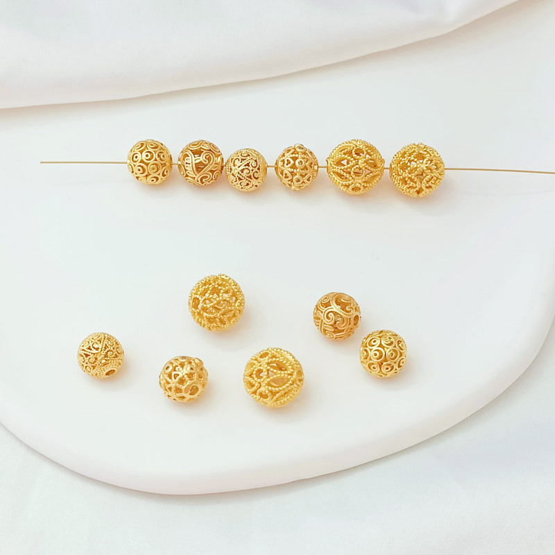18-каратное золото, сохраняющее цвет, древнее золото, инкрустированное цирконием, вырезанный узор в виде облака гортензии, круглые бусины, браслет ручной работы, ожерелье, свободные аксессуары из бисера