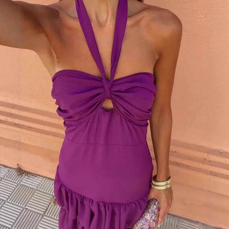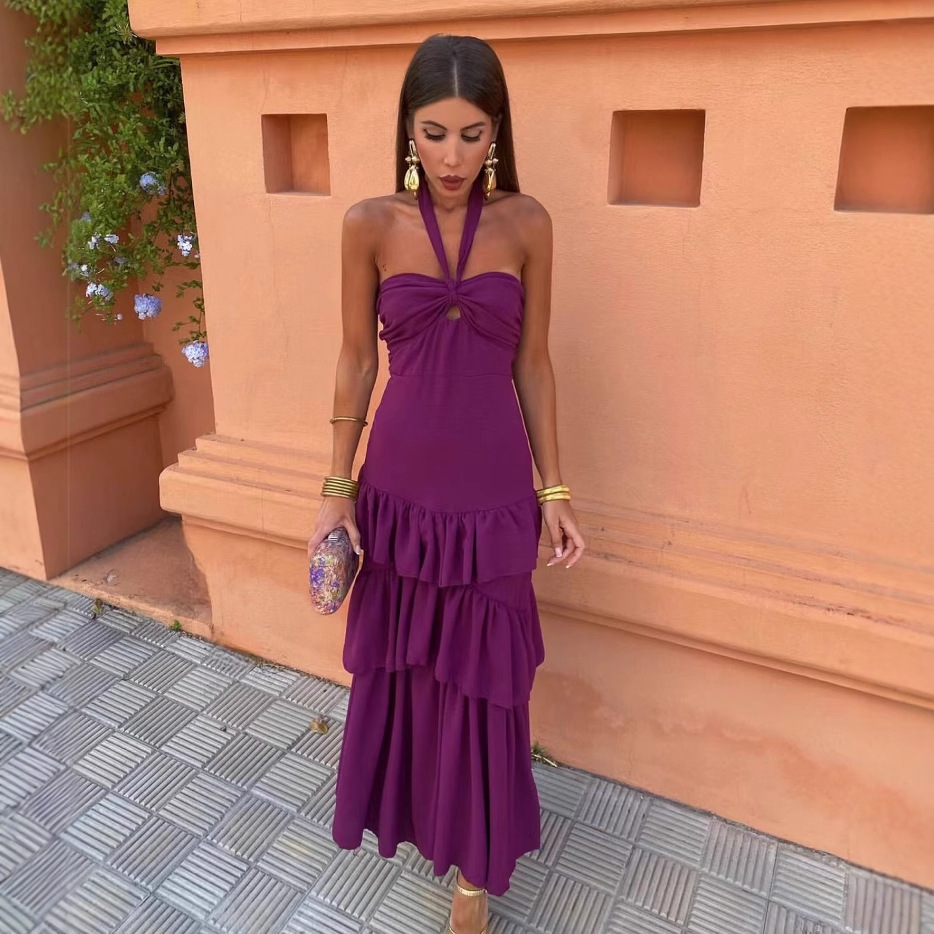 Трансграничная европейская и американская одежда AliExpress, популярное платье с открытой спиной и воротником-стойкой