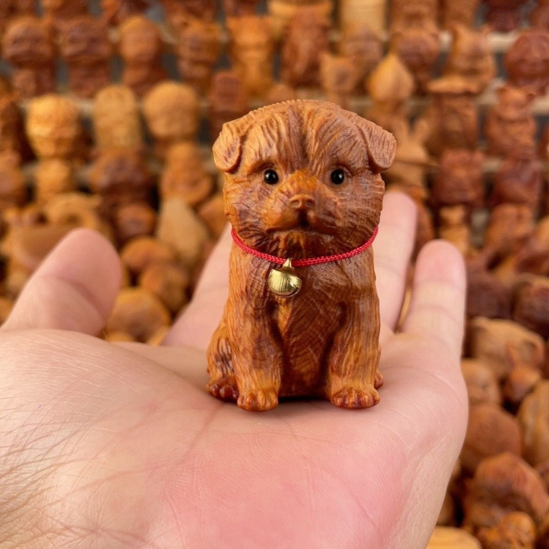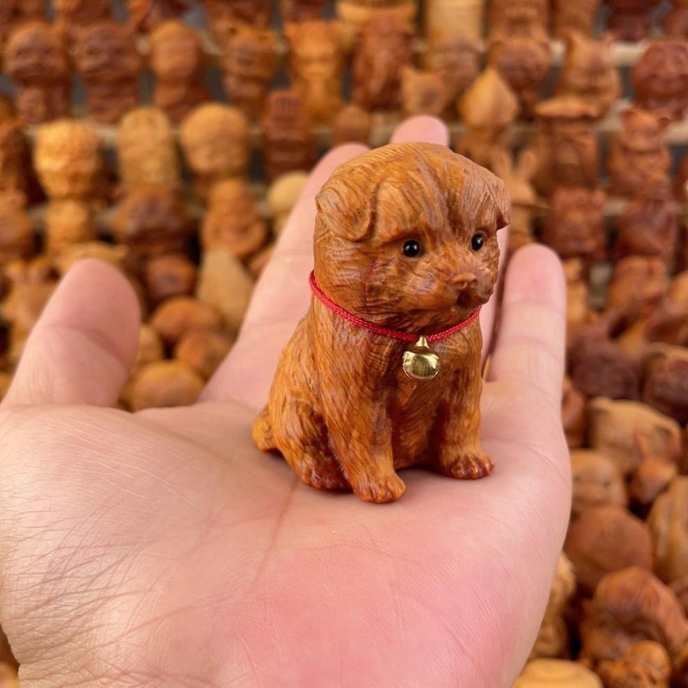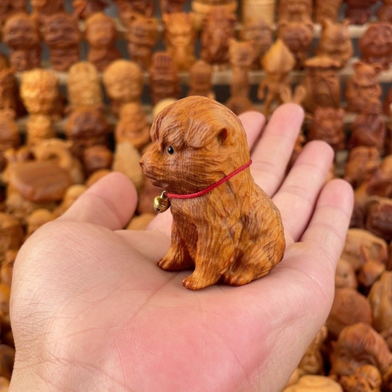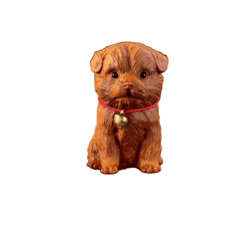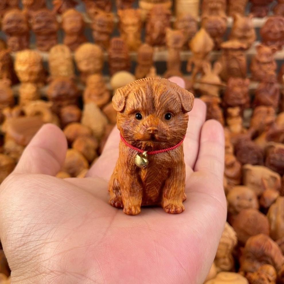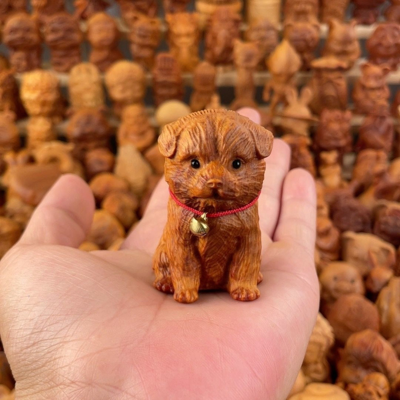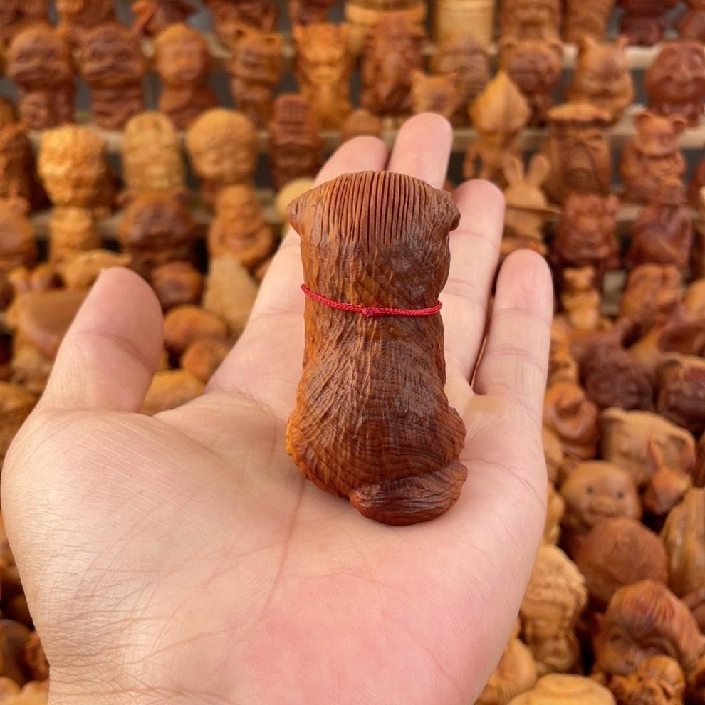 Резьба по дереву кипариса, неокрашенная, незавощенная, ручная резьба для маленькой собаки, украшение, привлекающее богатство, пасторальная собака, декоративная деталь из цельного дерева, резьба по дереву кипариса, маленькая собака.