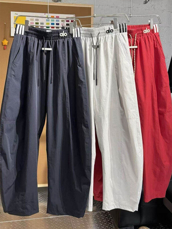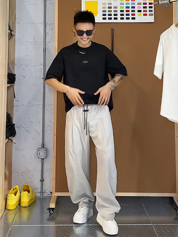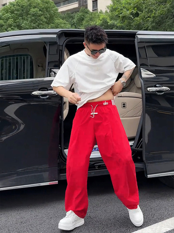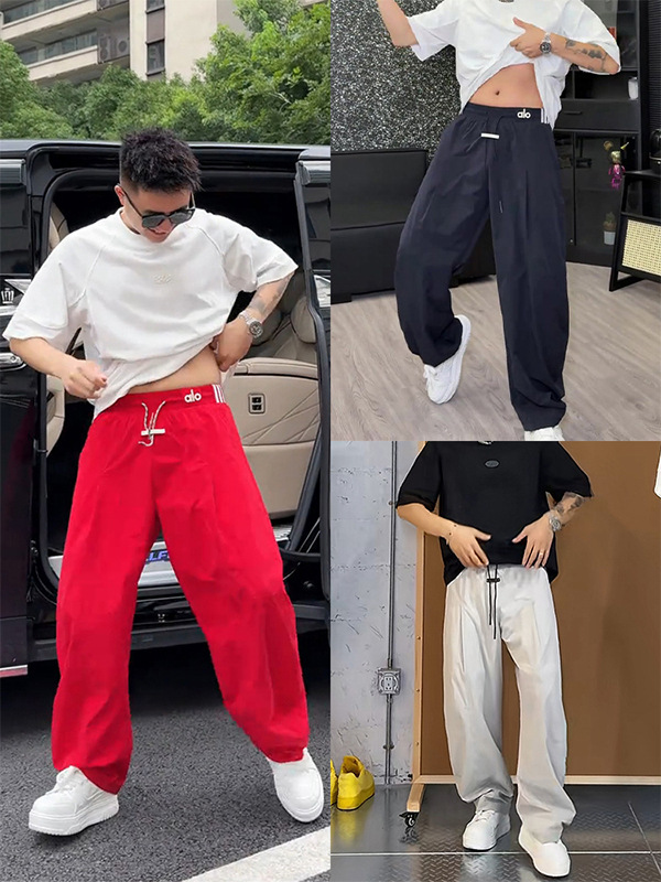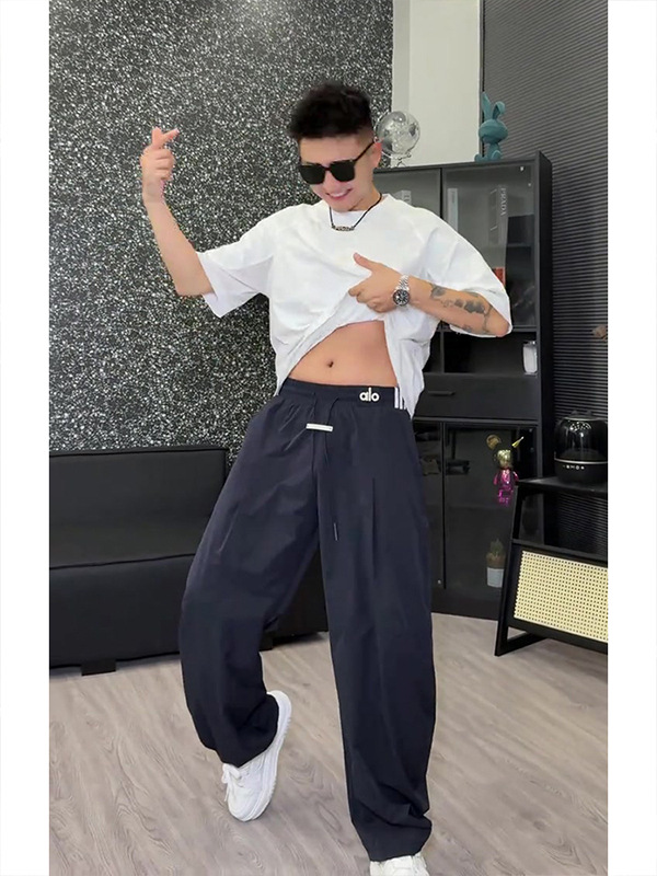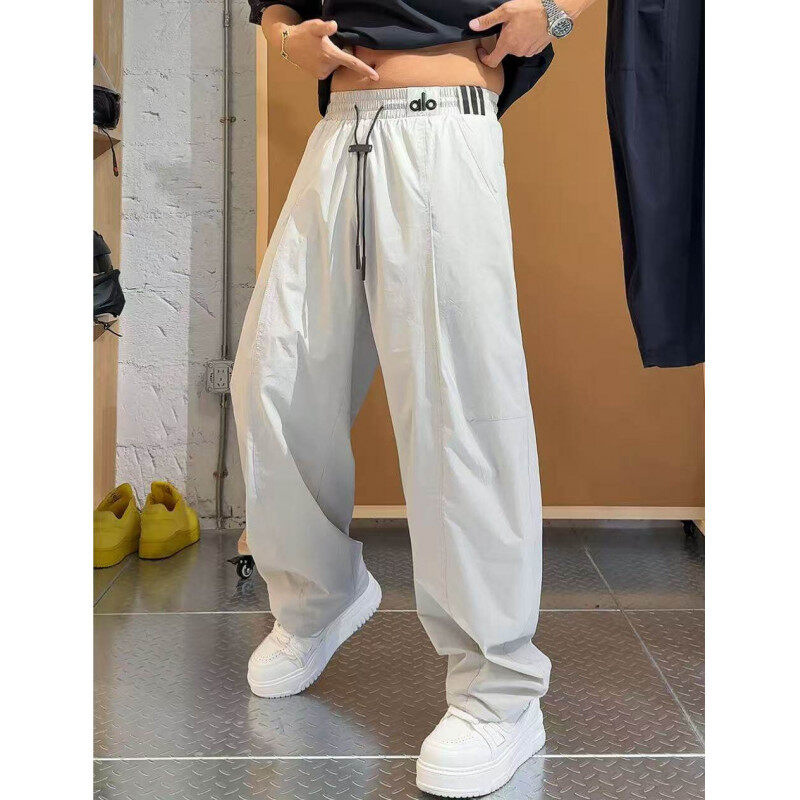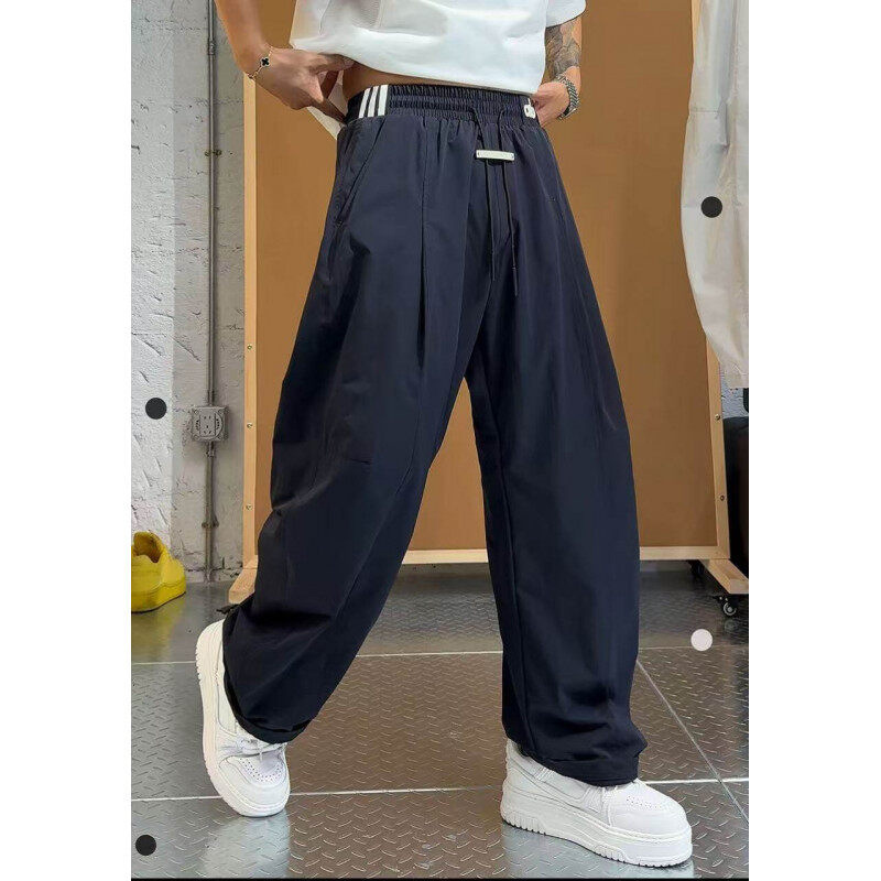 Мужские повседневные брюки-сабо для улицы в американском стиле, летние тонкие спортивные длинные брюки с эластичной резинкой на талии, свободные широкие брюки.