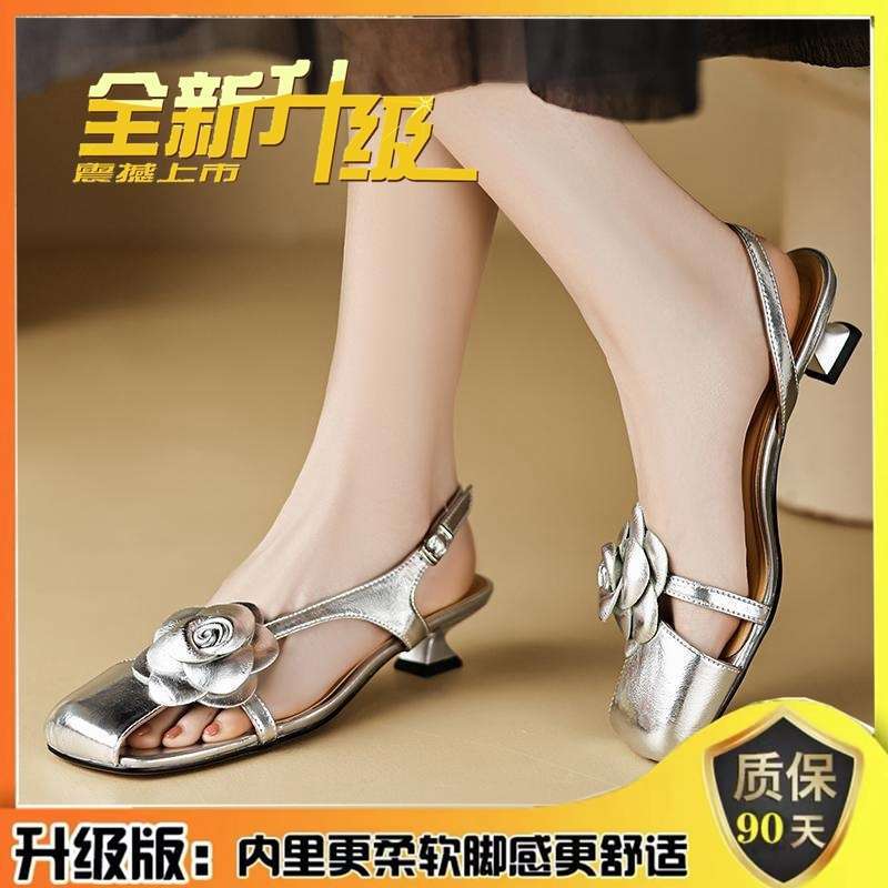 Женские сандалии во французском стиле ретро, летний сказочный стиль, цветок камелии, кошачий каблук, серебряный однорядный ремешок, туфли Мэри Джейн на низком каблуке