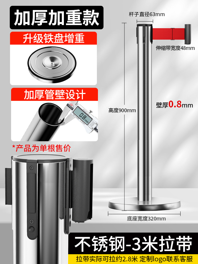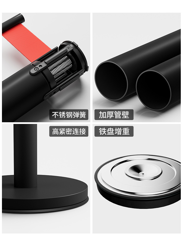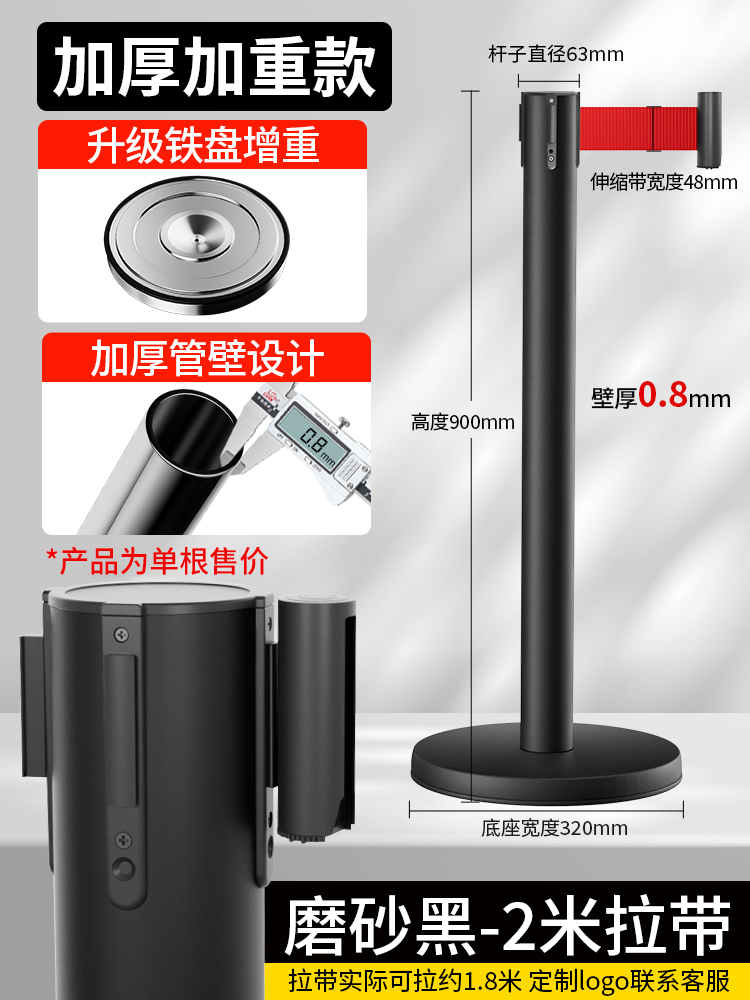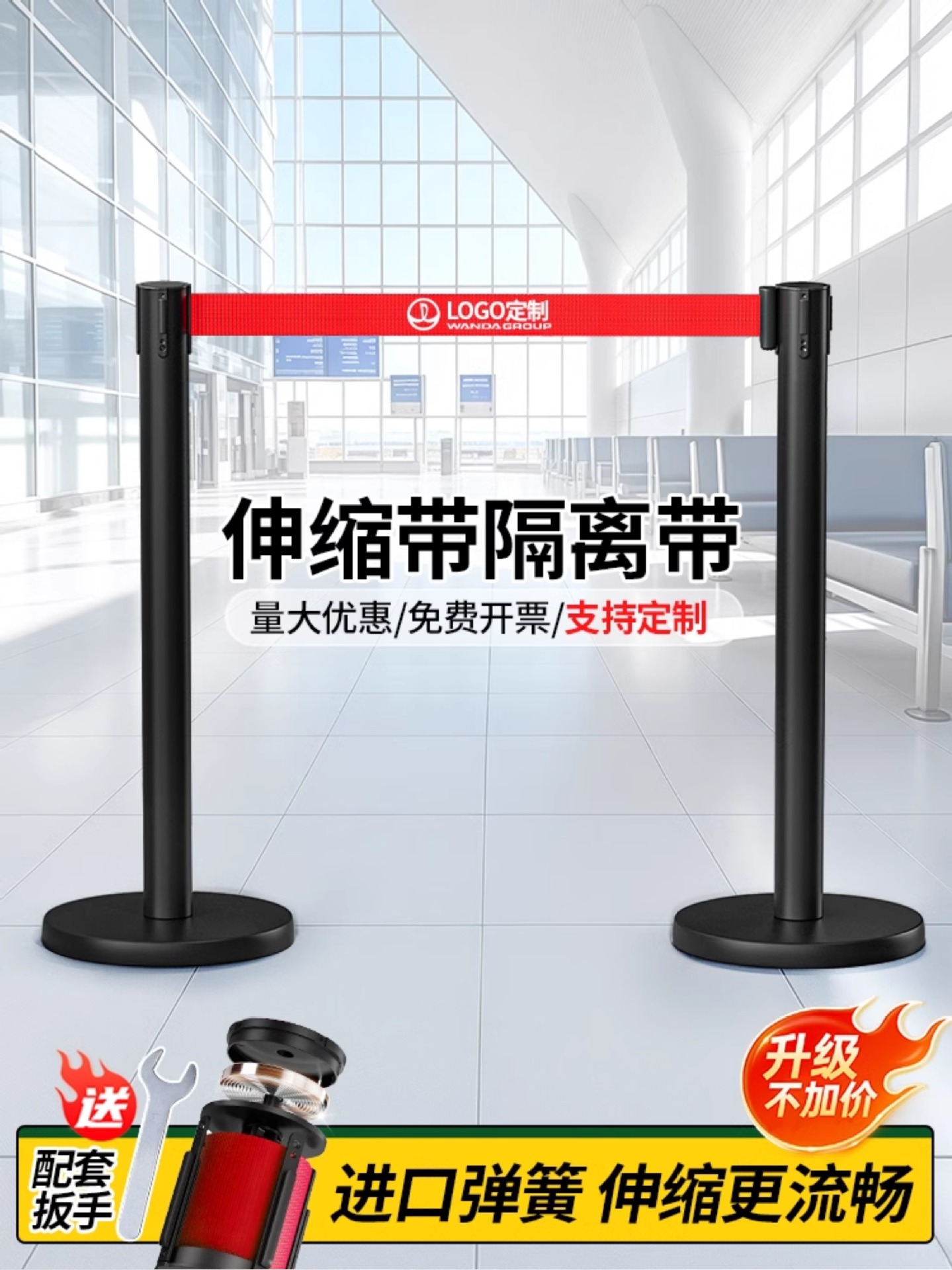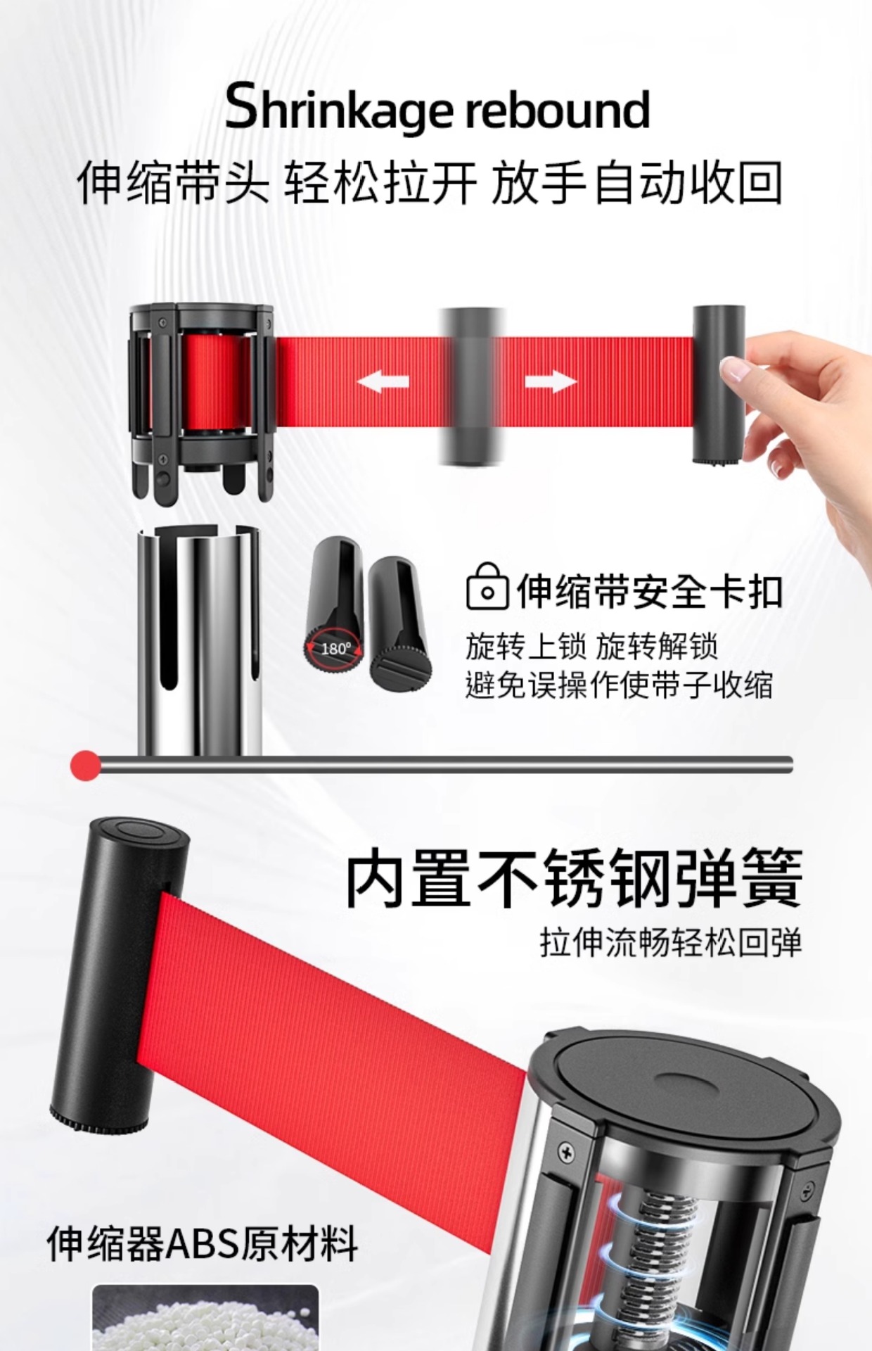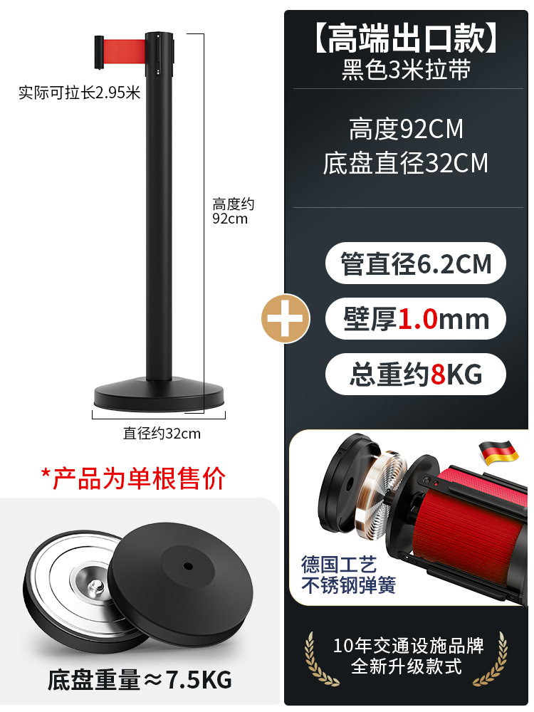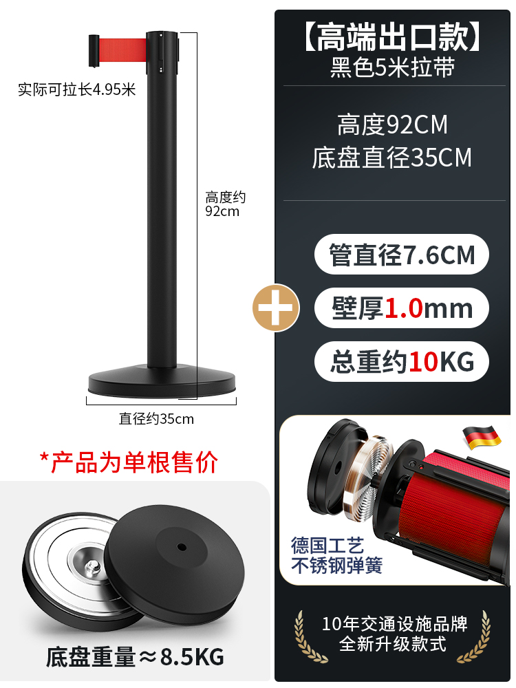 Черный выдвижной барьер с 1.0m линиями, ограждение очереди, 1.0m барьер, борт из нержавеющей стали.