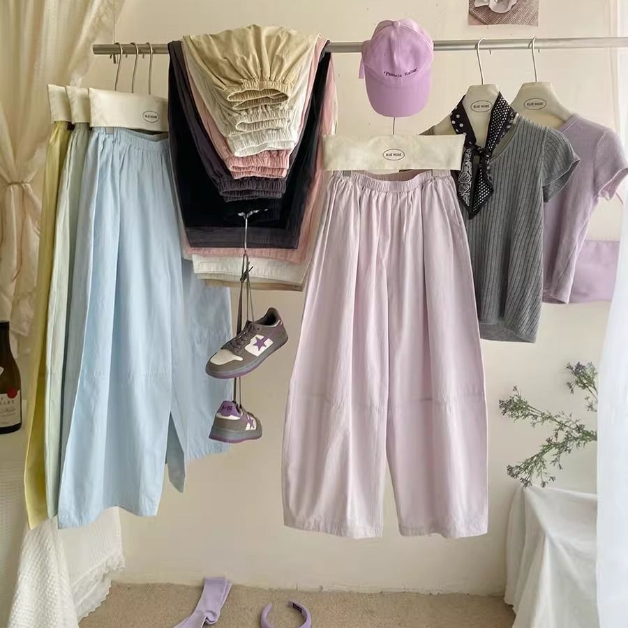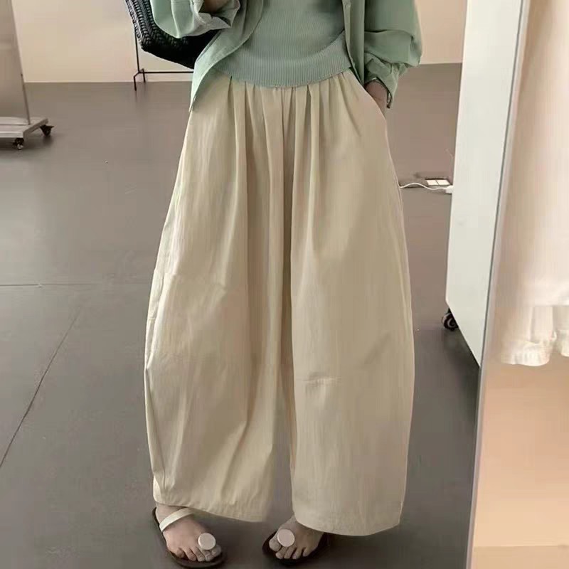 Непринужденные и ленивые широкие брюки из ледяного кислородного хлопка с фонариком и воздушным шаром для женщин, летние свободные утягивающие повседневные брюки с цветочным бутоном девяти точек