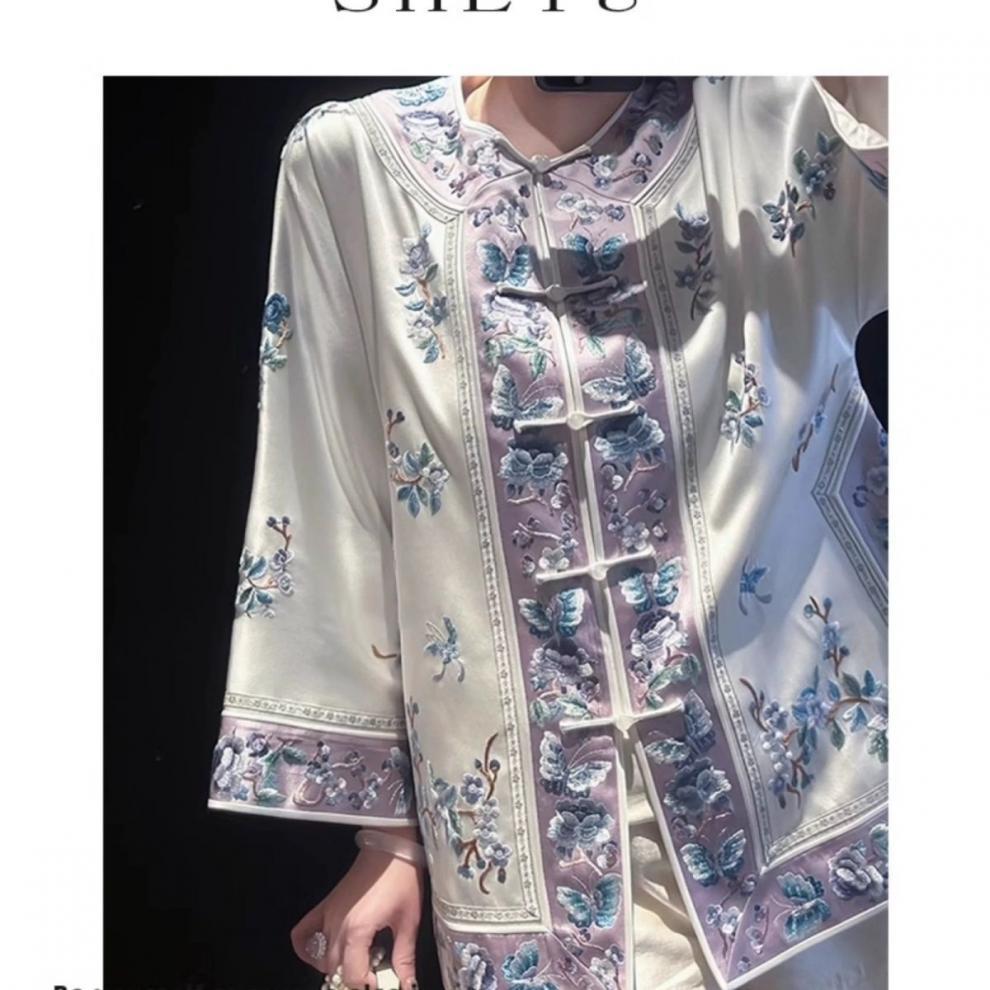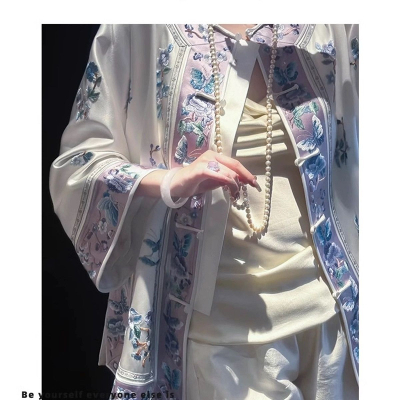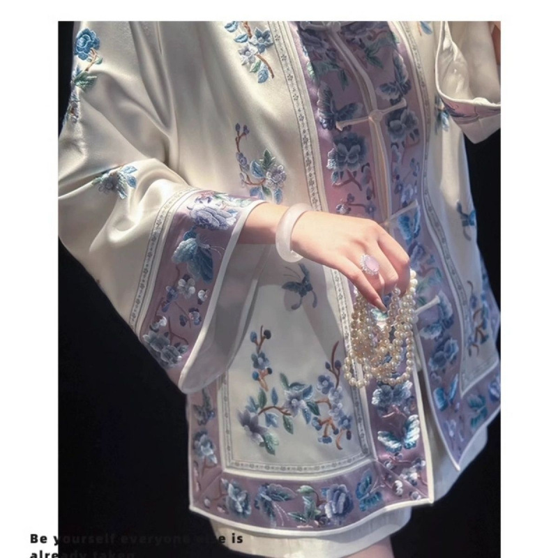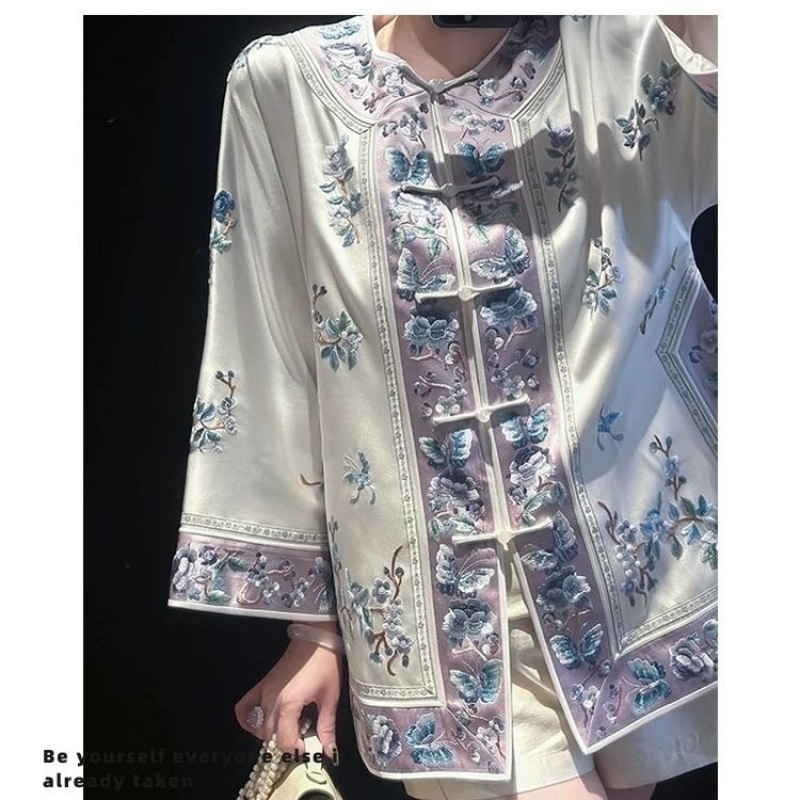 Топ в китайском стиле с имитацией вышивки в национальном стиле, новая осенняя свободная куртка на пуговицах в стиле ретро.