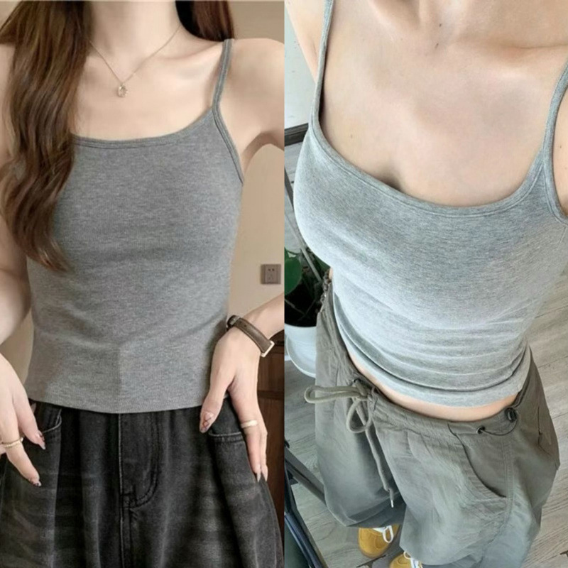 Американская горячая девушка, серая женская весенне-летняя верхняя одежда с подушечками для груди, красивой задней частью и коротким топом без рукавов.