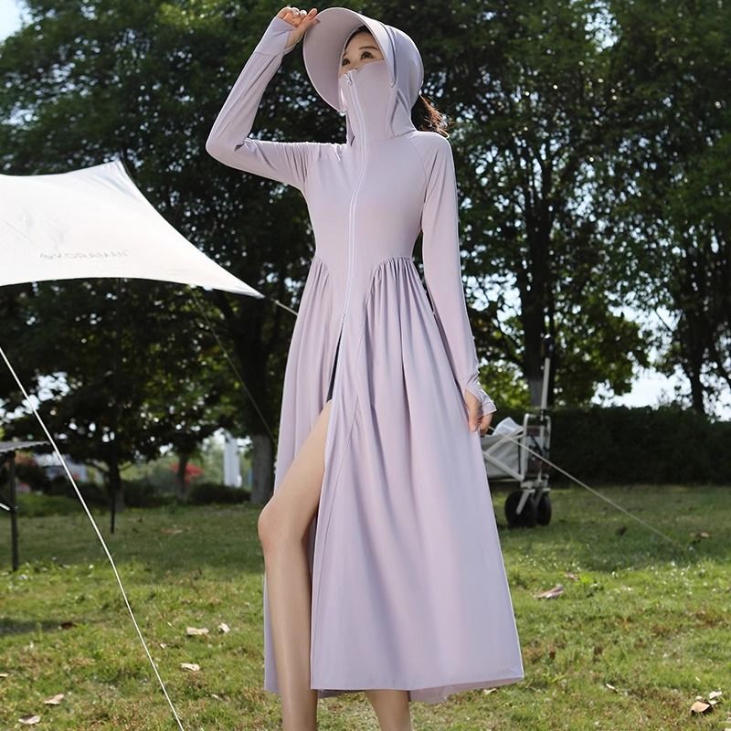 AIMISS большой размер, длинная одежда из ледяного шелка для защиты от солнца для женщин, лето 2025, тонкая куртка с UPF50 + защитой от УФ-лучей