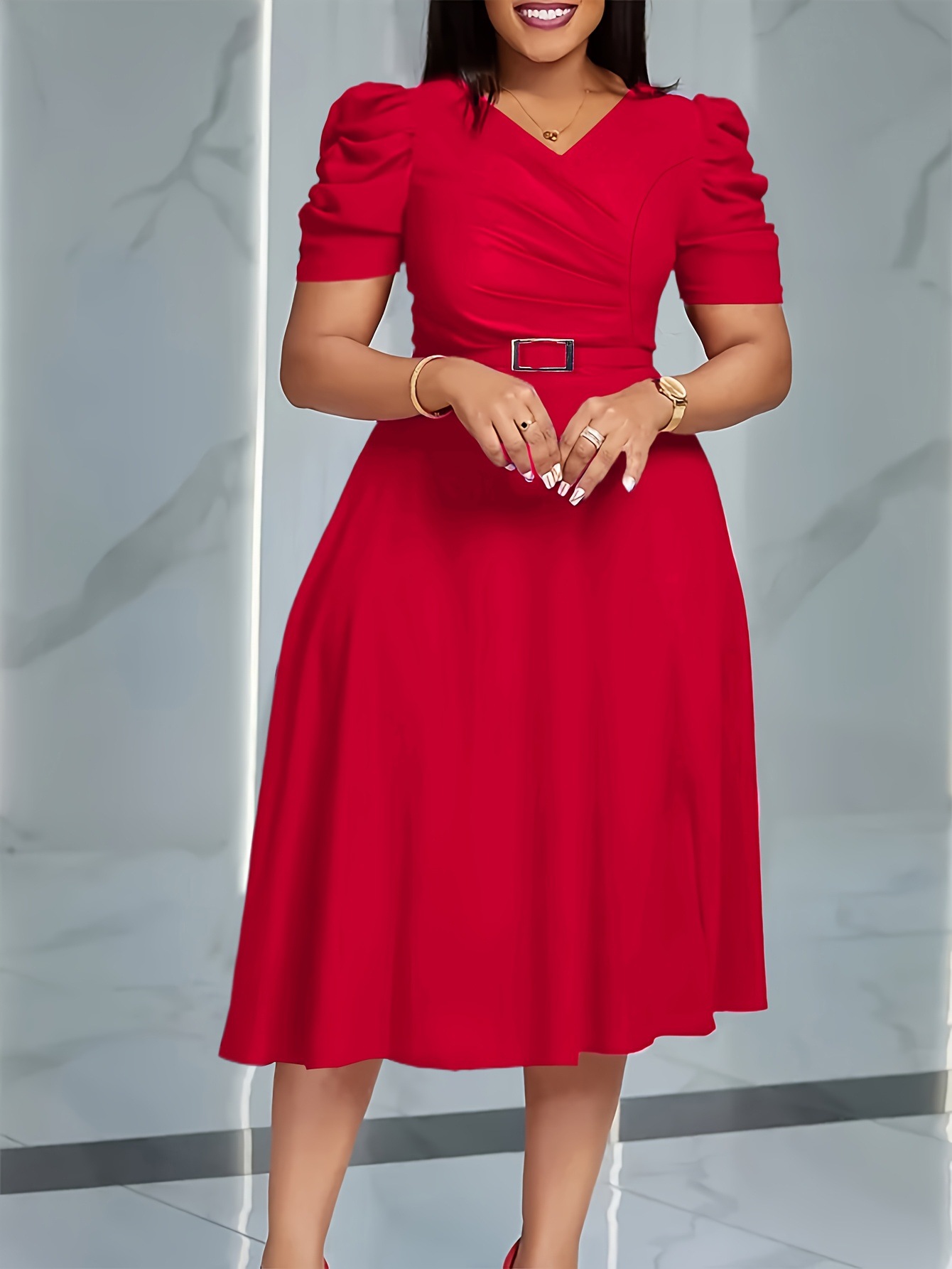 Женское стильное красное облегающее короткое платье с v-образным вырезом и рюшами