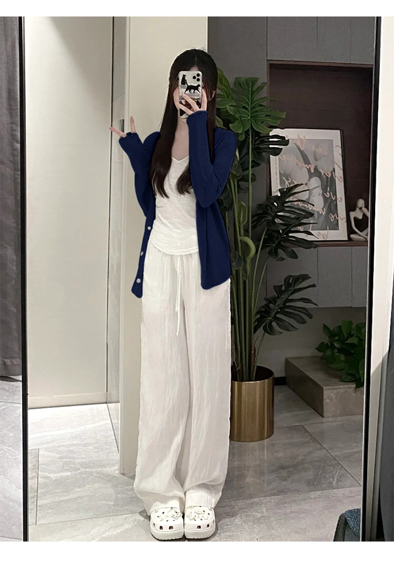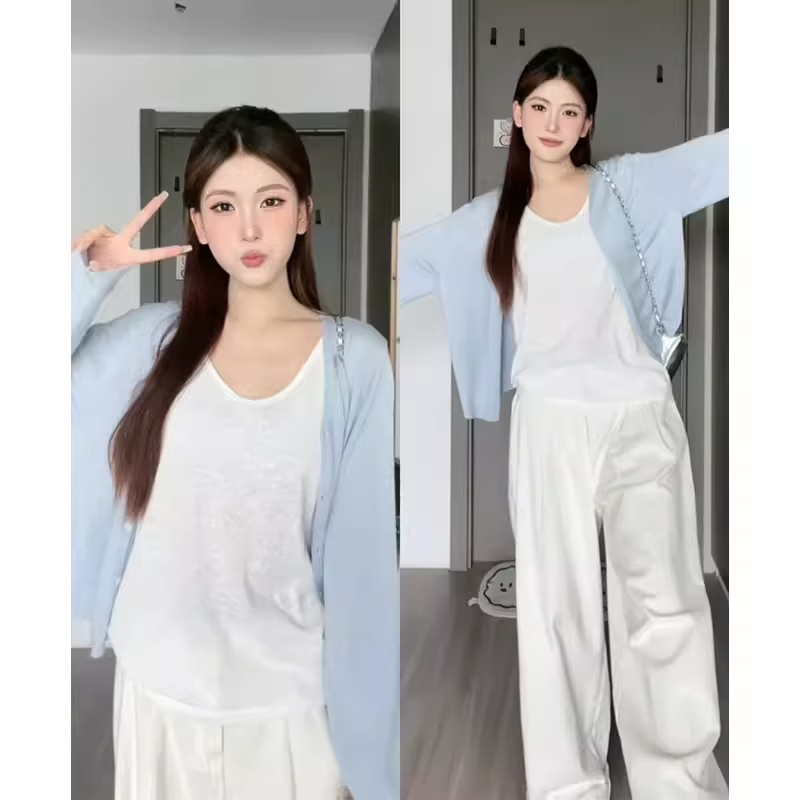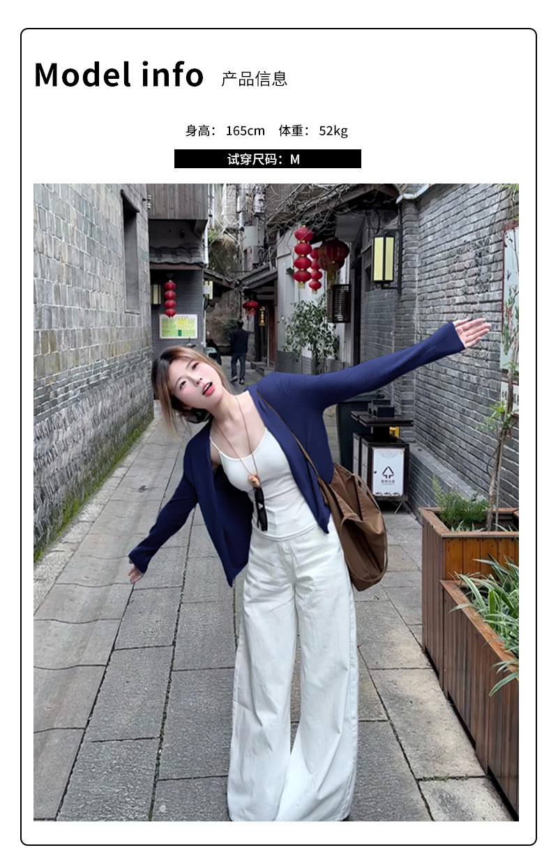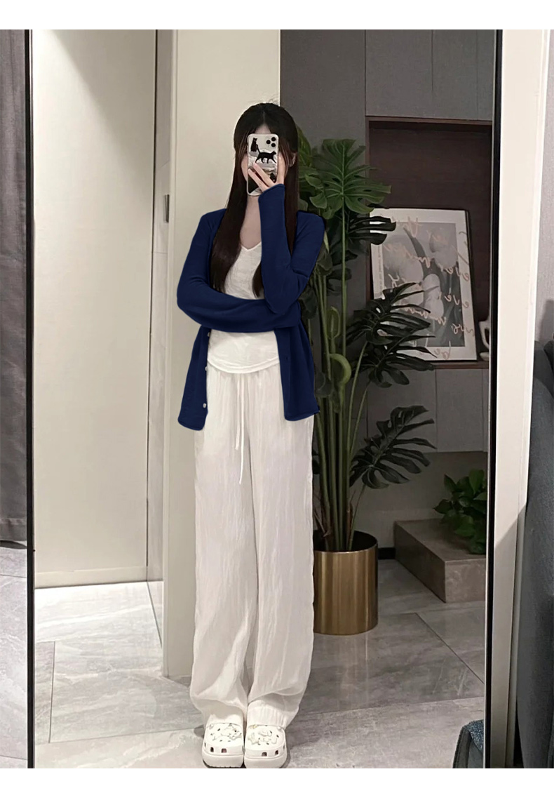 Темно-синий солнцезащитный кардиган с юбкой на подтяжках и летней блузкой, тюлевым топом, летней легкой курткой, тонким фасоном.