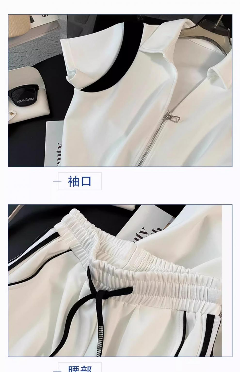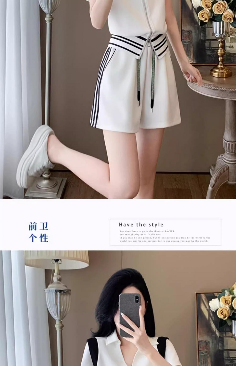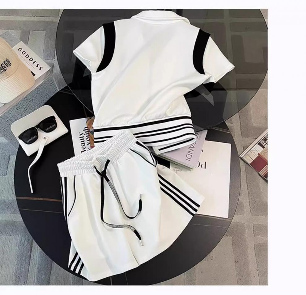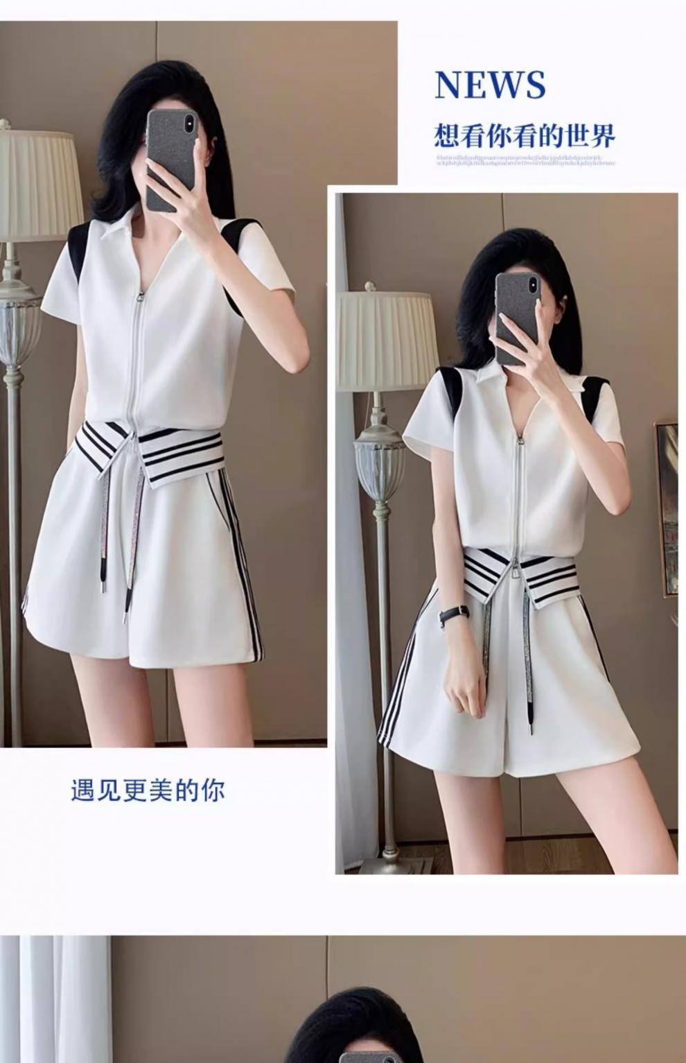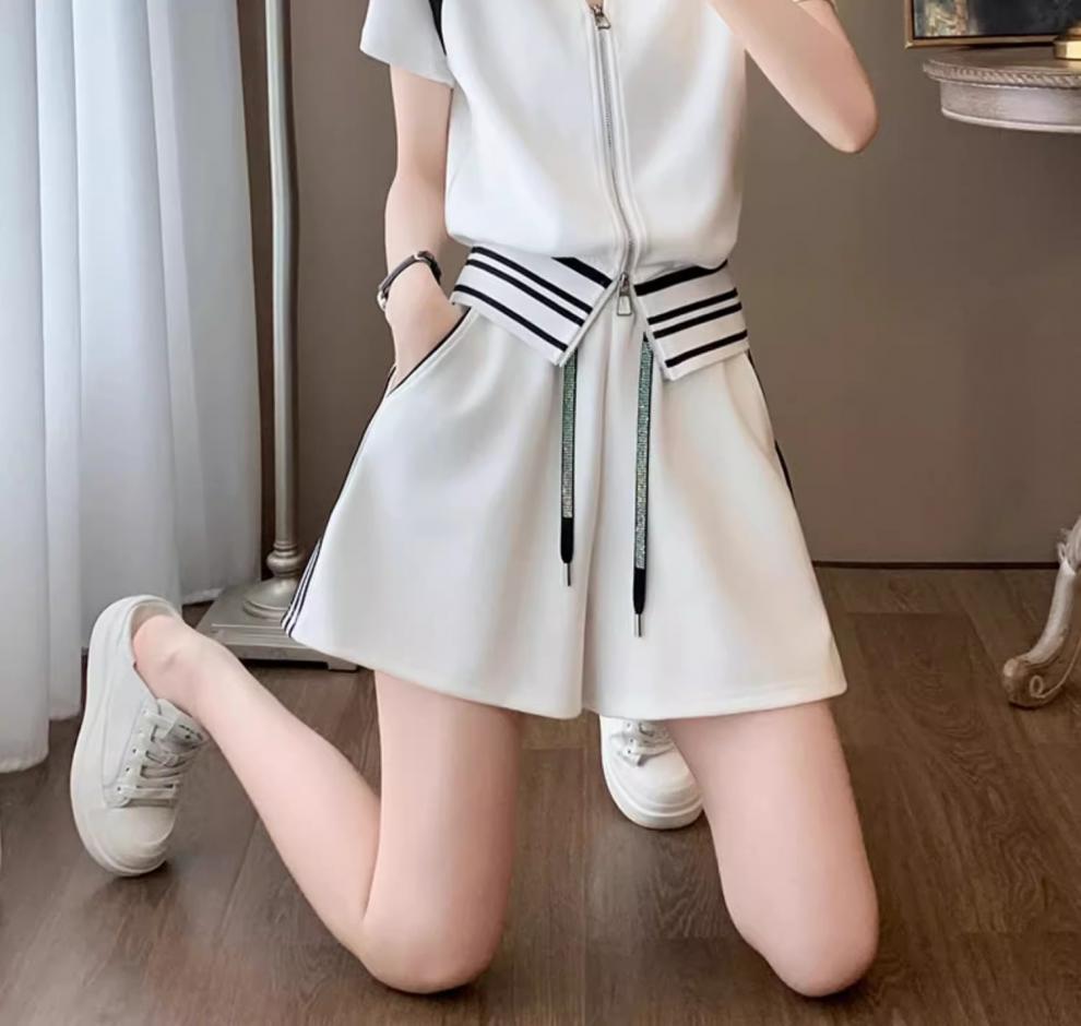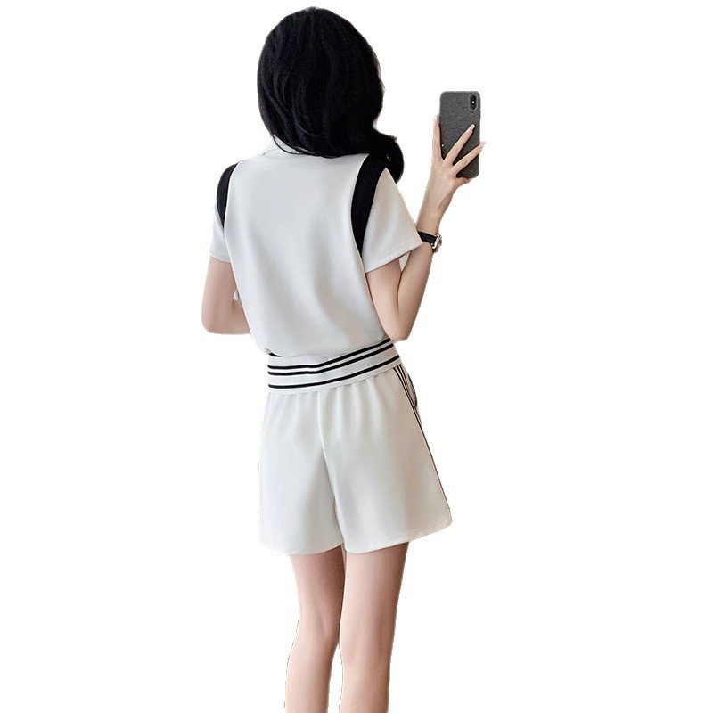 Летний спортивный костюм 2025 года, европейский стиль, женский, кэжуал, белый, короткий рукав, топ и шорты, комплект из двух предметов