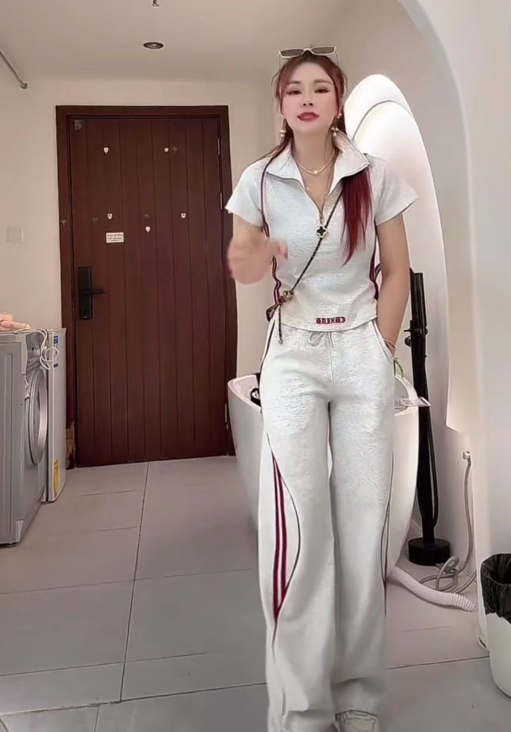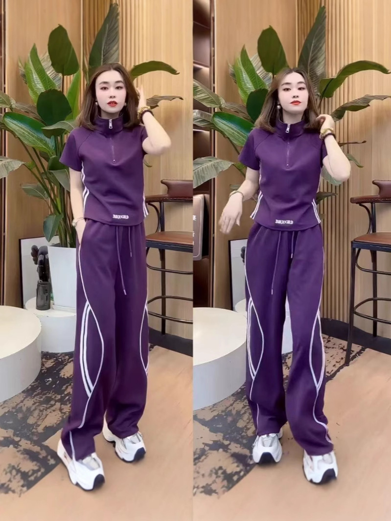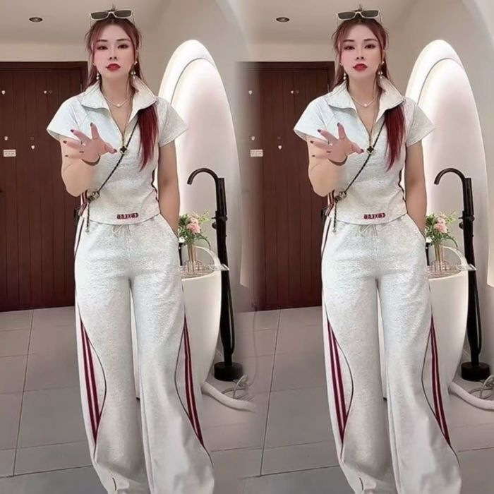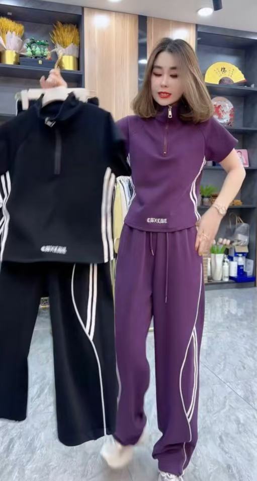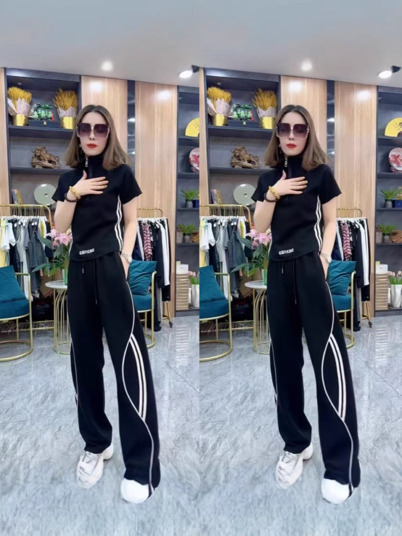 Летний спортивный костюм Salt series 2025, модная повседневная модель: топ с коротким рукавом и полузастежкой, широкие брюки, комплект из двух предметов.