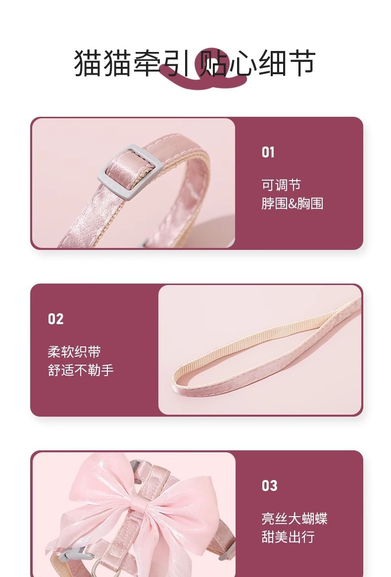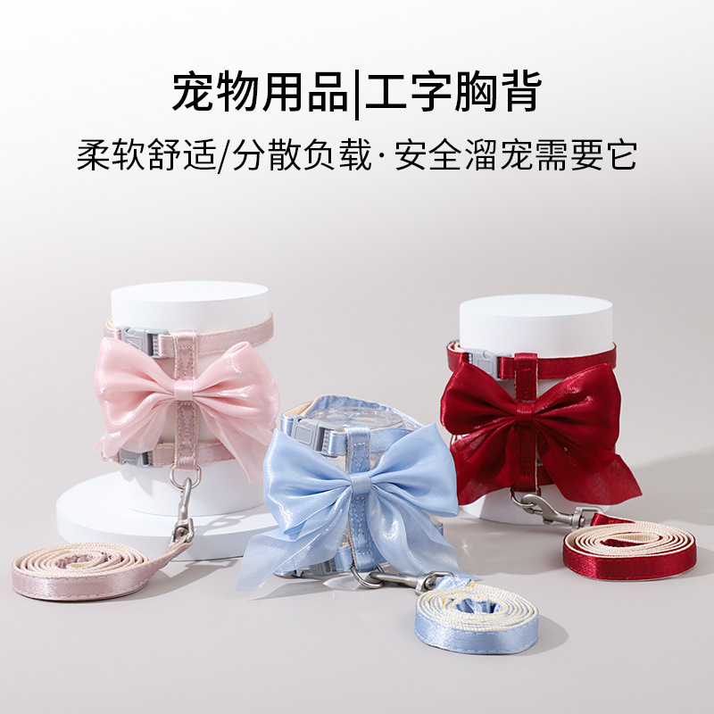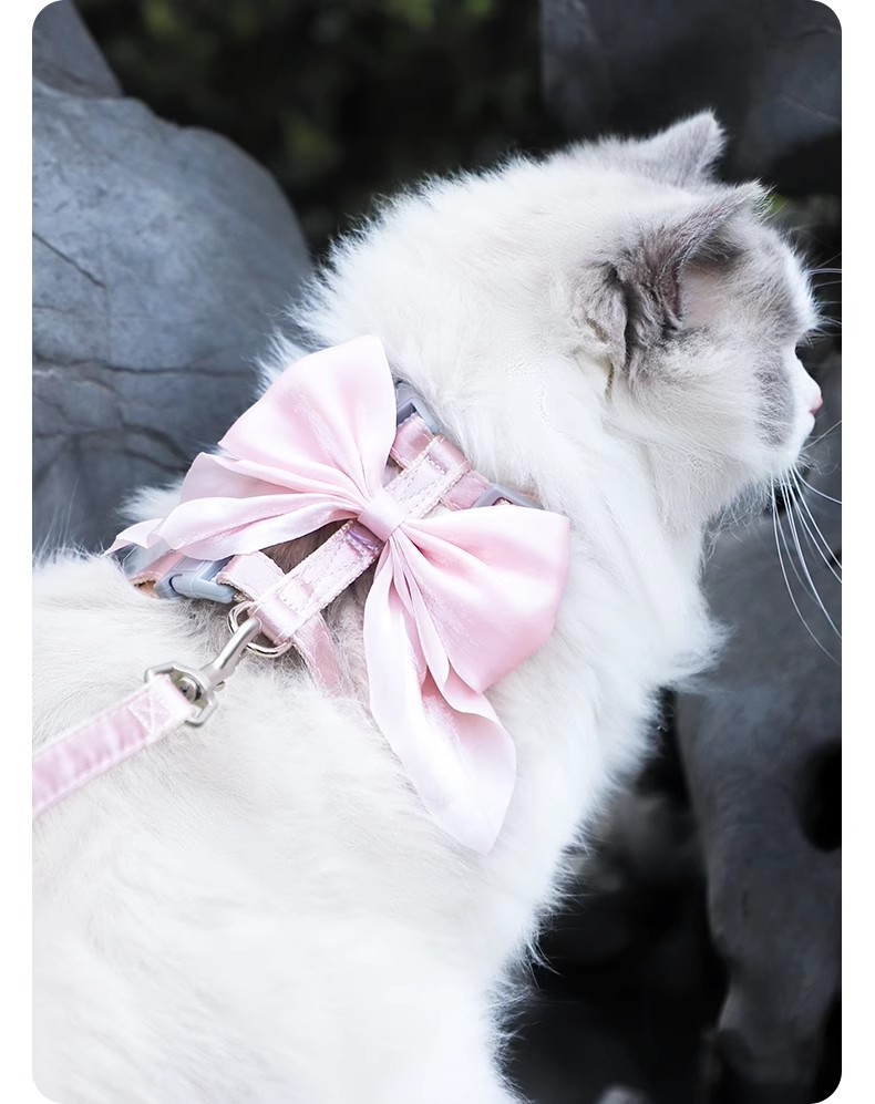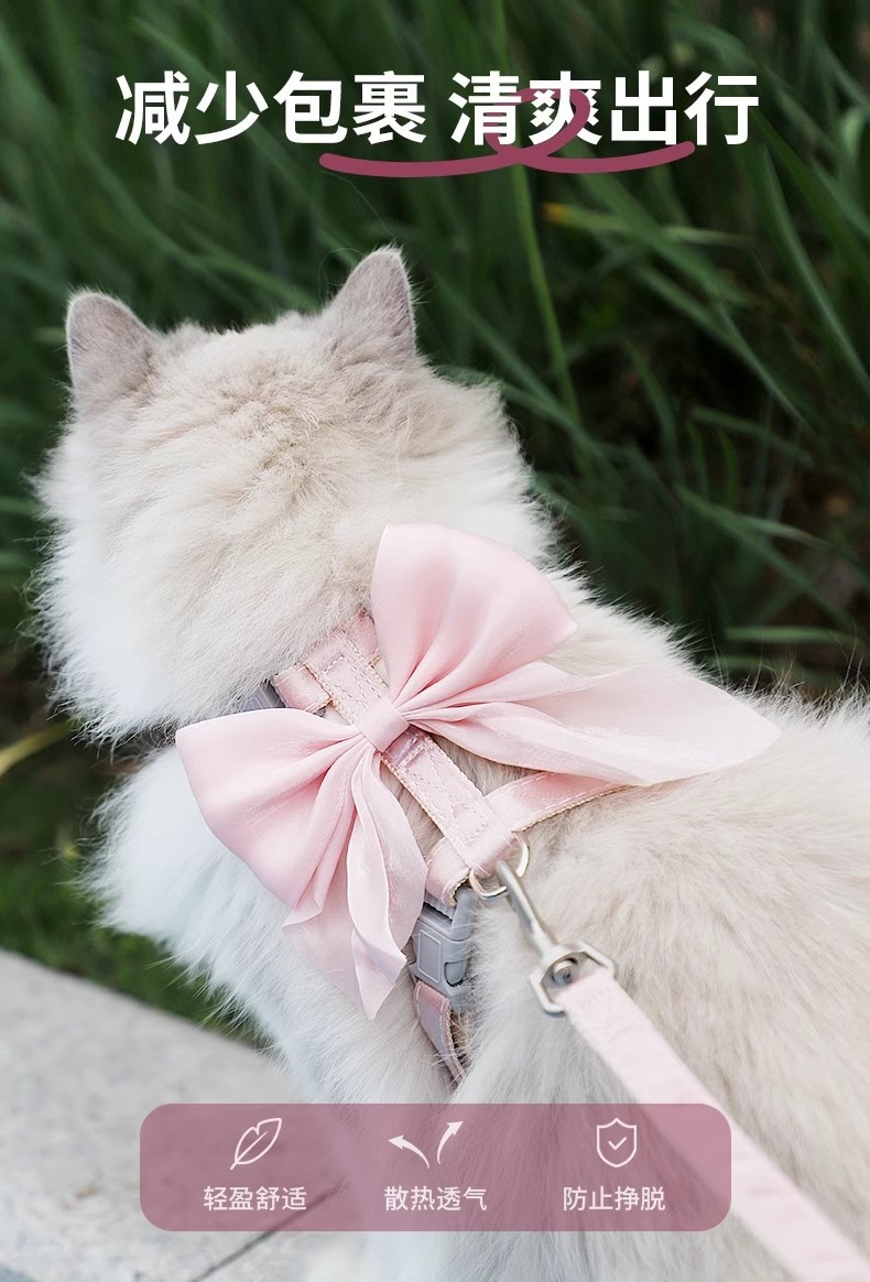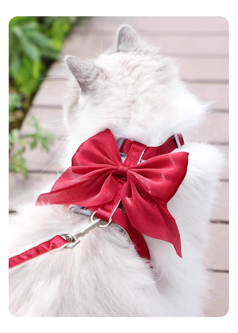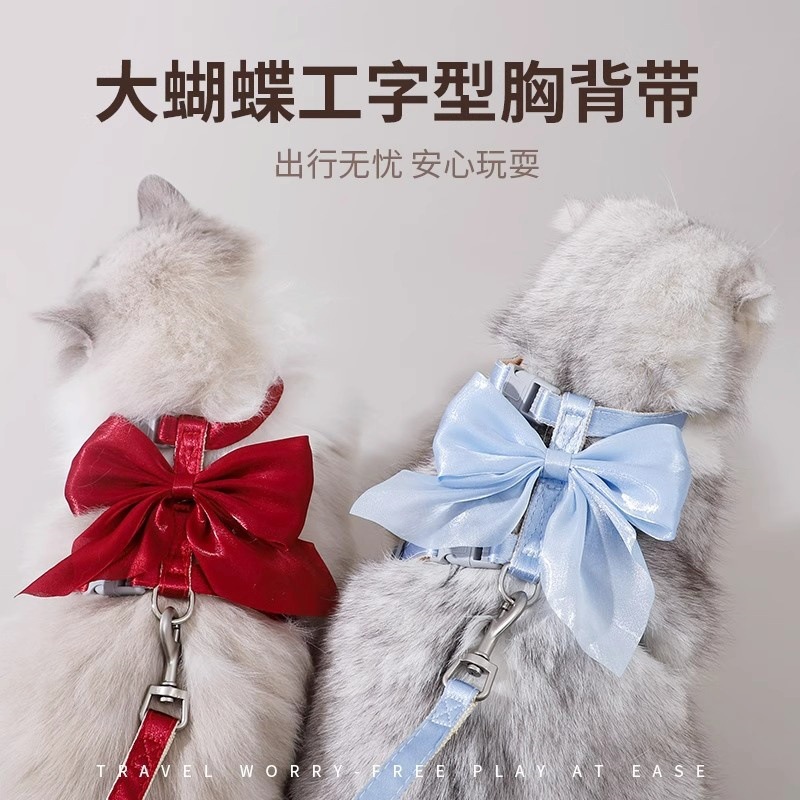 Тяговый канат для кошек, регулируемый противоскользящий канат для прогулок с кошками, цепочка для кошек, яркий шелковый бант, I-образный тяговый канат для кошек оптом