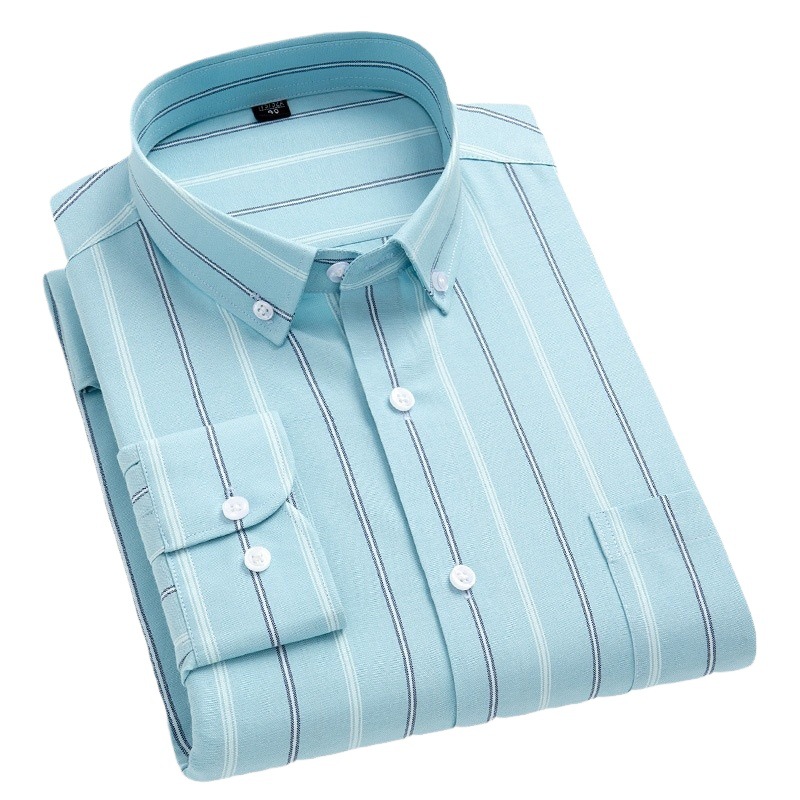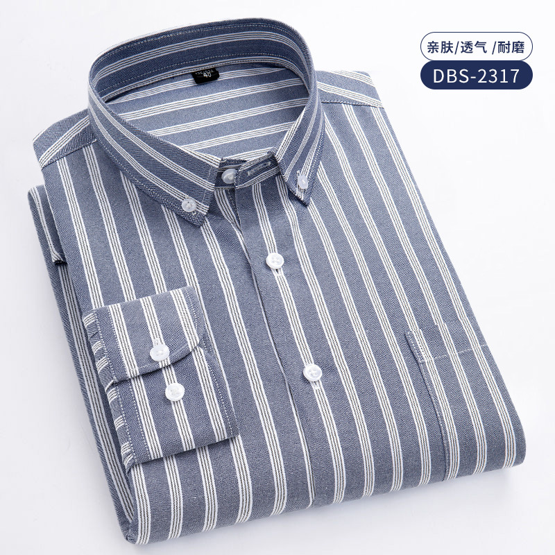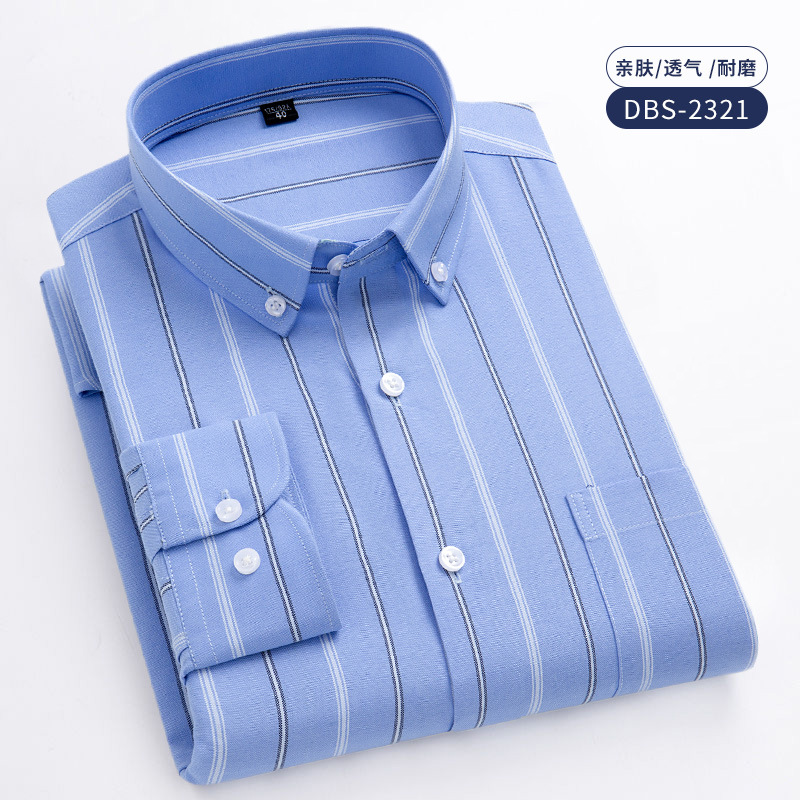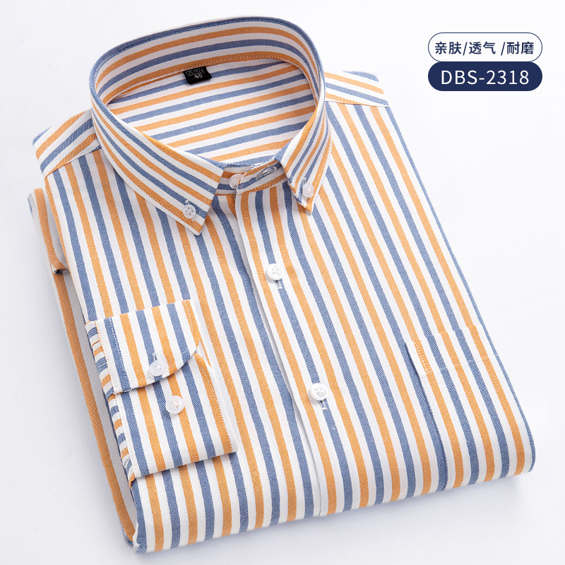 Новая весенне-осенняя мужская рубашка Оксфорд в полоску с длинными рукавами, деловая повседневная простая рубашка, удобная универсальная верхняя одежда