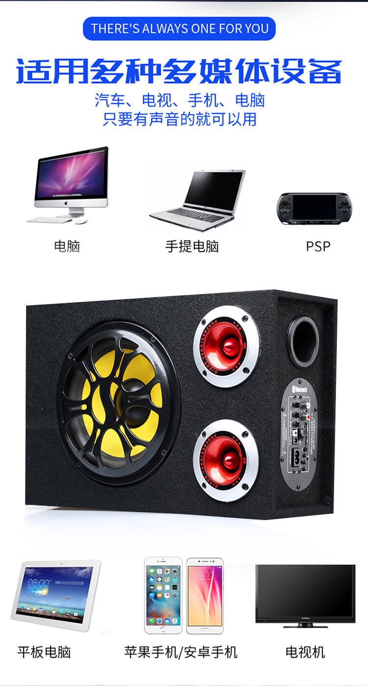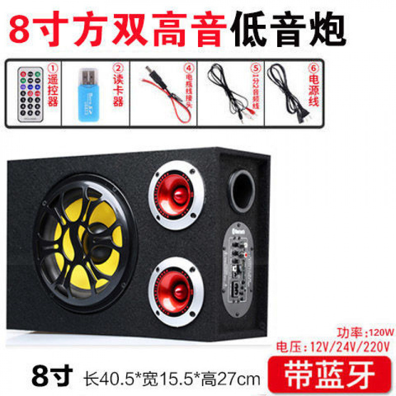 Квадратный автомобильный сабвуфер 220 В, домашний автомобильный компьютер, беспроводной Bluetooth-динамик, автомобильный грузовик, аудио высокой мощности