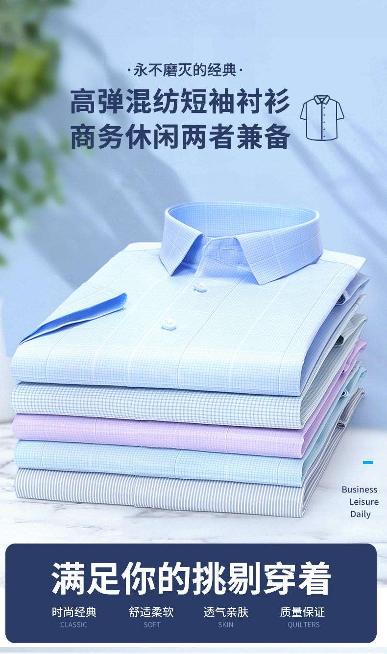 Новая летняя новая деловая повседневная рубашка с короткими рукавами, мужская рубашка с короткими рукавами, эластичная официальная одежда из мятного волокна, мужская бесплатная одежда