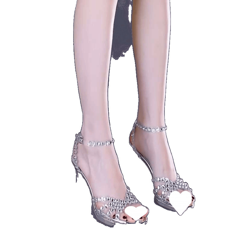 Женские босоножки на шпильке с открытым носком и юбкой, летняя новинка 2025 года, прозрачные стразы, элегантные туфли на высоком каблуке