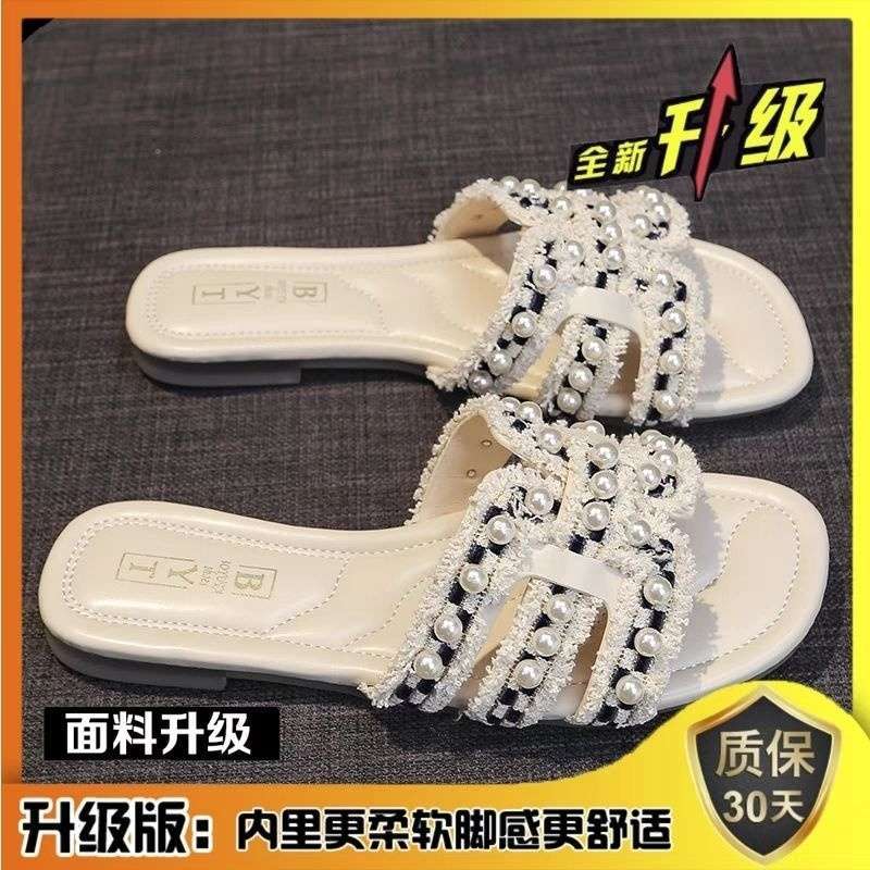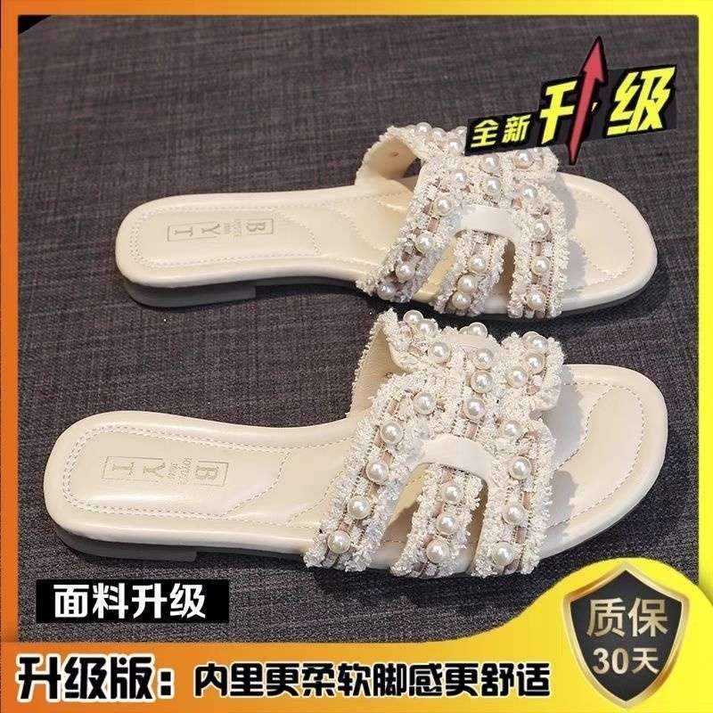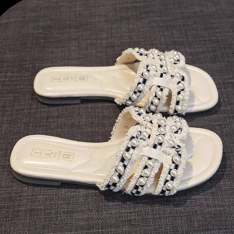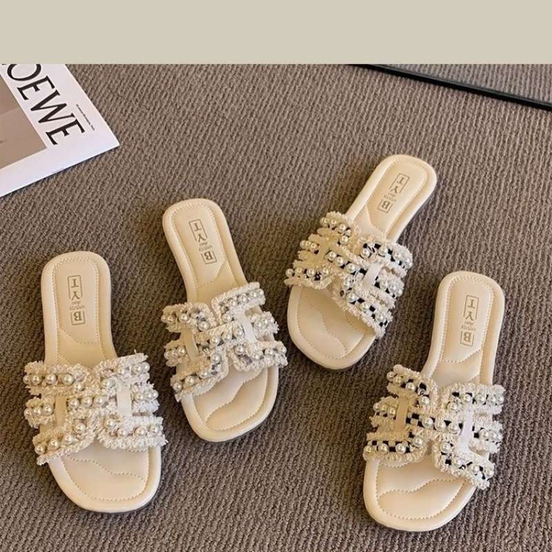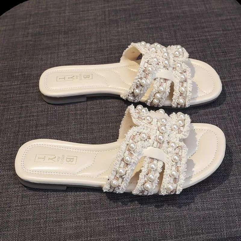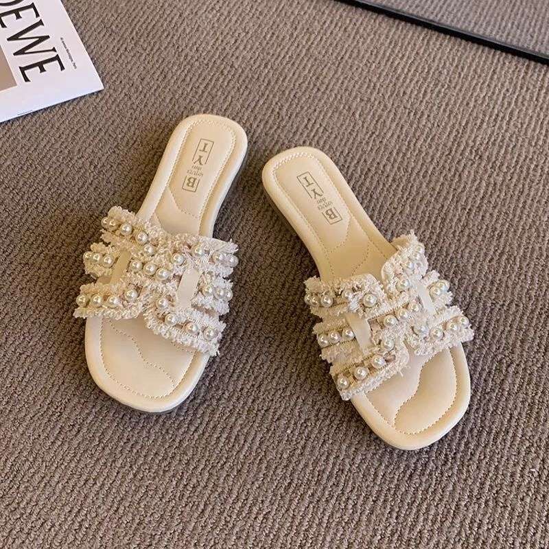 Женские пляжные сандалии Little Fairy Pearl Slippers, лето 2025, новая модель, плоская подошва