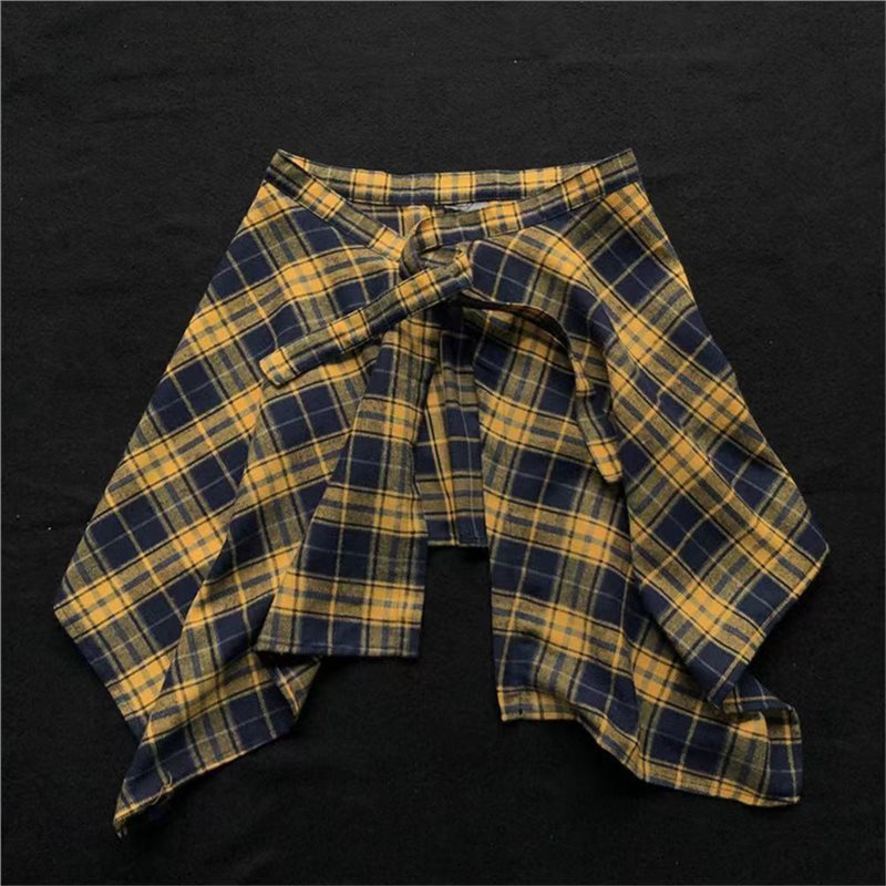 Модная яркая желтая клетчатая юбка для женщин этого года, цельная желтая клетчатая юбка на шнуровке, мужская рубашка с закрытым подолом для мальчиков.