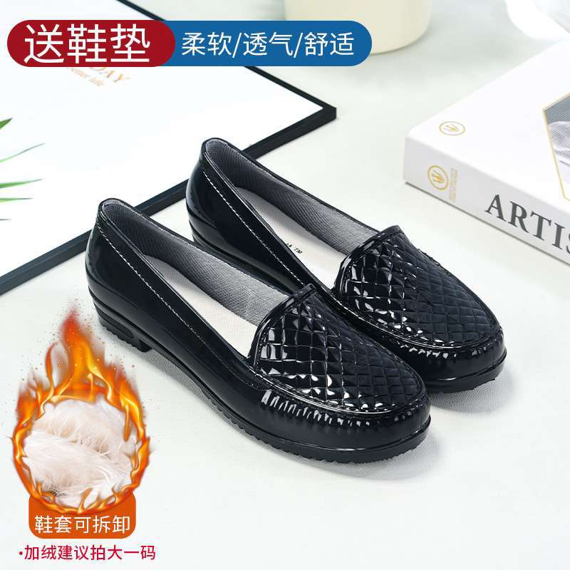 Нескользящие резиновые сапоги с низким вырезом, неглубокие весенние и осенние резиновые сапоги, модные женские студенческие резиновые сапоги на плоской подошве, резиновая обувь для работы на кухне, обувь для автомойки