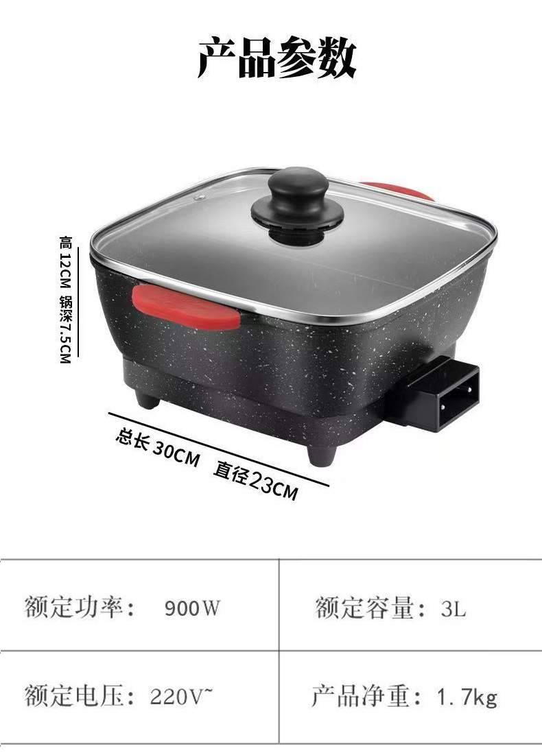 Маленькая электрическая кастрюля для студентов общежития, приготовление пищи, многофункциональная многоцелевая кастрюля, электрическая кастрюля с антипригарным покрытием, электрическая кастрюля для быстрого приготовления лапши «инь-ян»