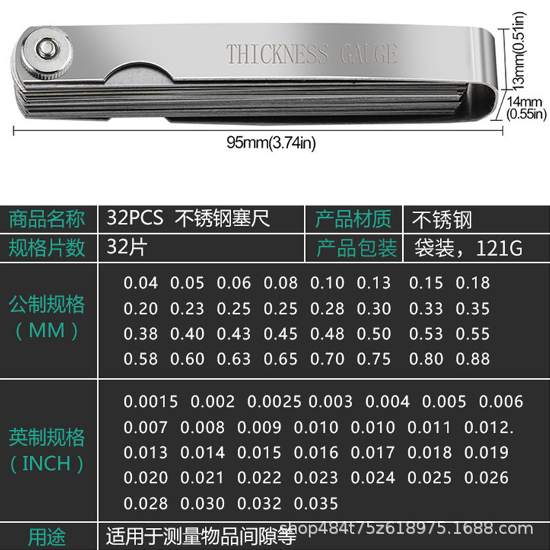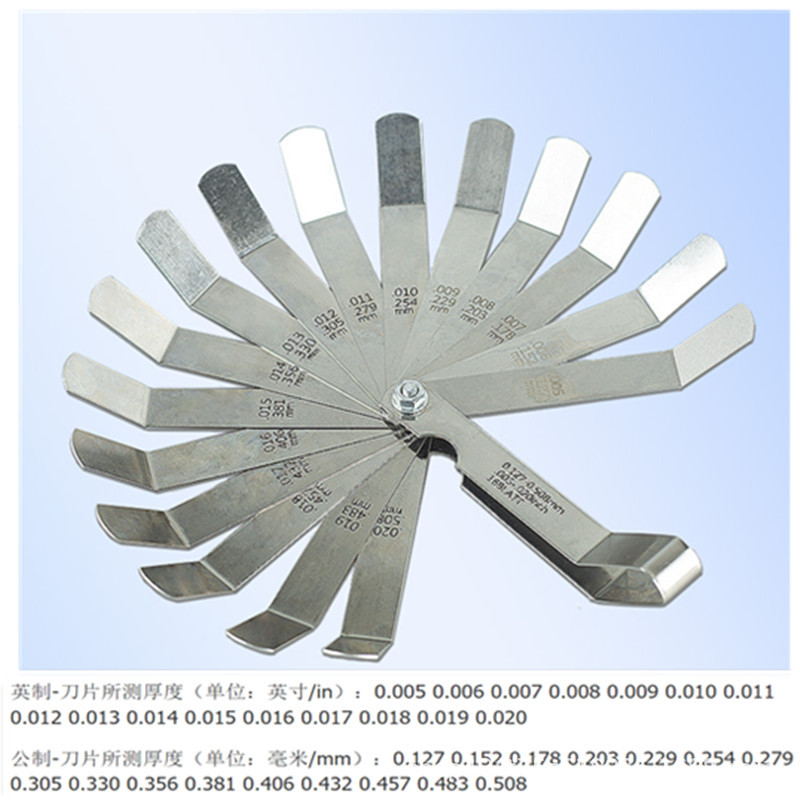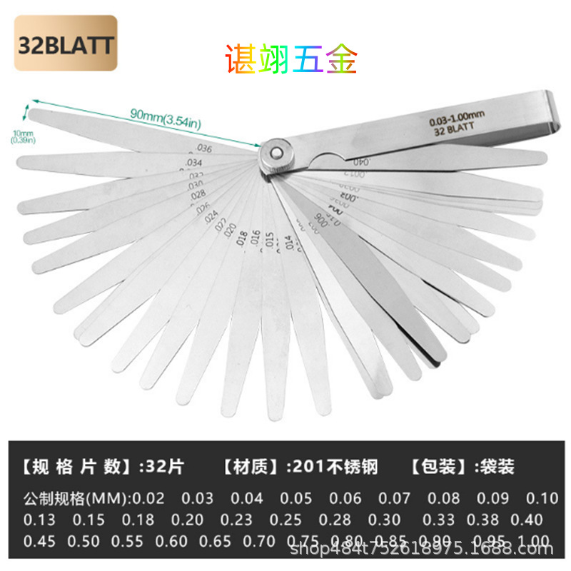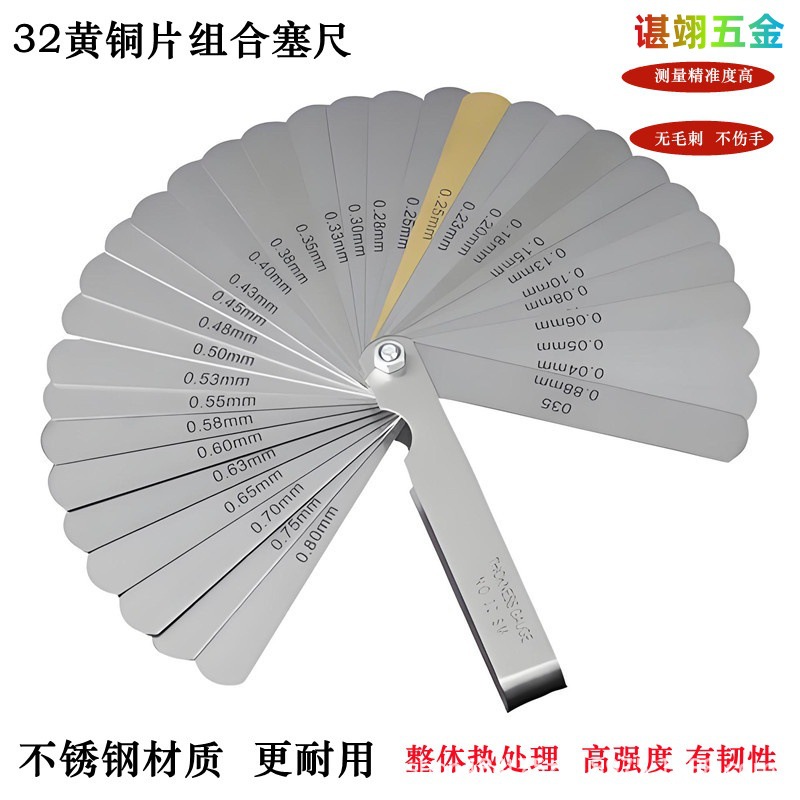 Комбинированный щуп, 32 шт., с медными зажимами, британский стандарт 0,0015–0,035 дюйма, метрический 0,04–0,88 мм для измерения толщины зазора