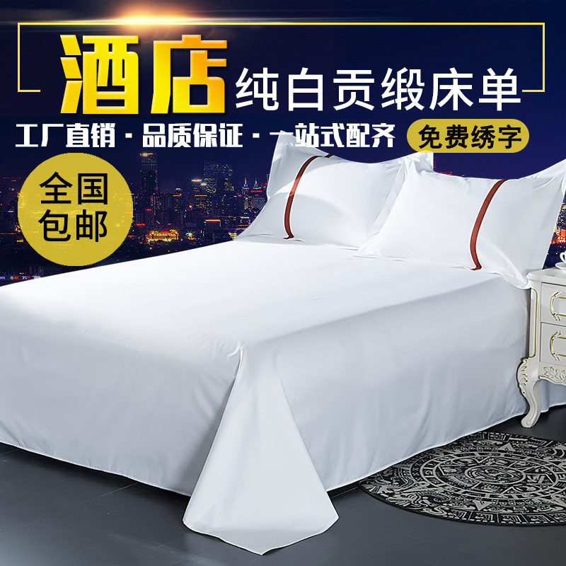 Постельное белье для отеля, чисто белые хлопковые утолщенные атласные простыни, покрывало, простыни, цельный лен J ^