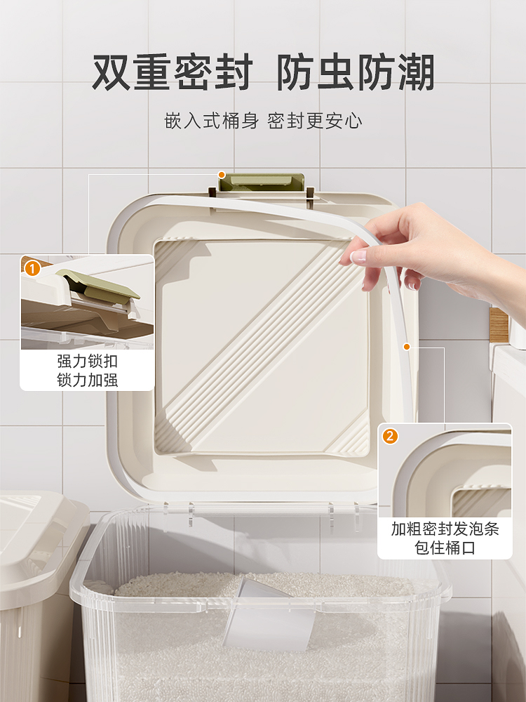 Ведро для риса, бытовое, новинка 2024 года, защищенное от насекомых и влаги, герметичное ведро для хранения зерна, резервуар для риса, ящик для хранения зерна, резервуар для хранения муки