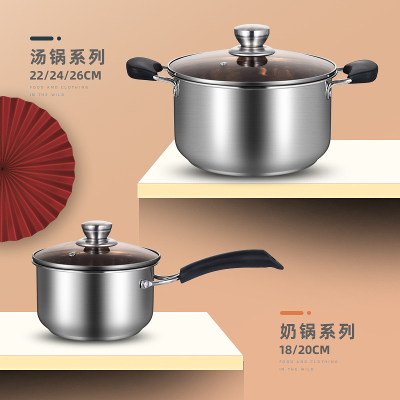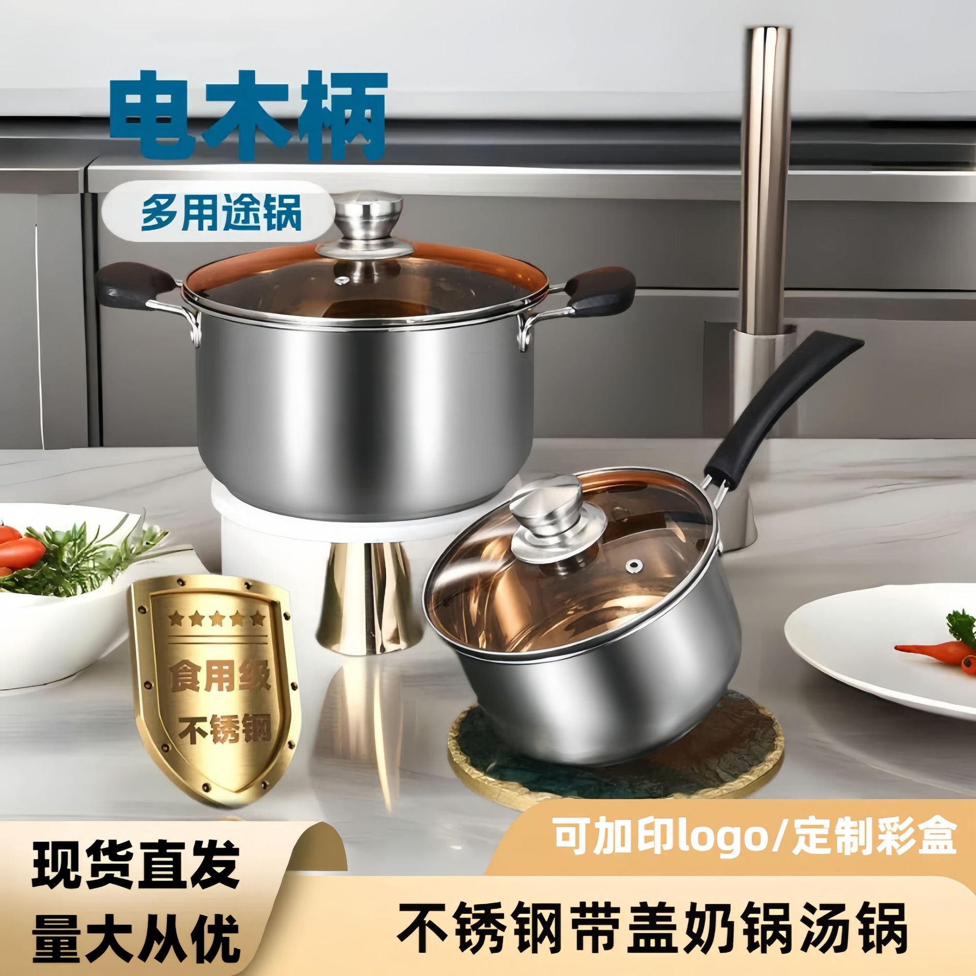 Кастрюля для молока и супа из пищевой нержавеющей стали особо толстого исполнения с крышкой, маленькая кастрюля для молока, кастрюля для супа с двумя ручками, универсальный подарок, кастрюля для прикорма, кухонная утварь