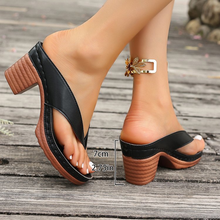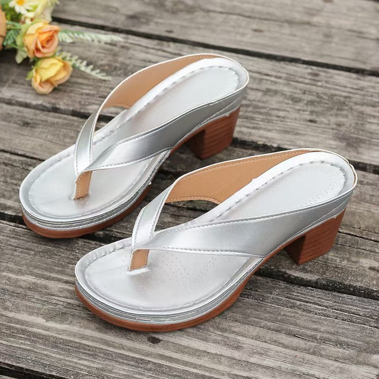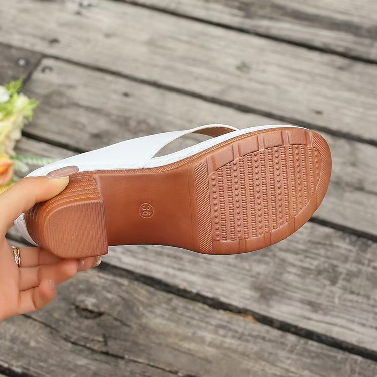 Женские летние сандалии больших размеров на толстом каблуке, оптом, 2025, новая европейская и американская модель, модные шлепанцы на высоком толстом каблуке, внешняя торговля