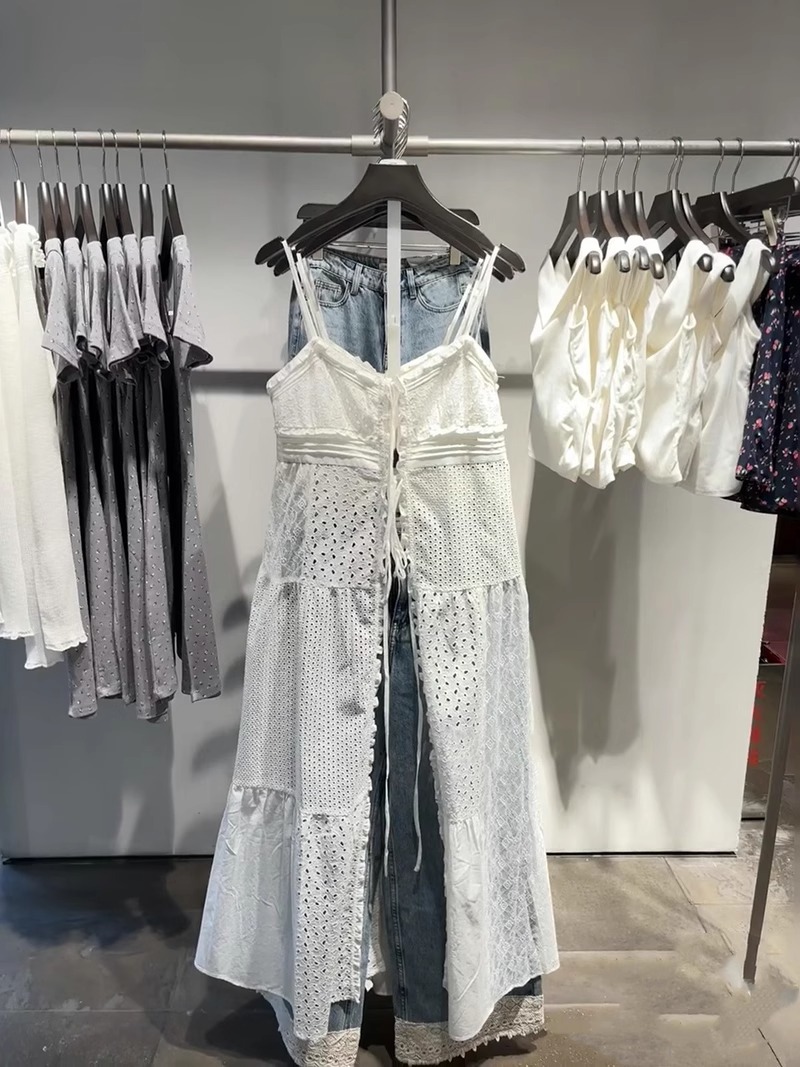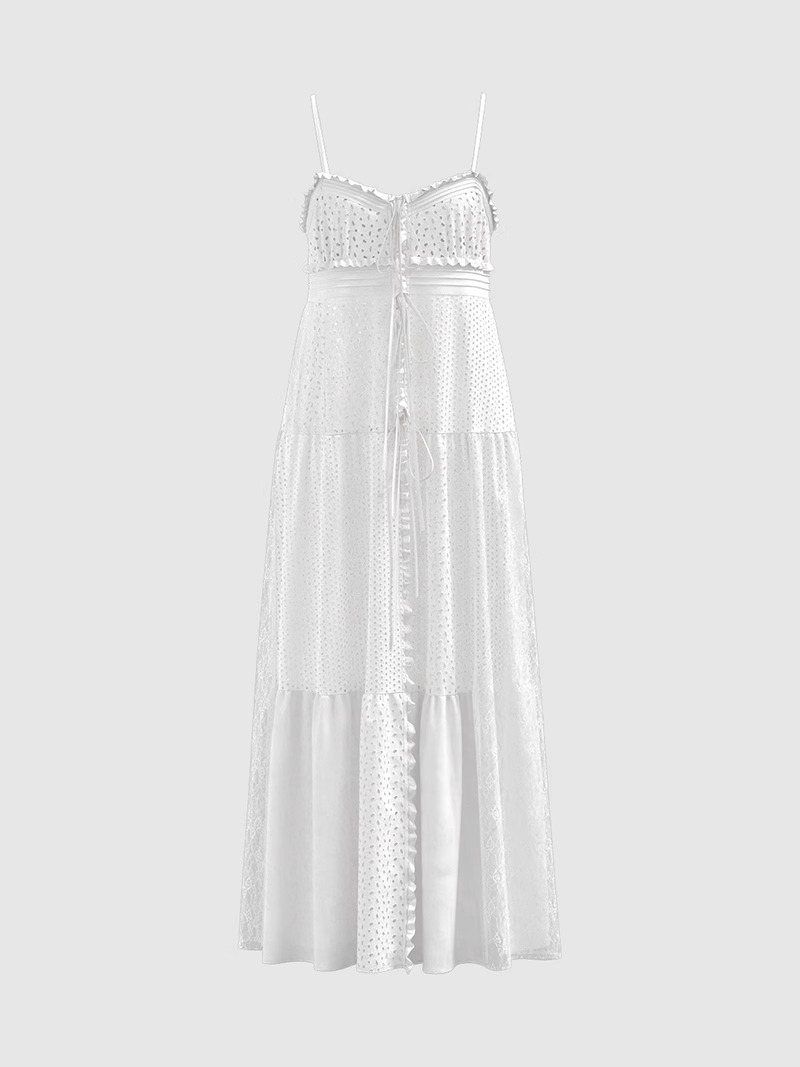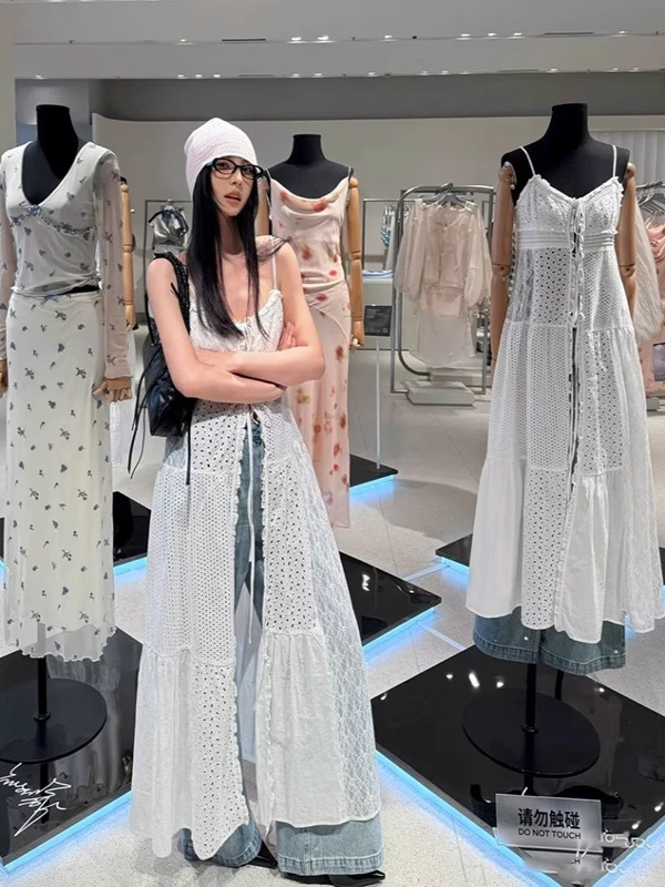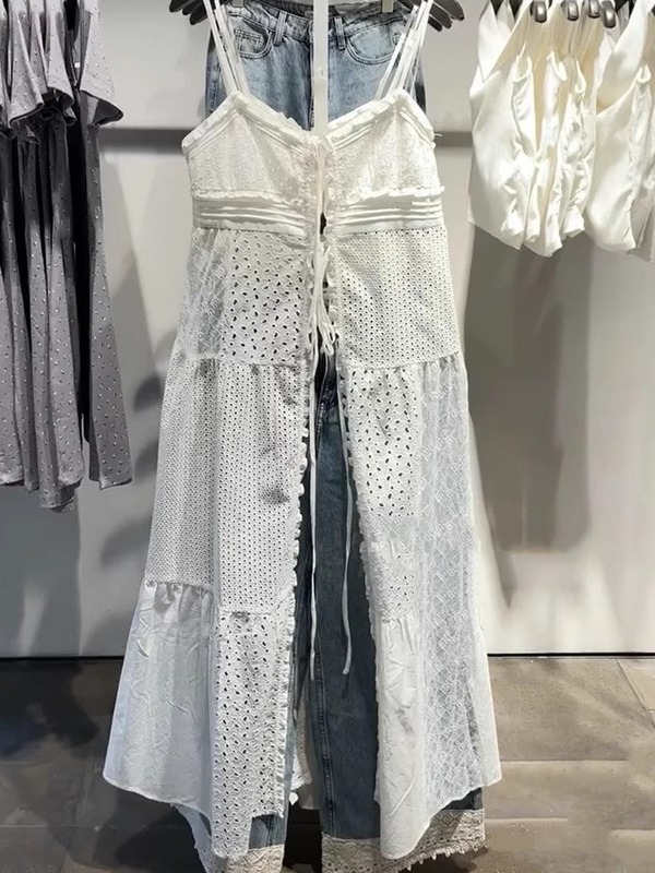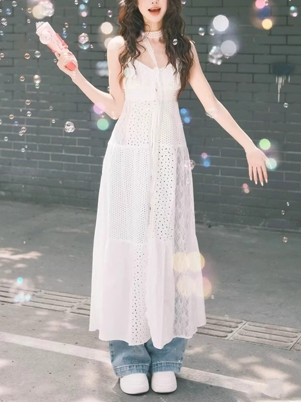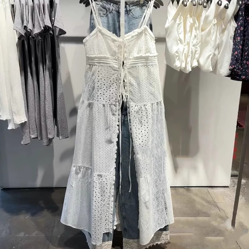 Французское ретро белое кружевное платье на подтяжках для женщин, летнее многослойное платье в стиле морского курорта, длинная юбка феи