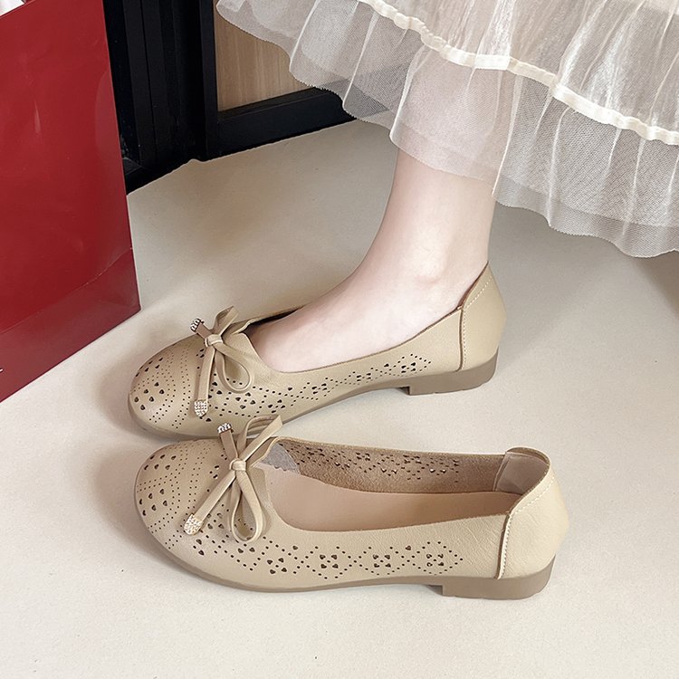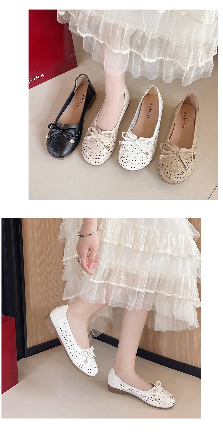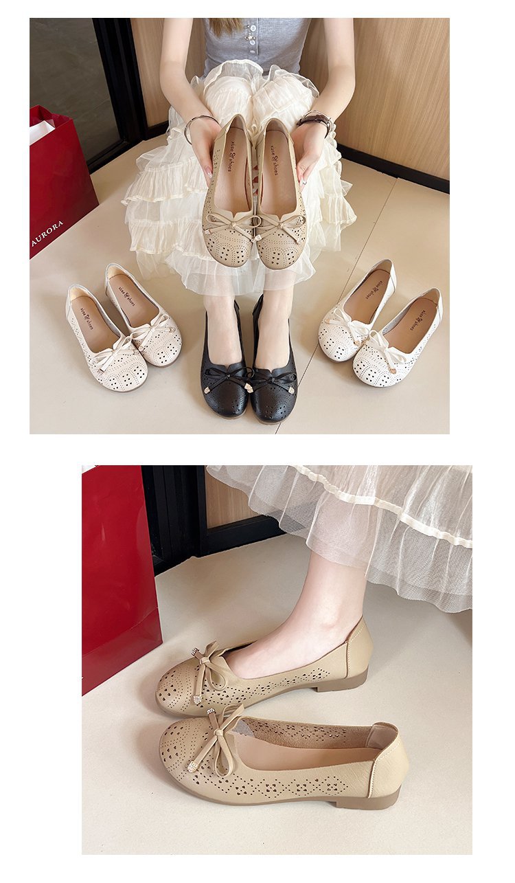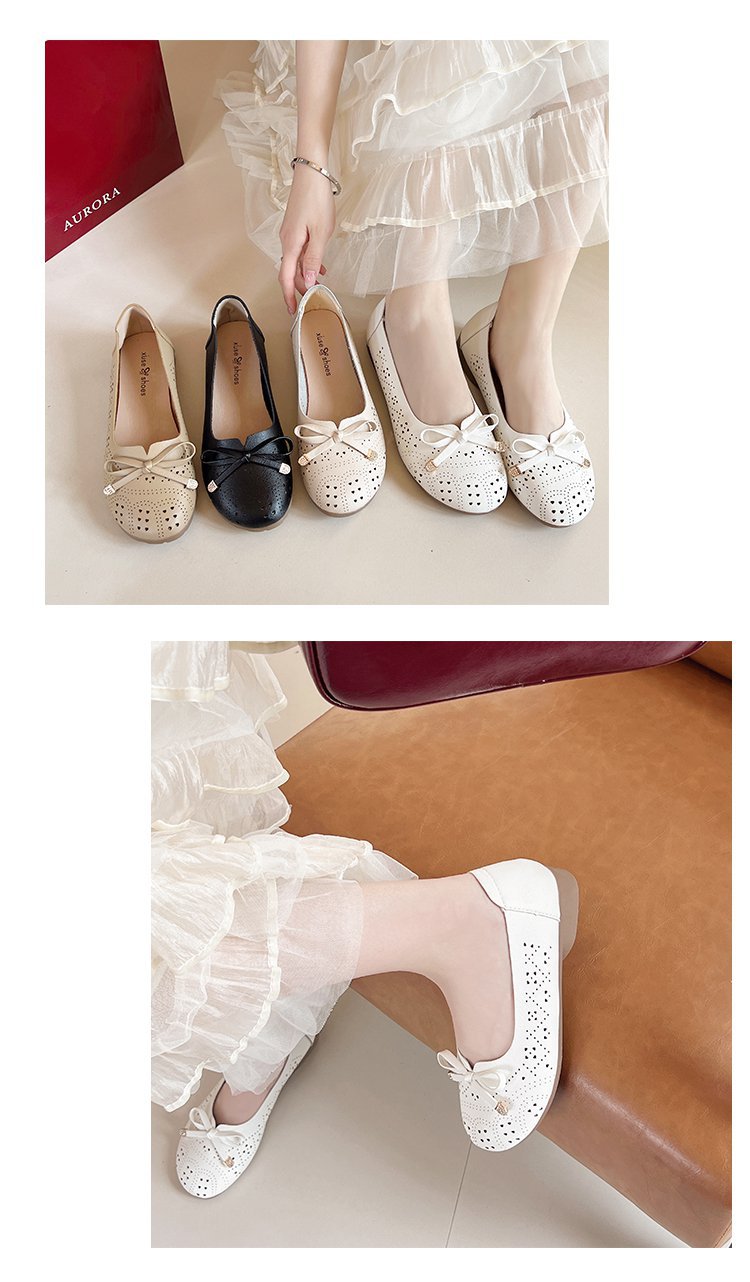 Ретро мягкие туфли-босоножки на низком каблуке с вырезом и бантом на подошве для женщин, весна-лето 2025