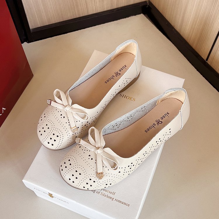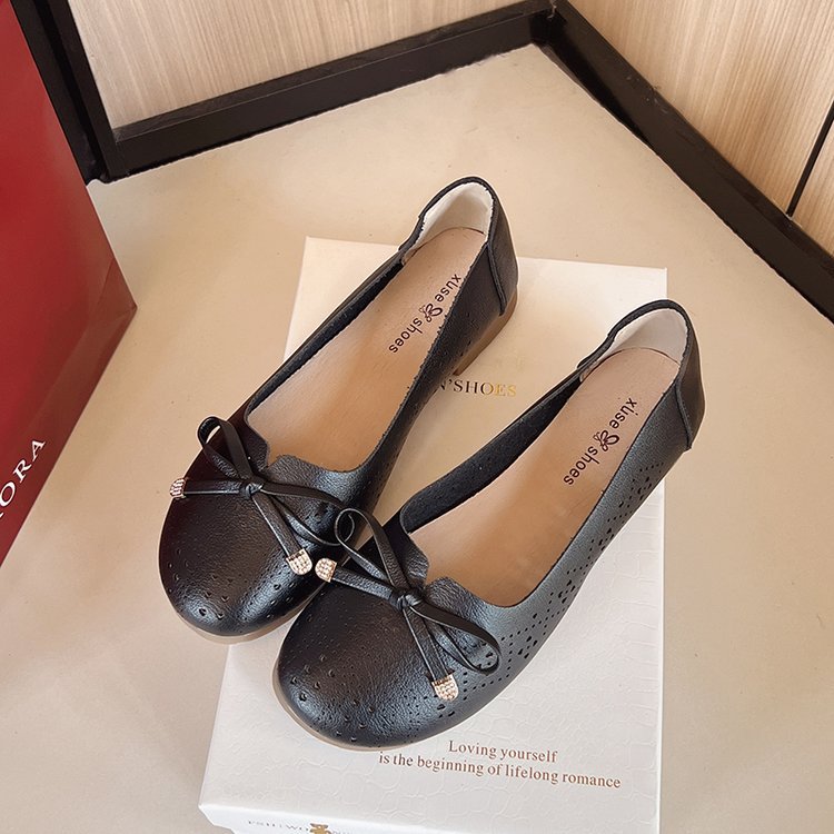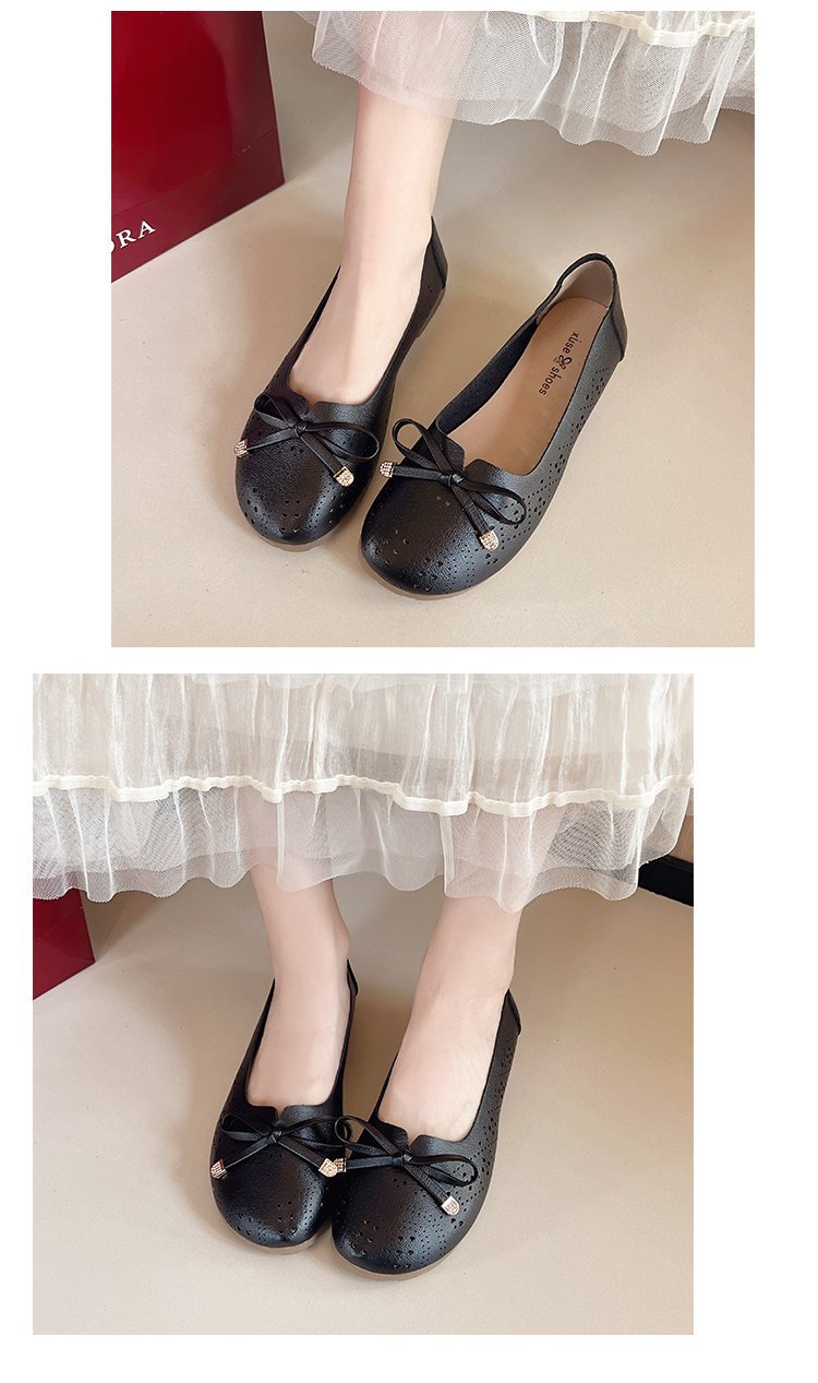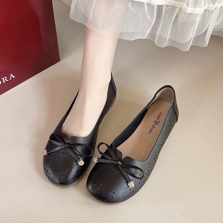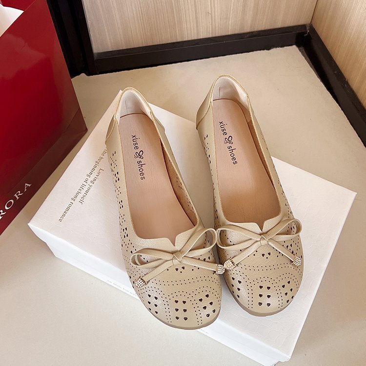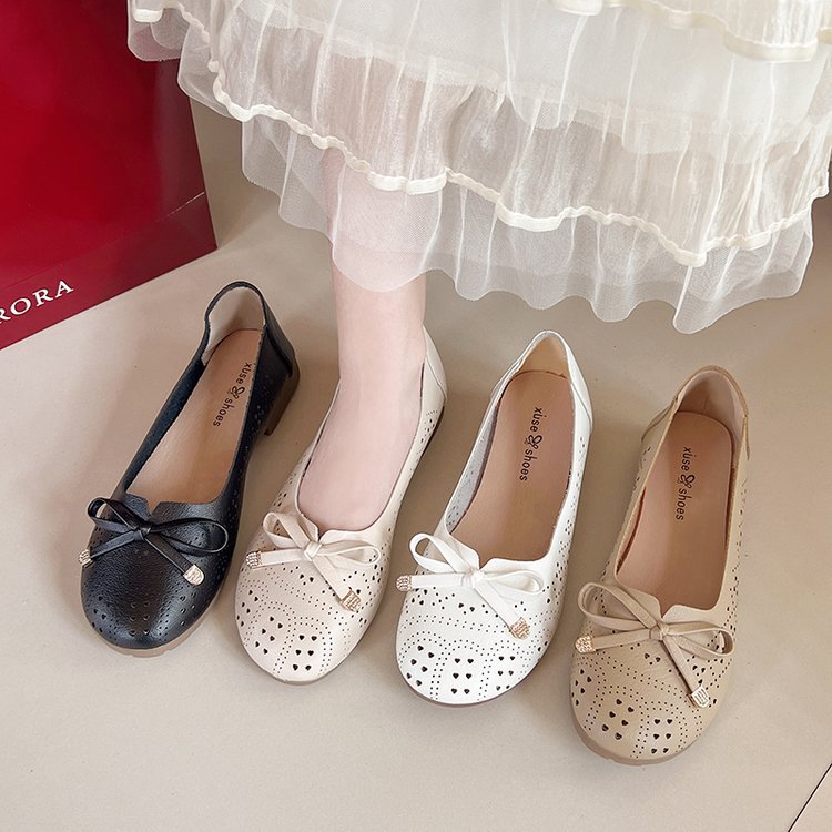 Ретро мягкие туфли-босоножки на низком каблуке с вырезом и бантом на подошве для женщин, весна-лето 2025