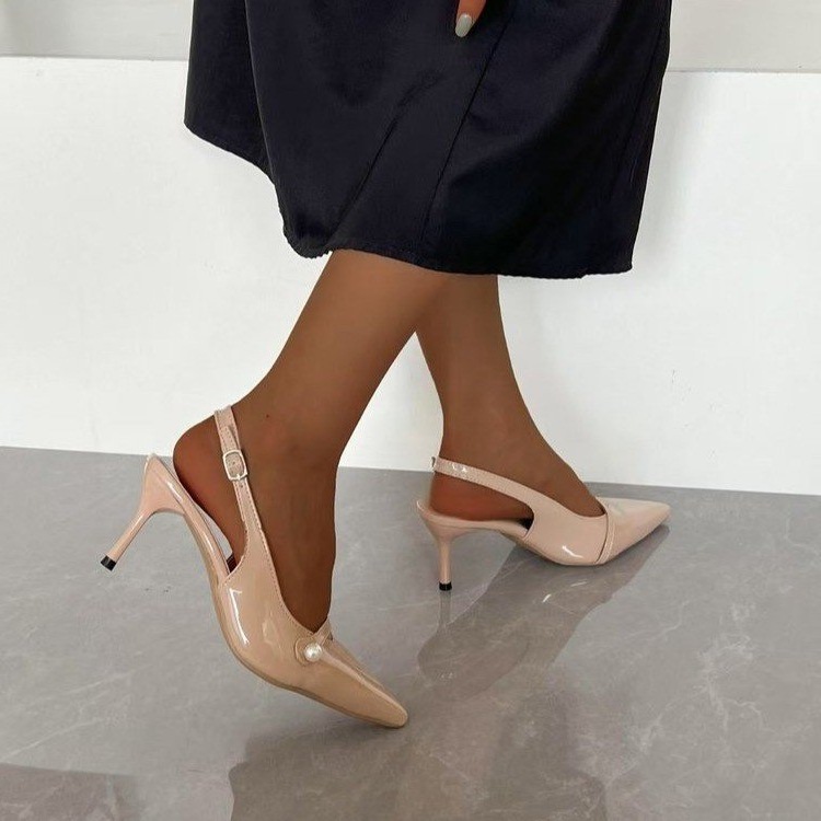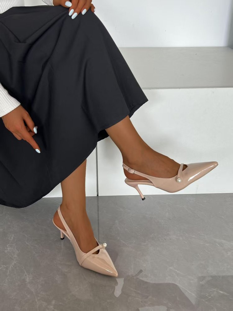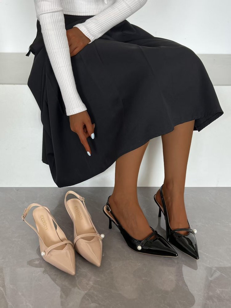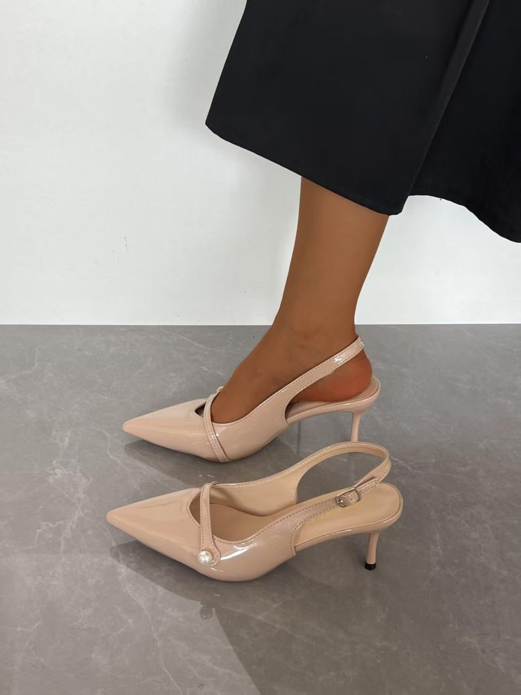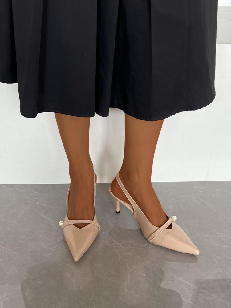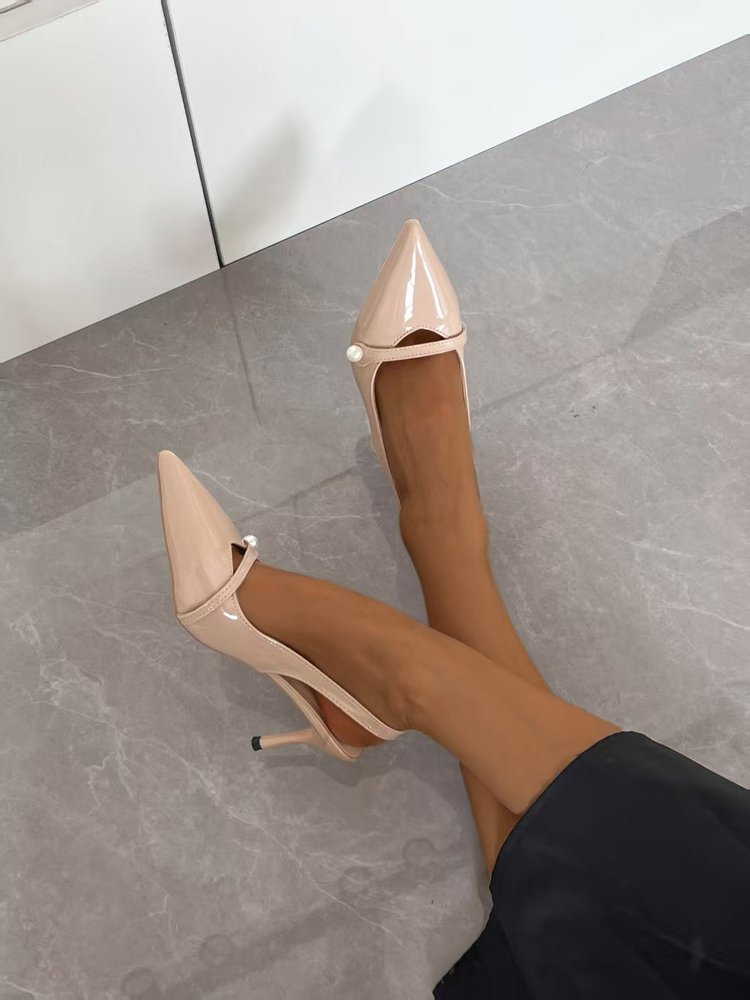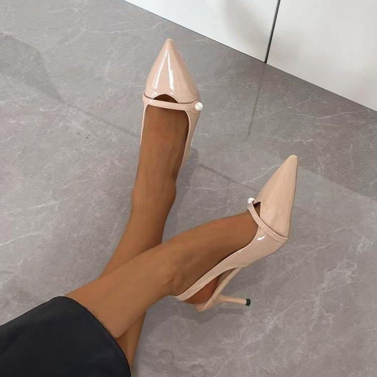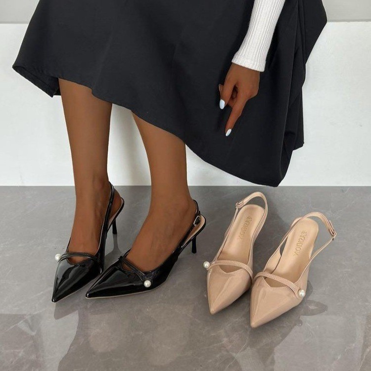 2025 новые летние стильные туфли на шпильке с острым носком и жемчужным декором, универсальные повседневные женские туфли с неглубоким вырезом