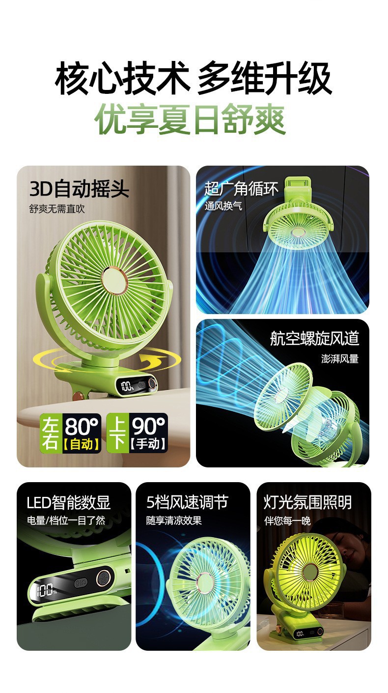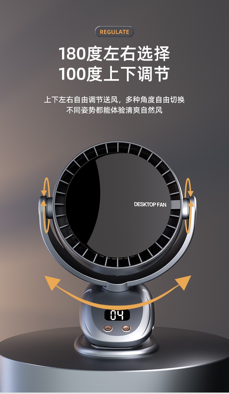 Новый бытовой бесшумный вентилятор с цифровым дисплеем, мини-настольный вентилятор, перезаряжаемая подвесная подставка для общежития