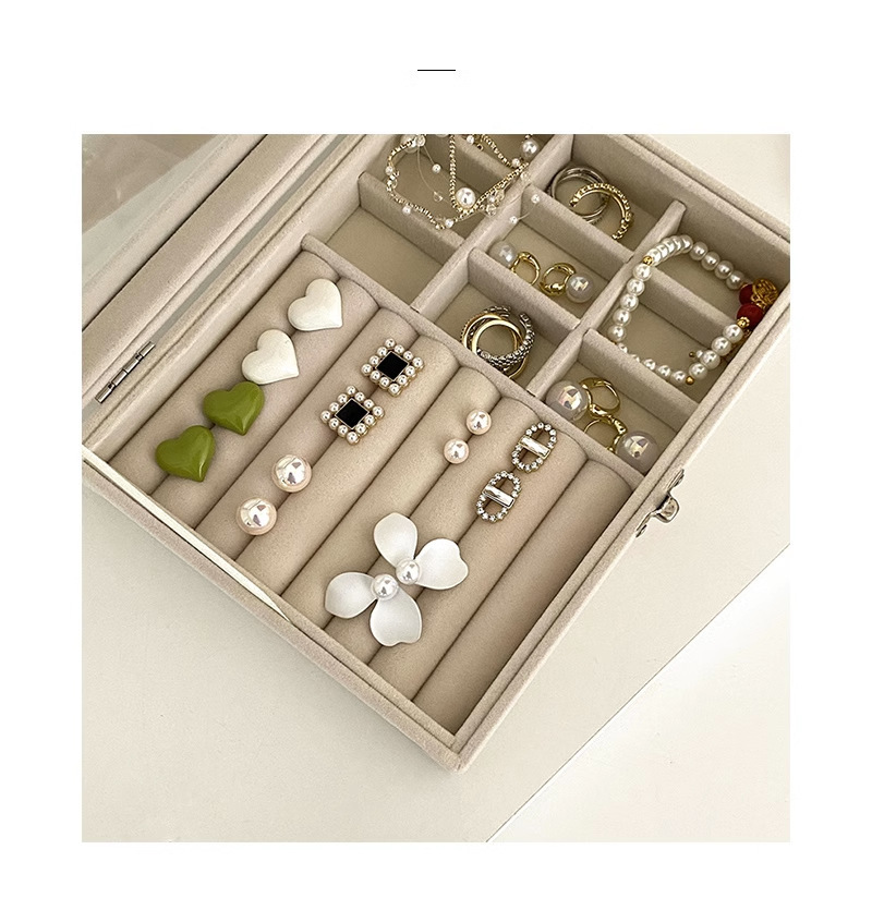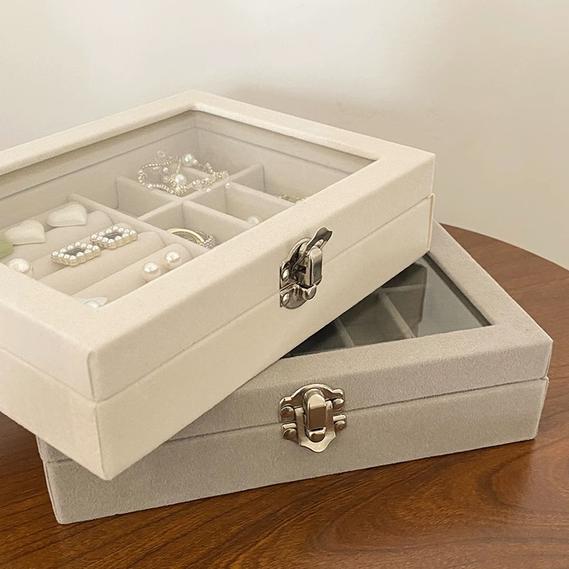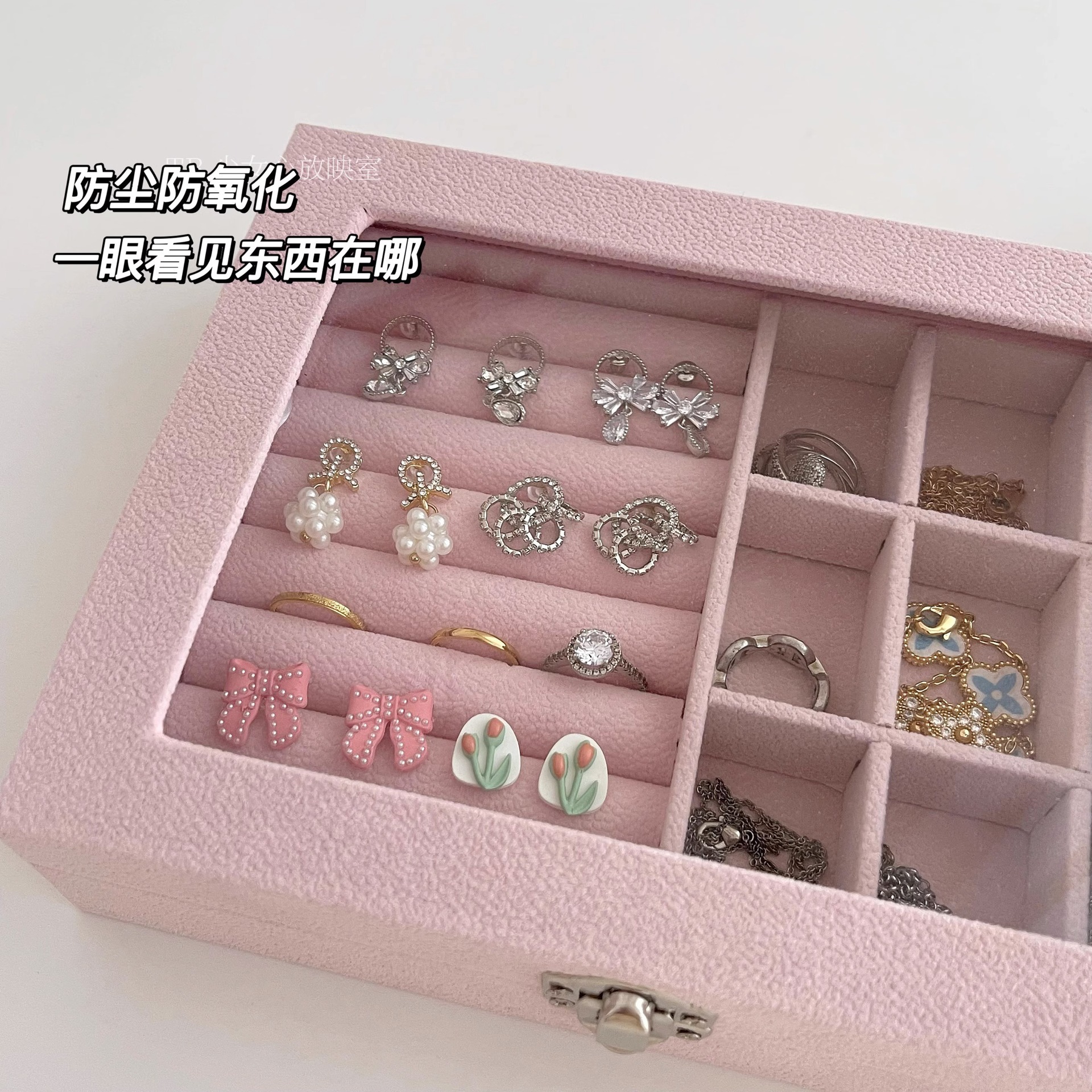 Прозрачная бархатная шкатулка для хранения ювелирных изделий с замком, компактное ожерелье, кольцо, полка для сережек, подставка для сережек, домашняя коробка