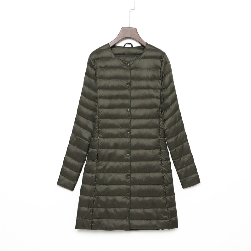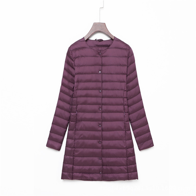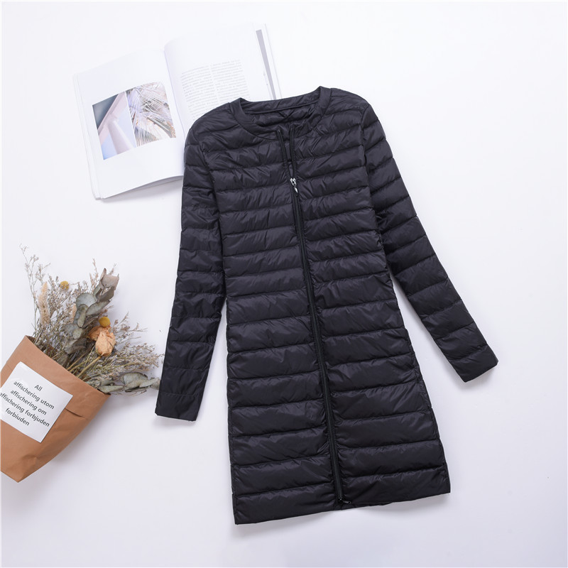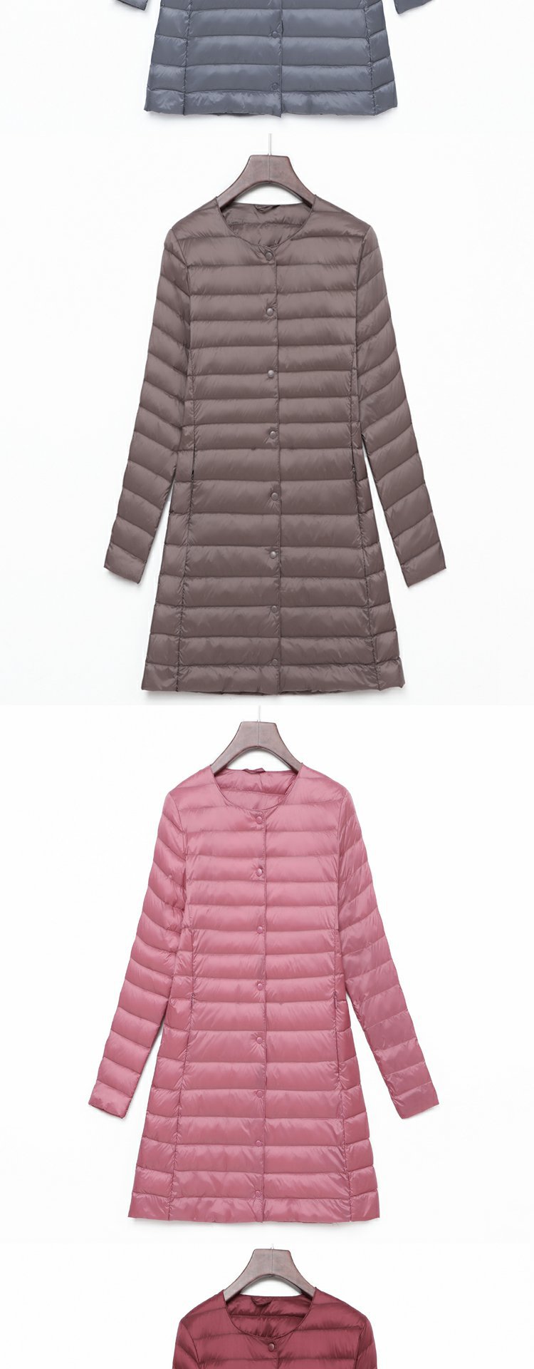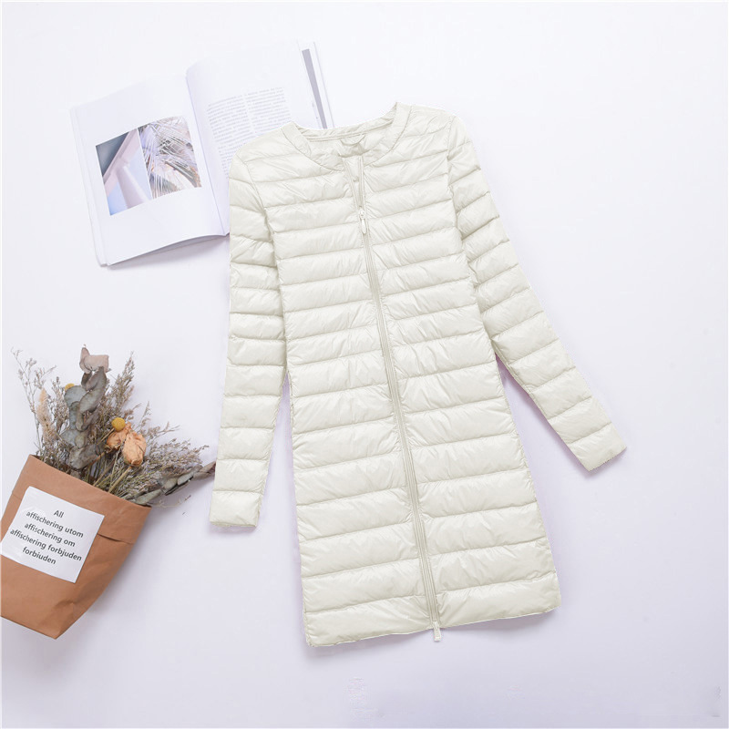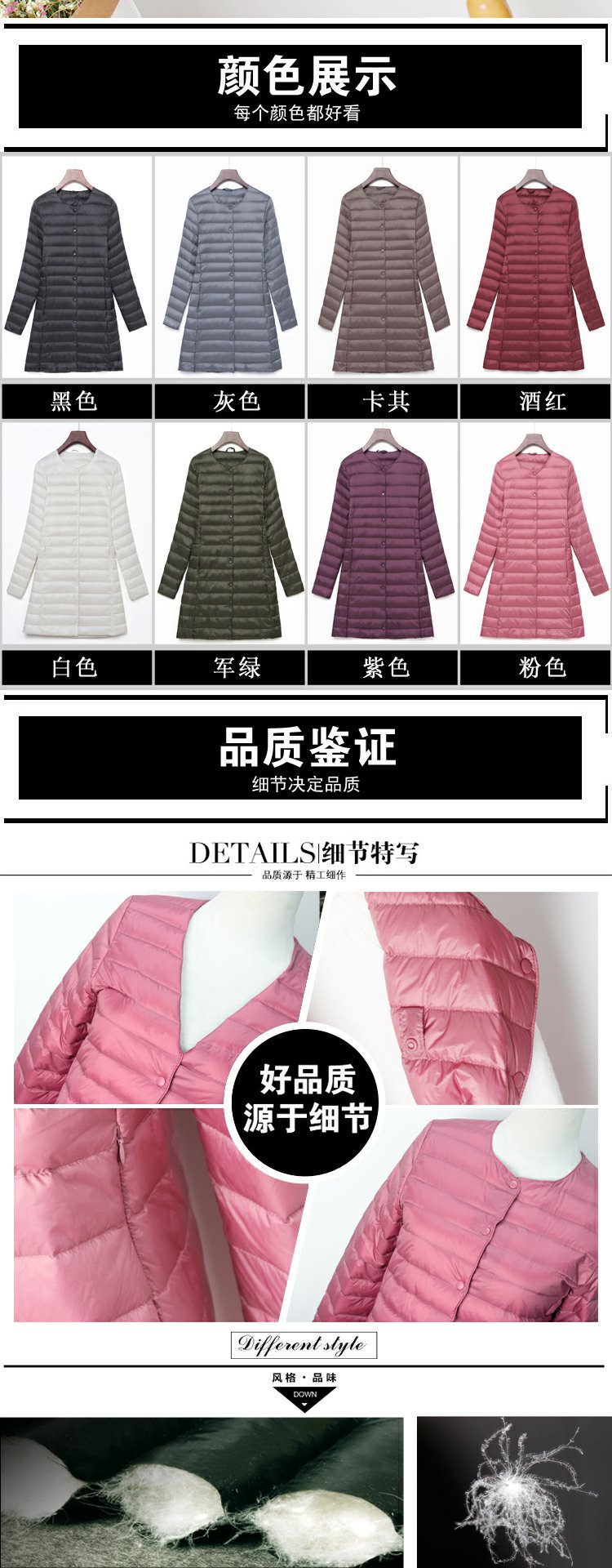 Новый женский пуховик, легкий, средней длины, модный корейский стиль, утягивающий белый утиный пух, кнопка, круглый вырез, теплое пальто с внутренней подкладкой.