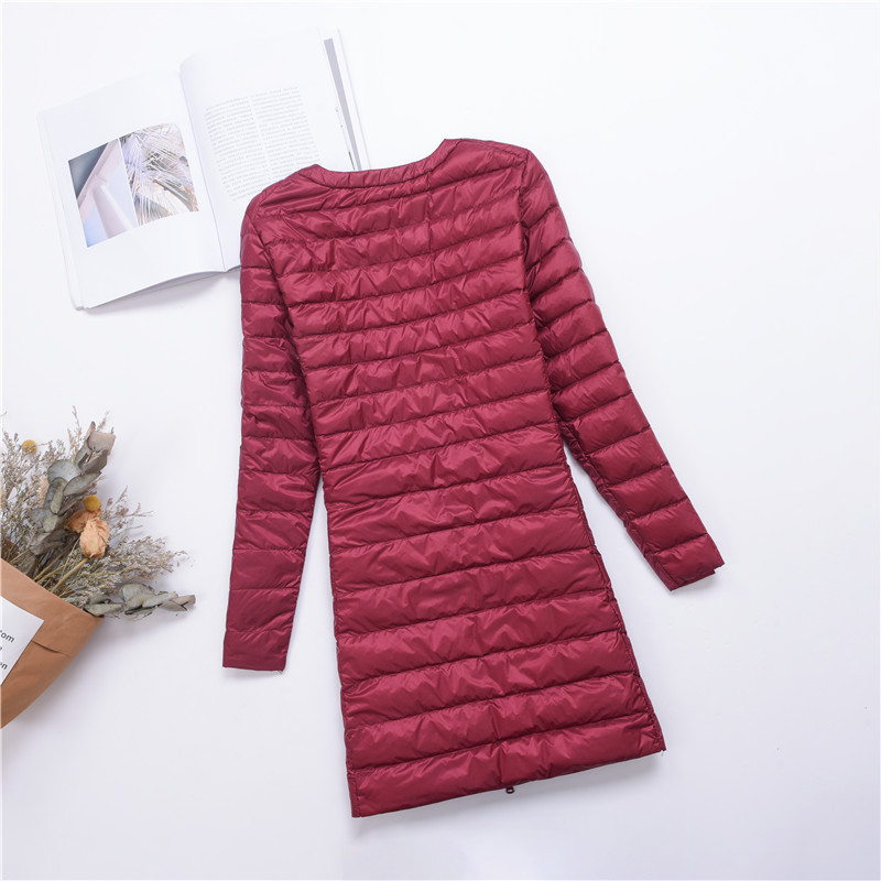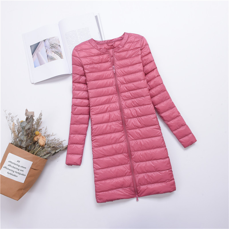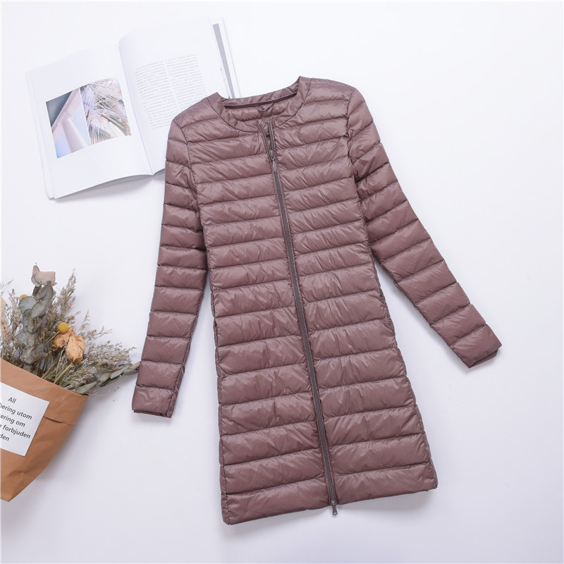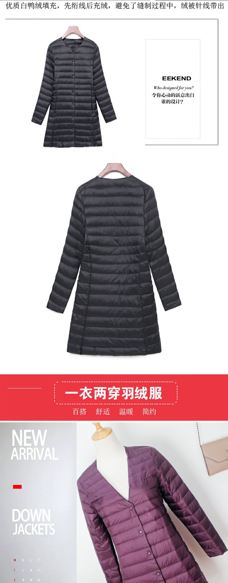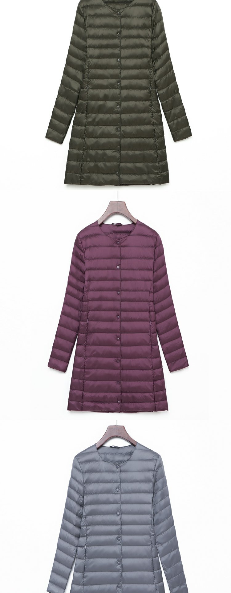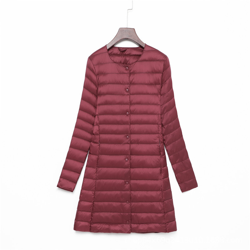 Новый женский пуховик, легкий, средней длины, модный корейский стиль, утягивающий белый утиный пух, кнопка, круглый вырез, теплое пальто с внутренней подкладкой.