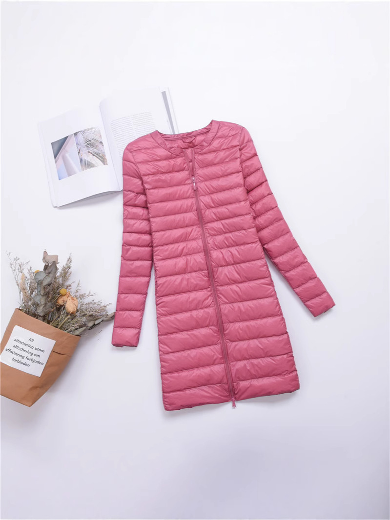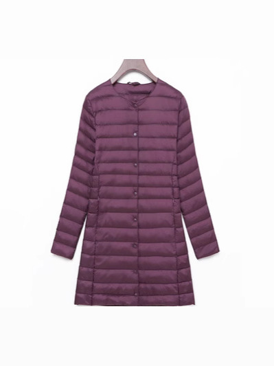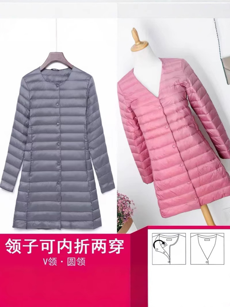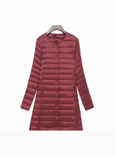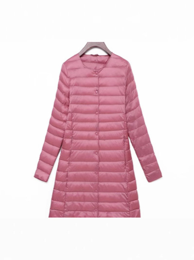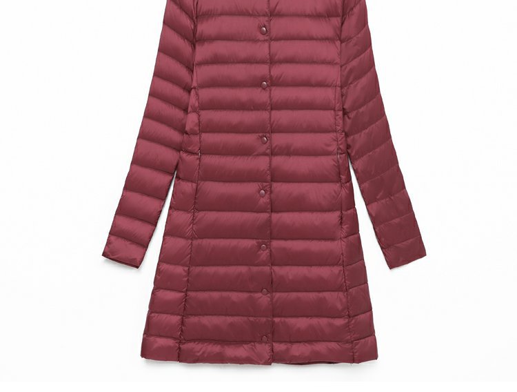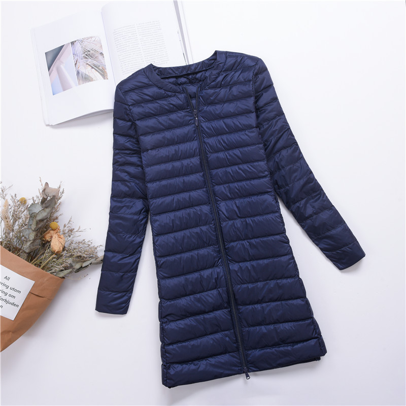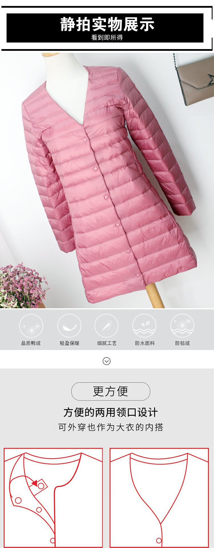 Новый женский пуховик, легкий, средней длины, модный корейский стиль, утягивающий белый утиный пух, кнопка, круглый вырез, теплое пальто с внутренней подкладкой.