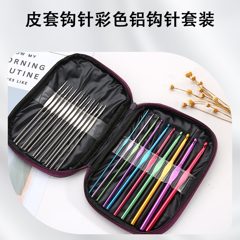 Набор крючков для вязания из цветного металла и алюминиевого сплава, 22 крючка из нержавеющей стали и алюминиевого сплава в сумке.