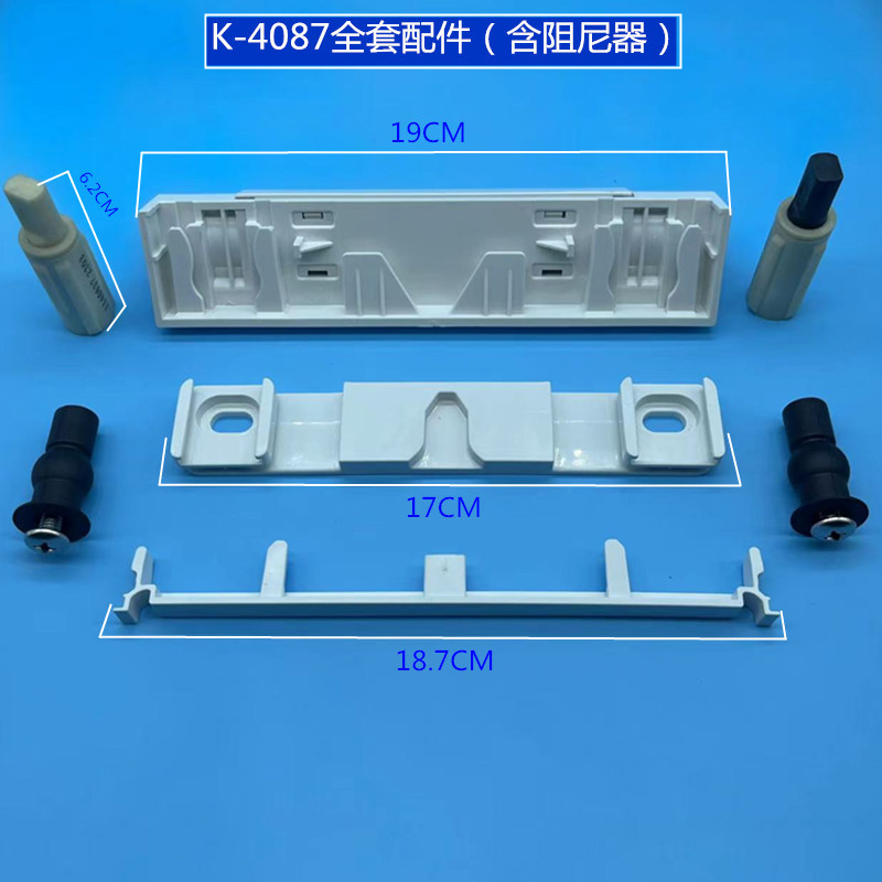 К-4087 (полный комплект аксессуаров, включая демпфер); К-4087 (в комплект поставки не входит демпфер); К-4087 (фиксированная пластина + пряжка + расширительный винт); К-4087 (шарнирное сиденье); К-4087 (фиксированная пластина); К-4087 (пряжка); К-4087 (замедляющий демпфер); К-4087 (расширительный винт)