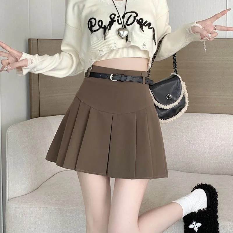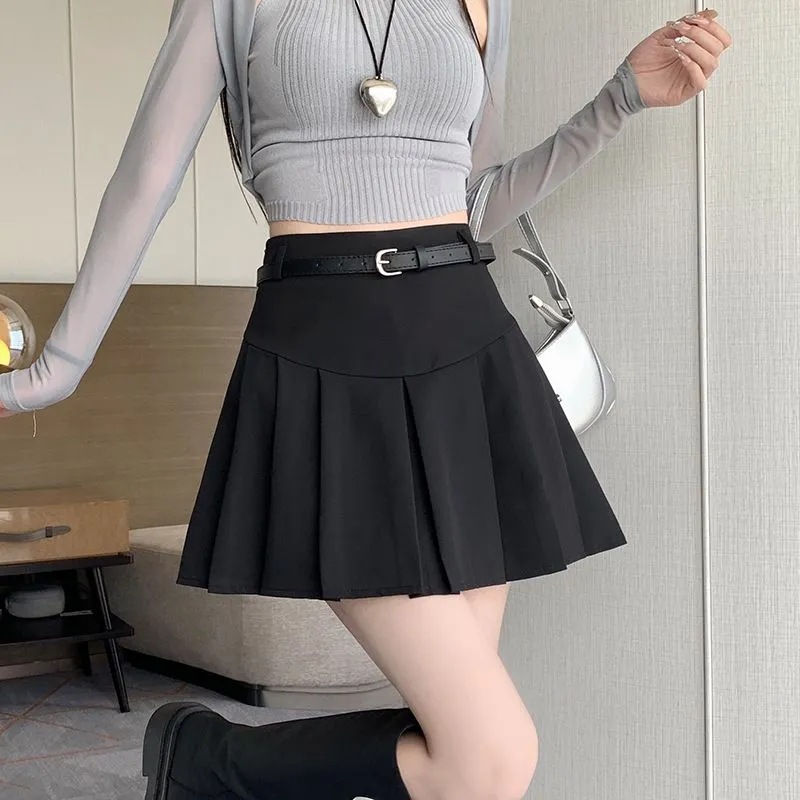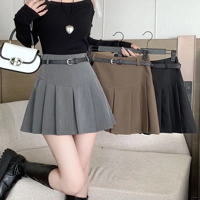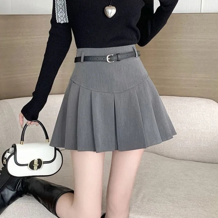 Серая плиссированная юбка-мини для женщин, осень 2025, новый костюм, высокая талия, стройнящая, А-силуэта