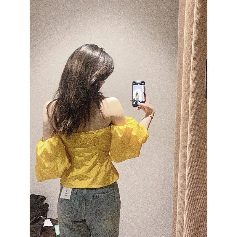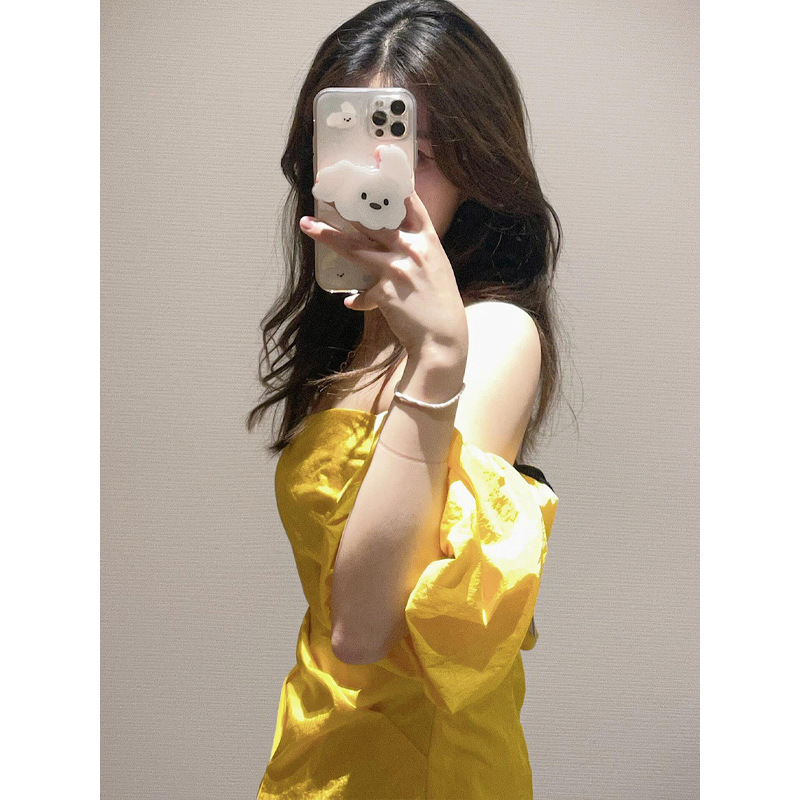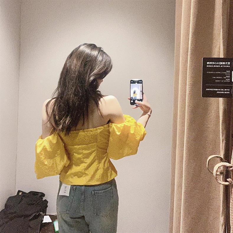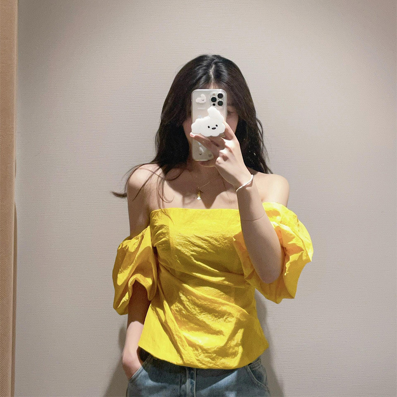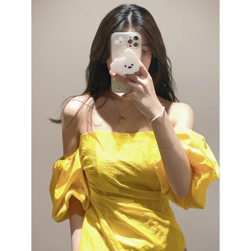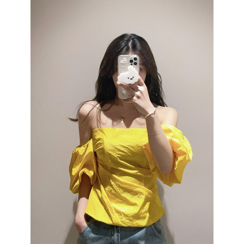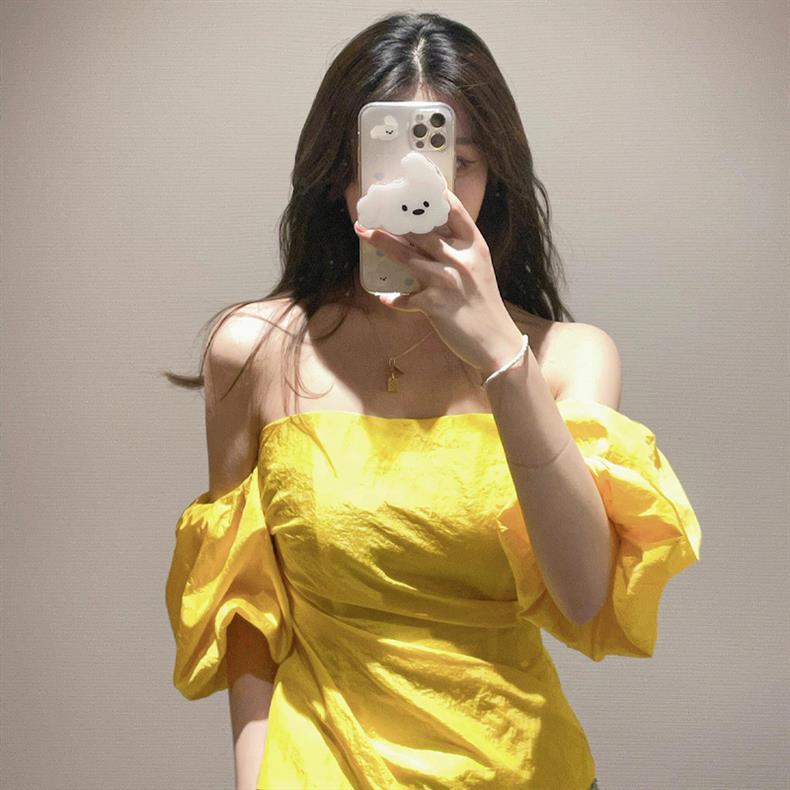 OK-093 Желтая рубашка на одно плечо с пышными рукавами в западном стиле для горячих девушек ранней весны с чистой страстью и шикарным стилем.