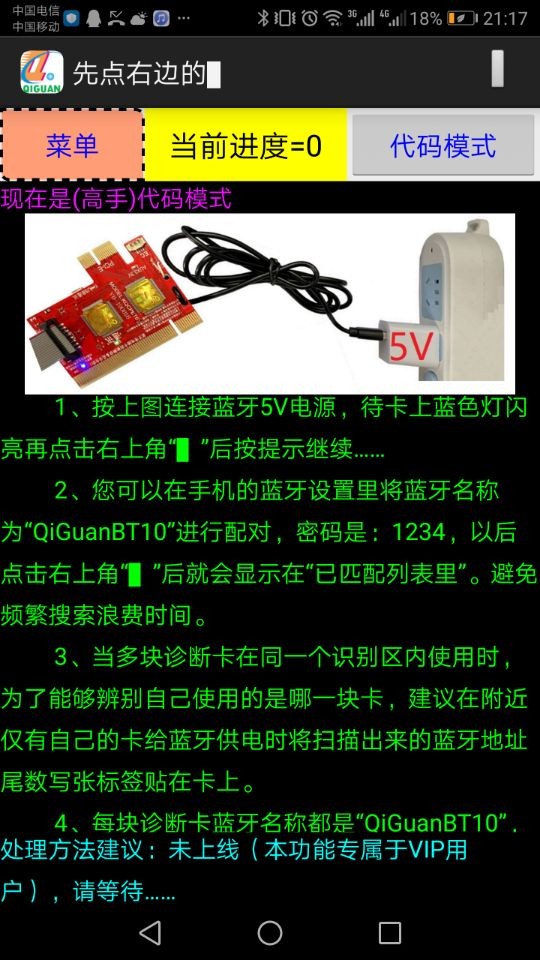 1.请尽量第一时间查看此款产品的PDF电子档使用说明书(以免插错槽烧坏卡和电脑),或者扫描二维码安装安卓版手机应用--奇冠诊断卡使用指南(仅支持安卓5.0及以上版本,包括8.0和未知版本)