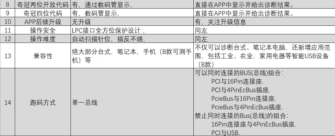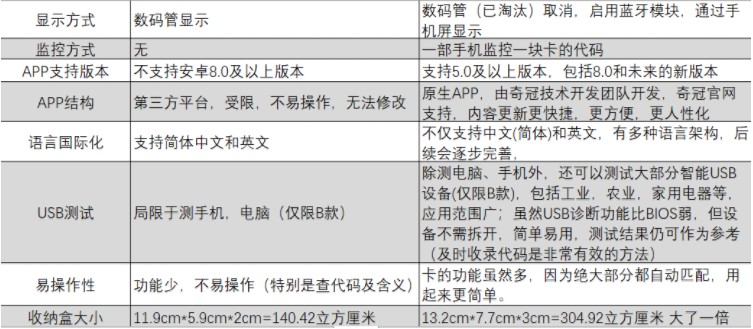 KQCPET6 V8智能诊断卡是全液晶屏显示(代码、含义及处理办法在”奇冠好用诊断卡“APP中自动智能匹配);可隔墙(隔着墙壁可以查看代码或诊断结果)诊断台式、笔记本电脑、手机、一系列USB智能设备(如家用智能电视,汽车、音响、工业USB设备等);除有PCI、PCI-E、LPC、MINIPCIE、EC、USB(A款等接口诊断功能外 ,还新增M2(多个接口)、mSata等新式接口诊断功能。