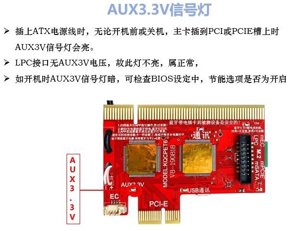 2.PCI槽的诊断卡不能插到PCI-E 16X或AGP等其它非PCI插槽上通电,否则会烧(使用注意);