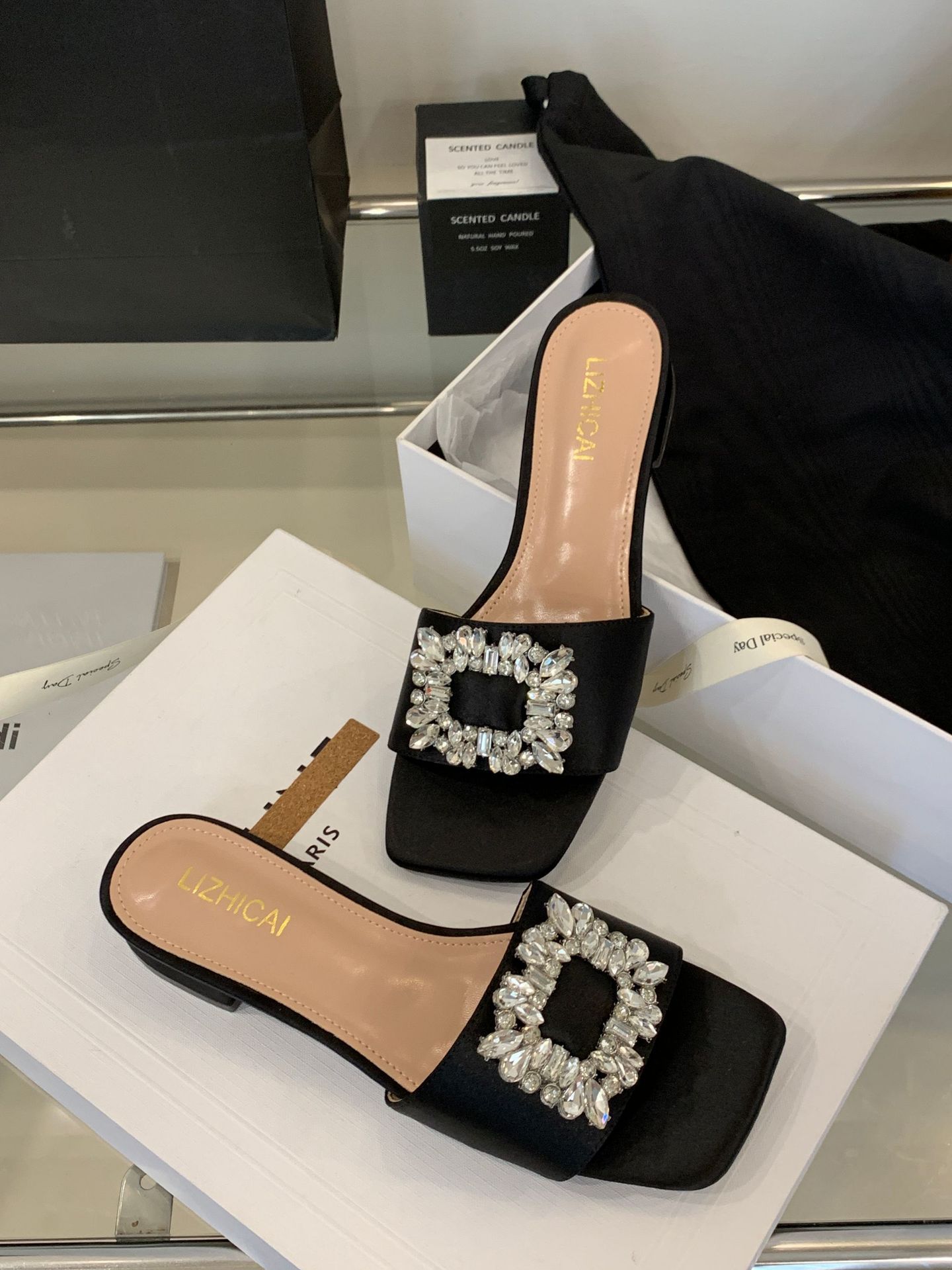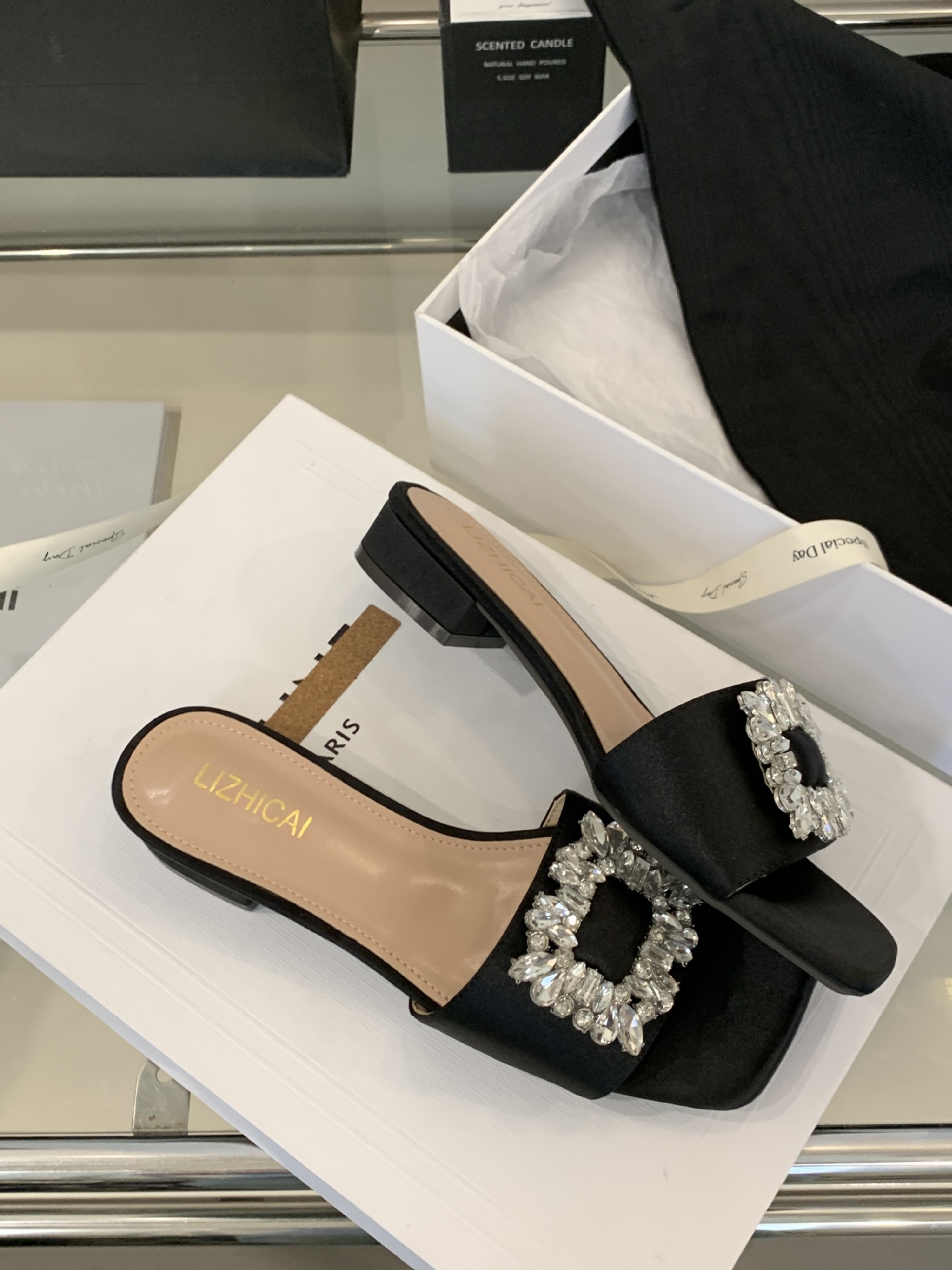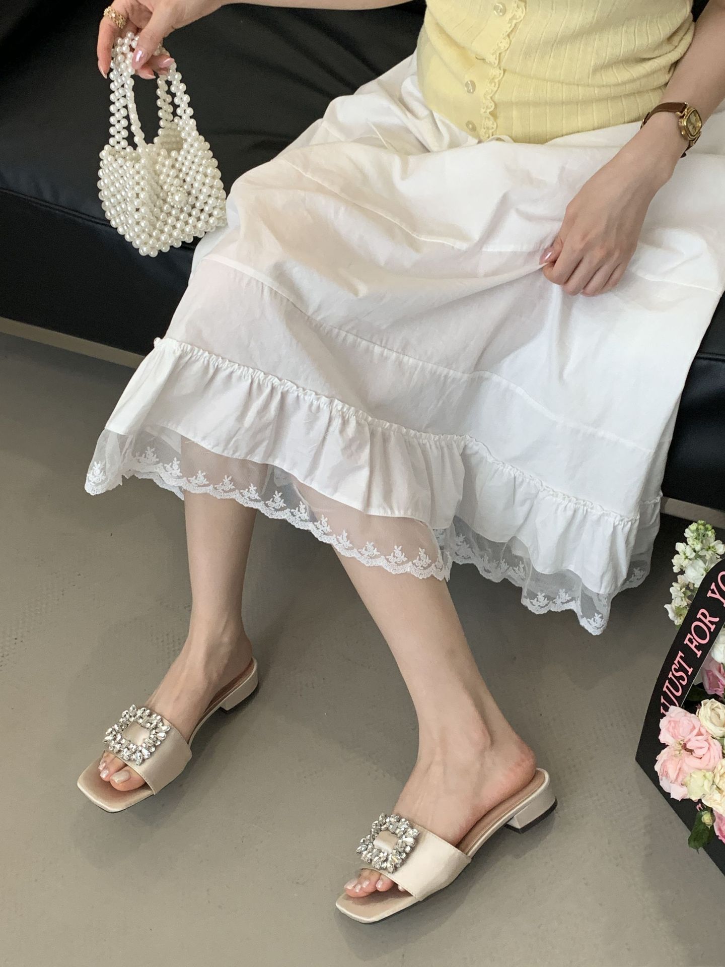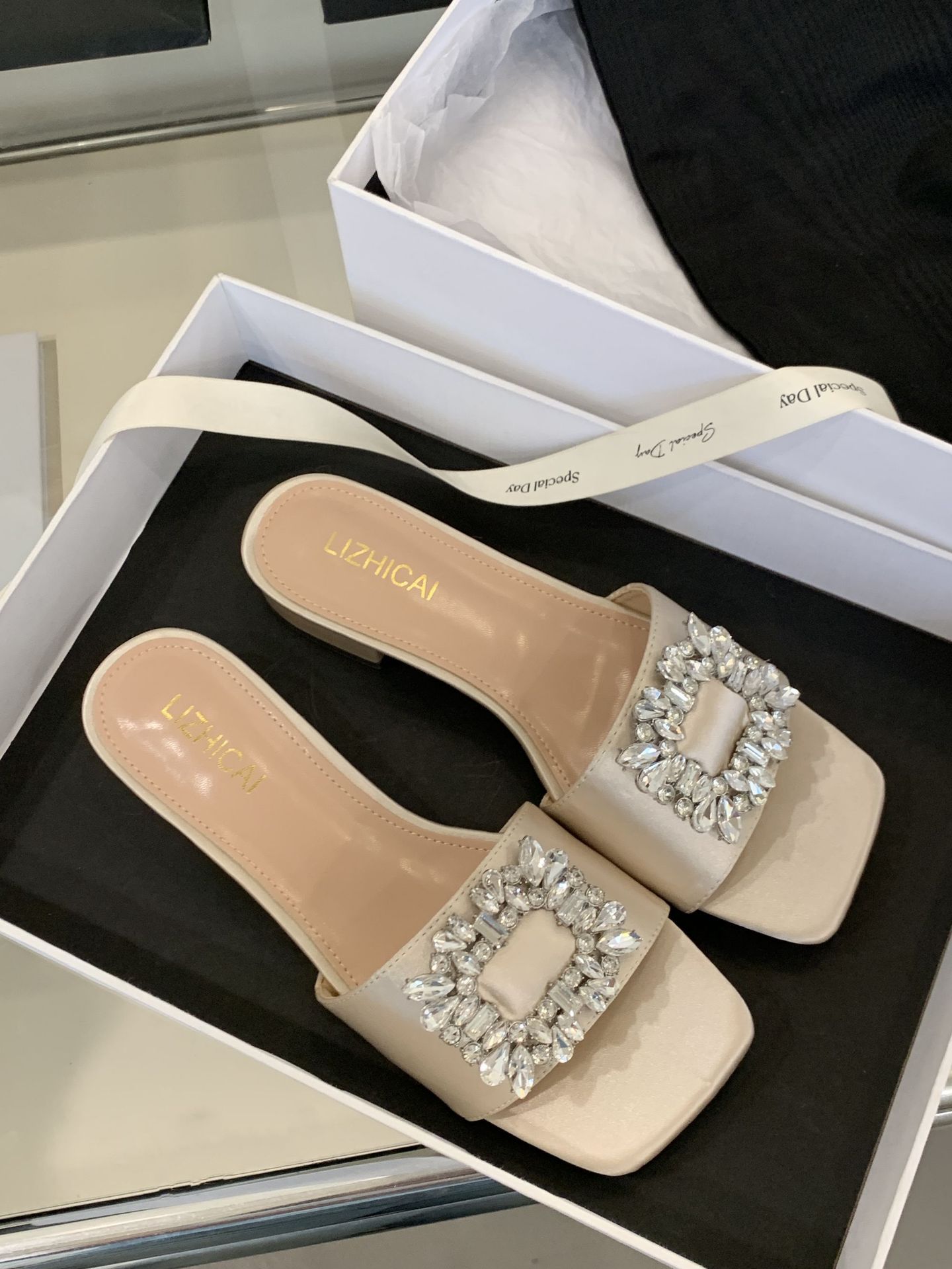 Женские босоножки на толстом каблуке 300-3~см, французский дизайн, высококачественные стразы, квадратный открытый носок, для улицы, лето 2025, новая модель