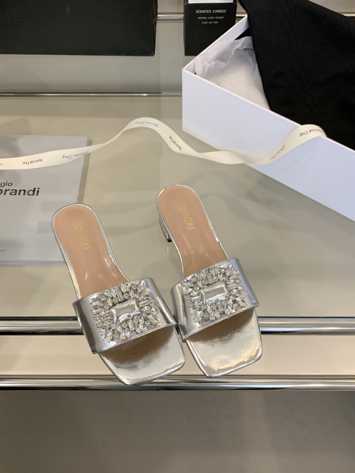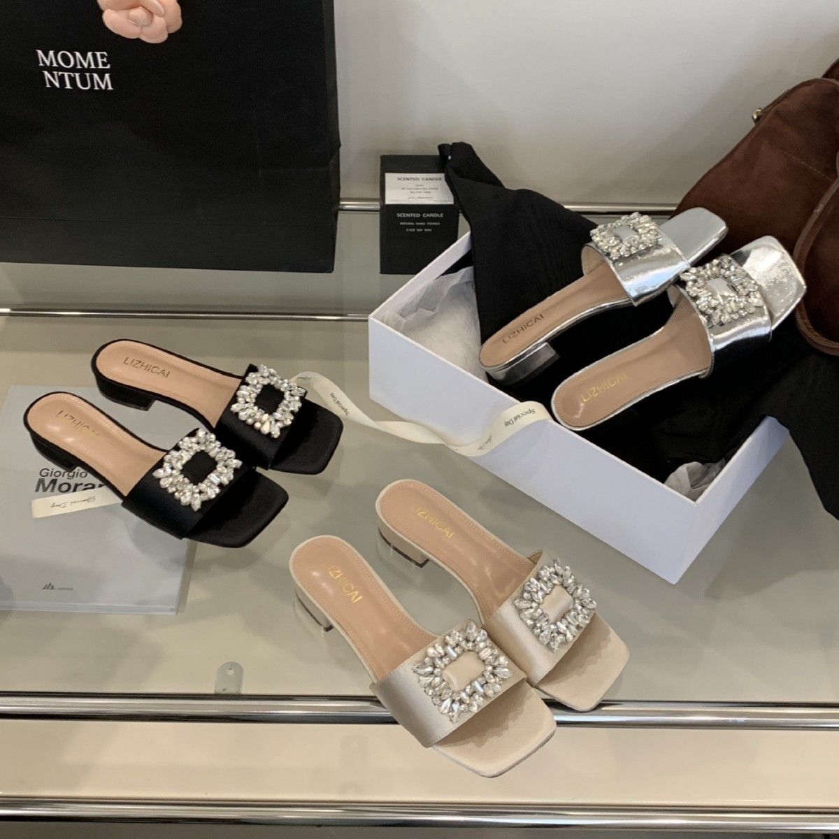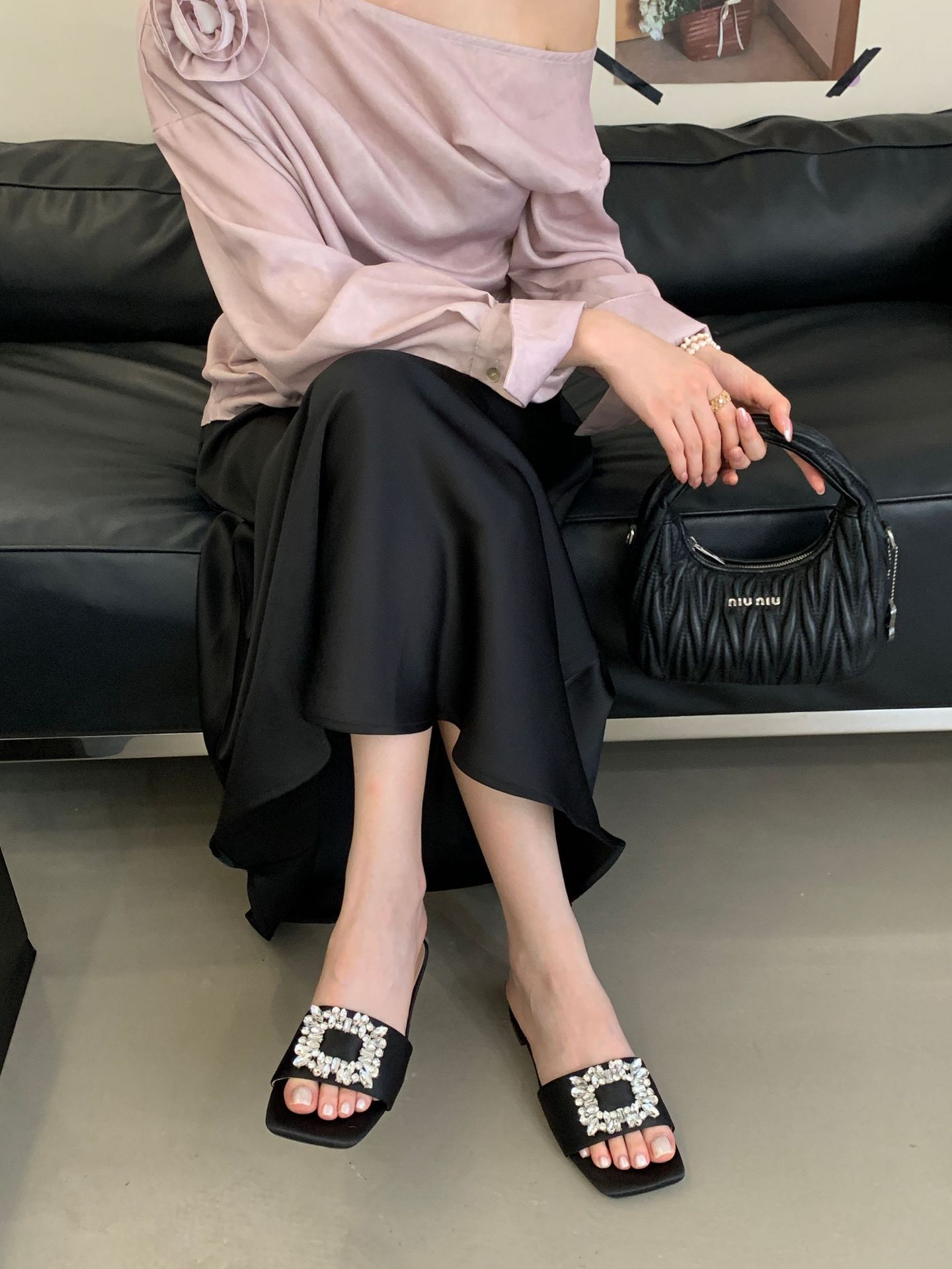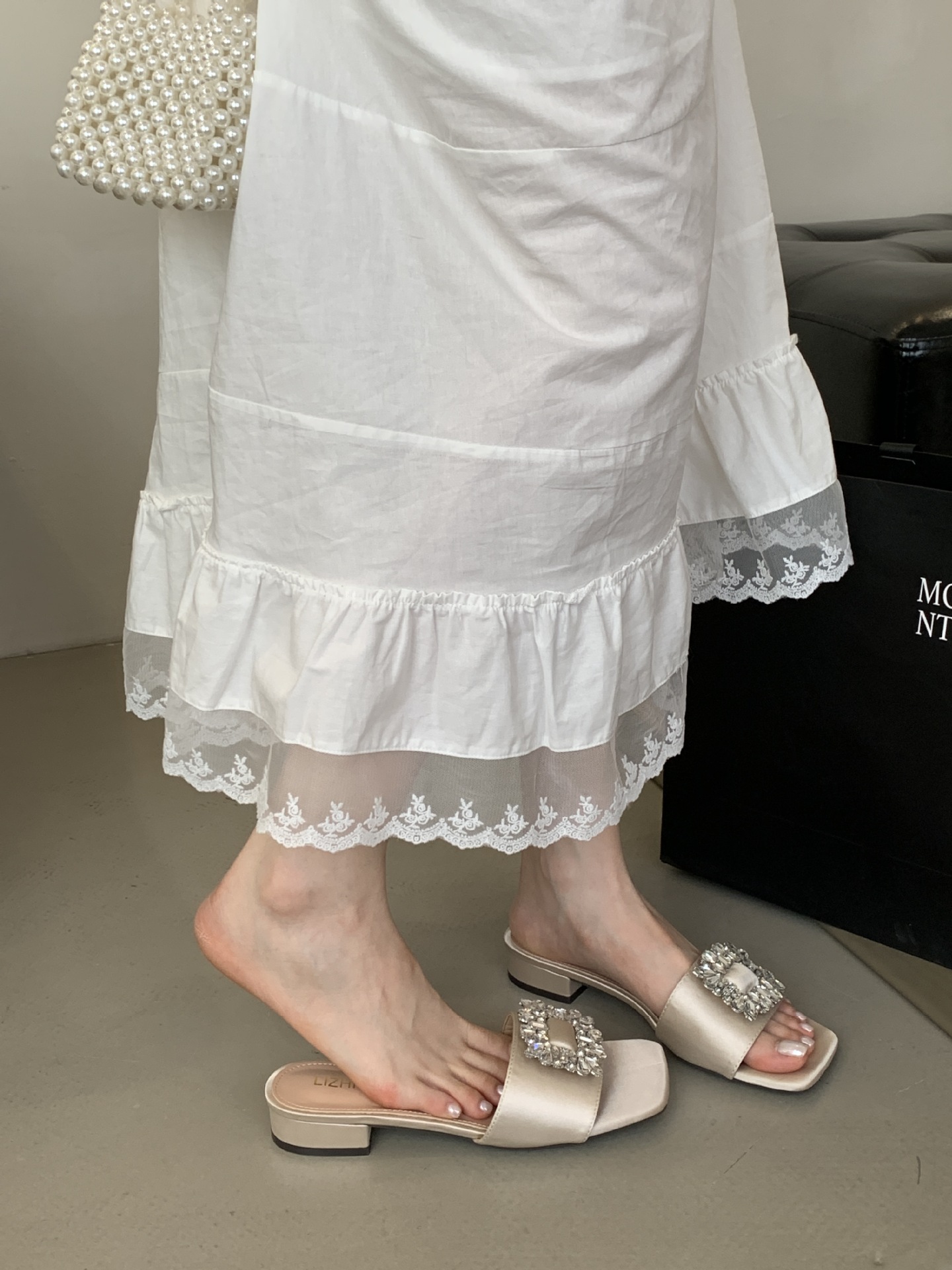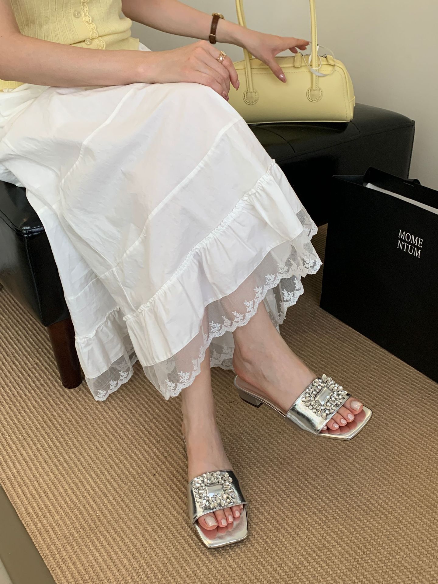 Женские босоножки на толстом каблуке 300-3~см, французский дизайн, высококачественные стразы, квадратный открытый носок, для улицы, лето 2025, новая модель