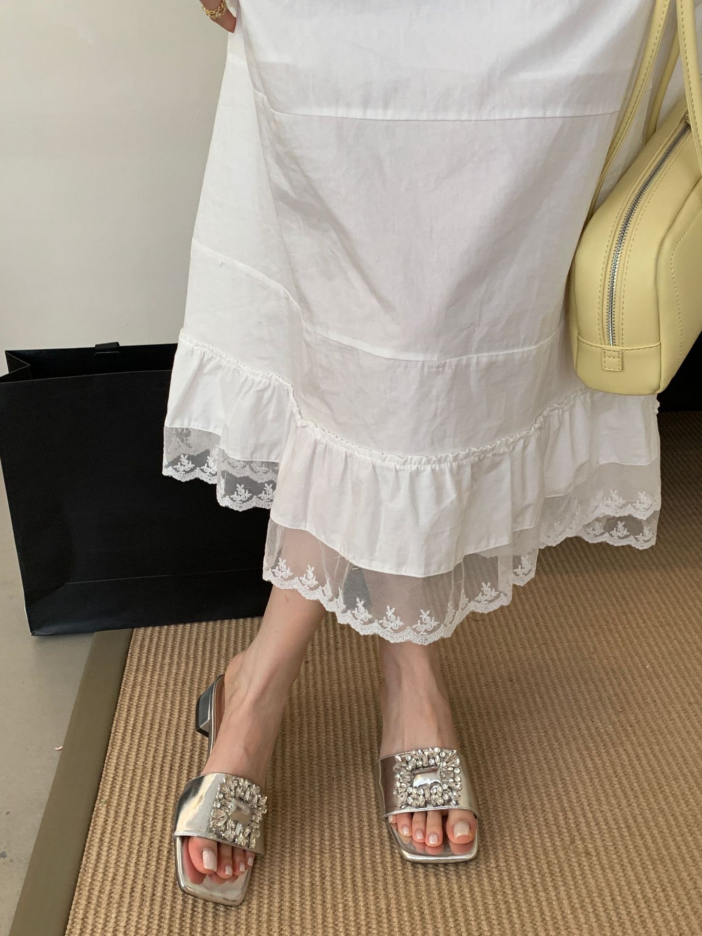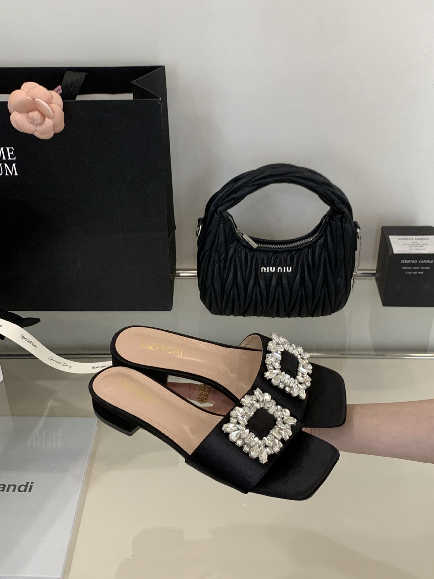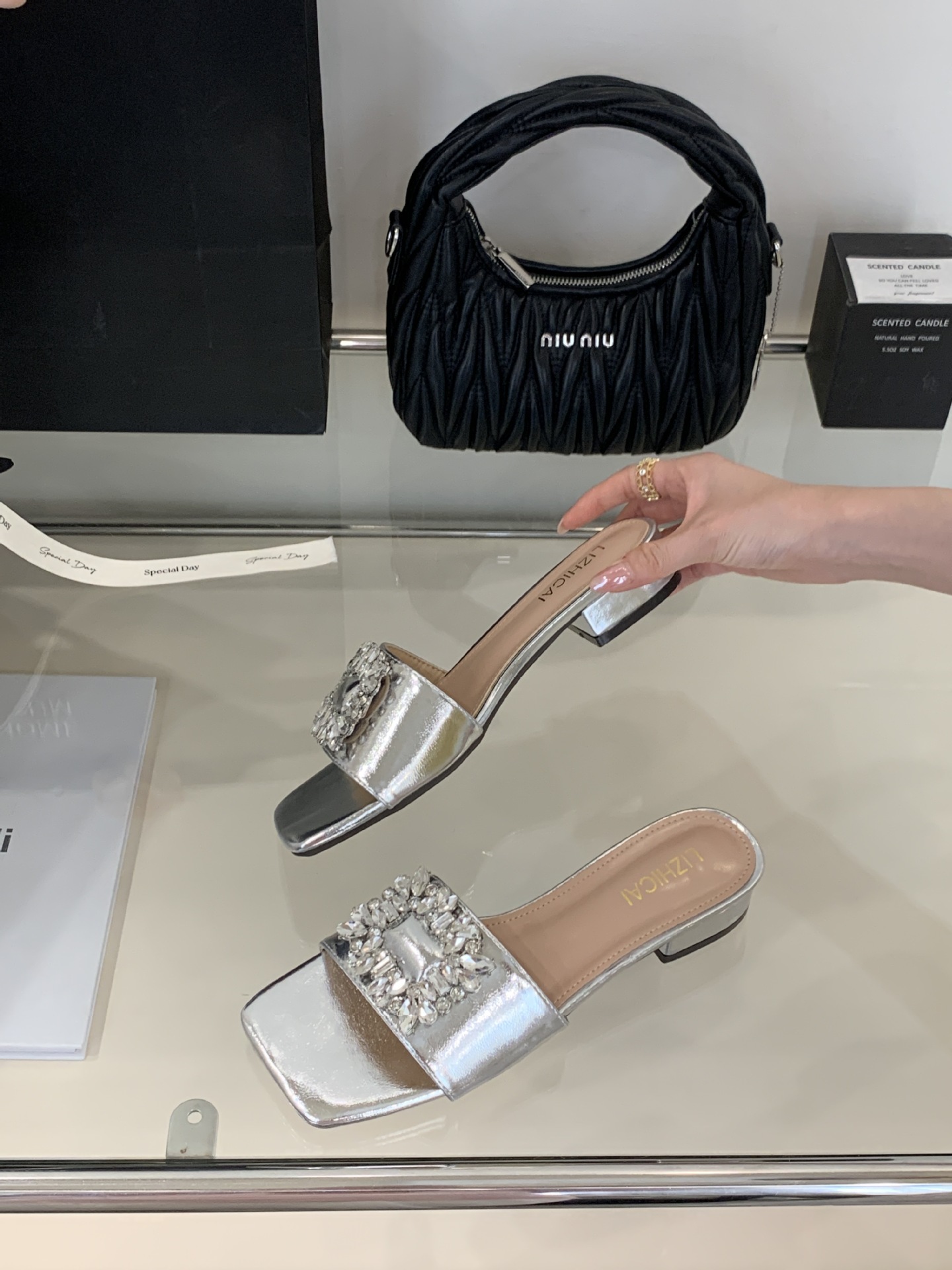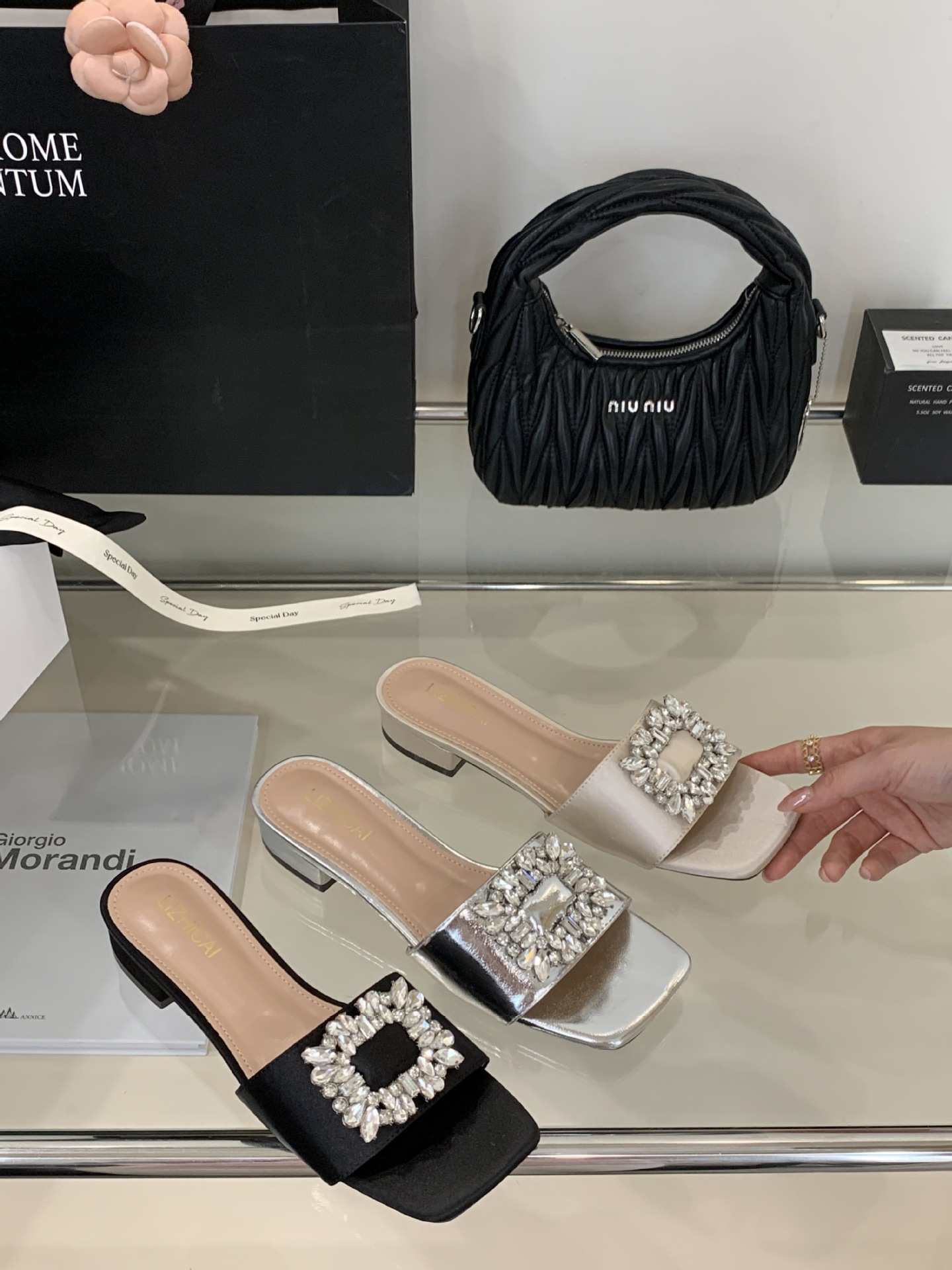 Женские босоножки на толстом каблуке 300-3~см, французский дизайн, высококачественные стразы, квадратный открытый носок, для улицы, лето 2025, новая модель