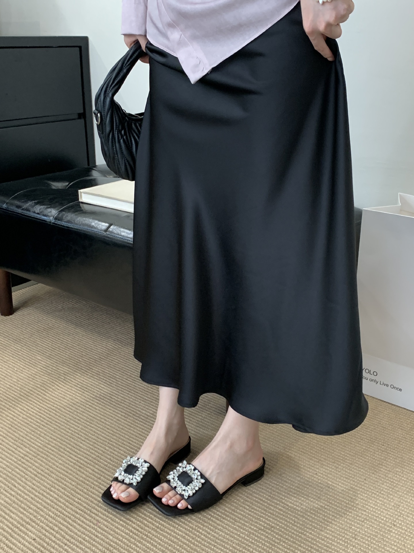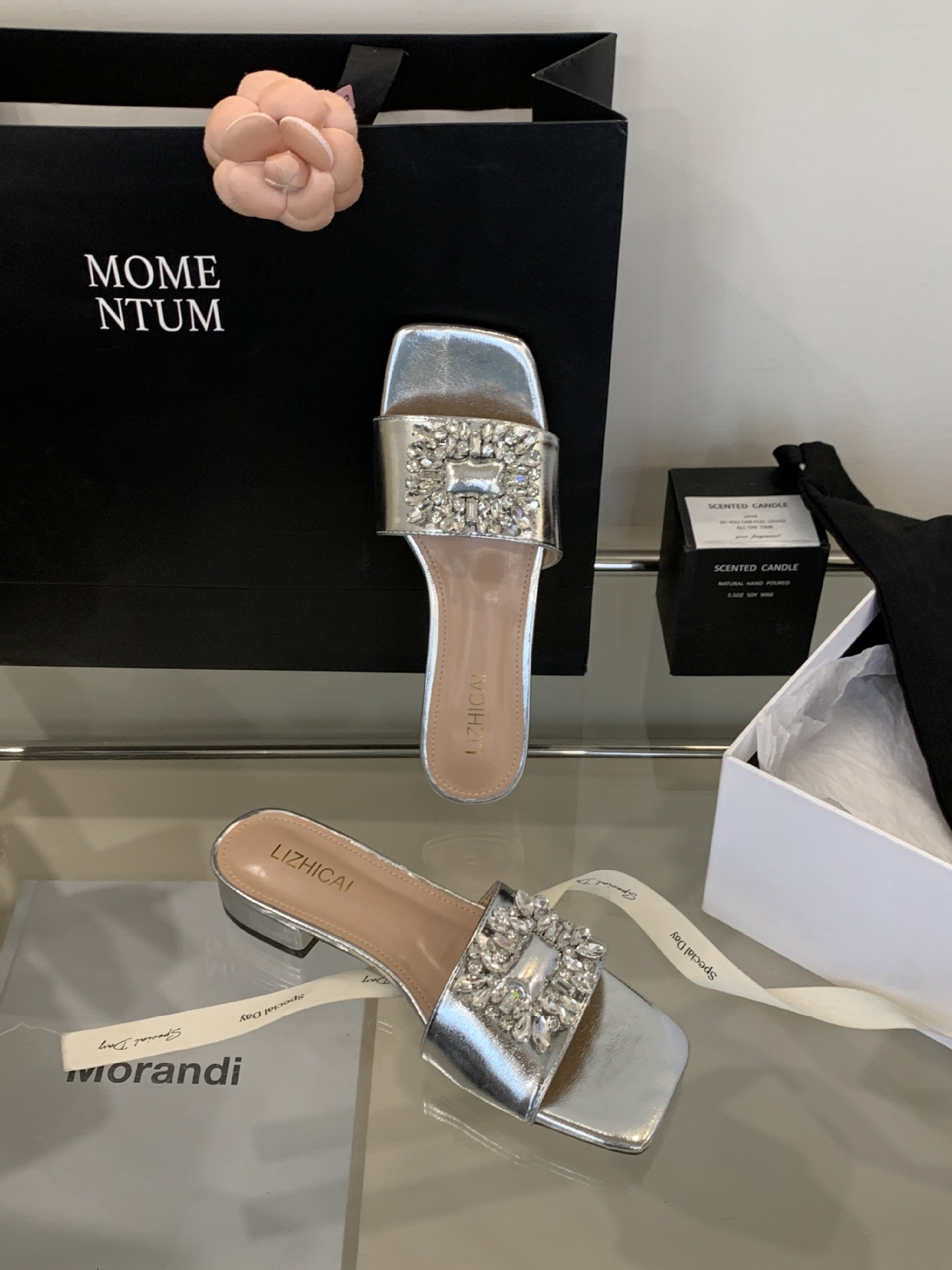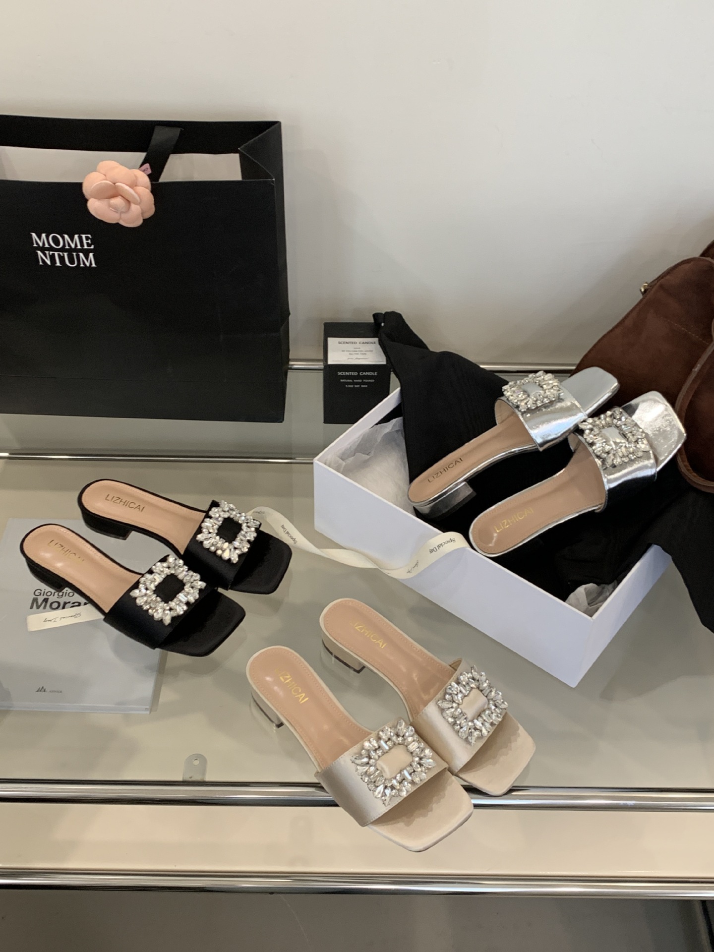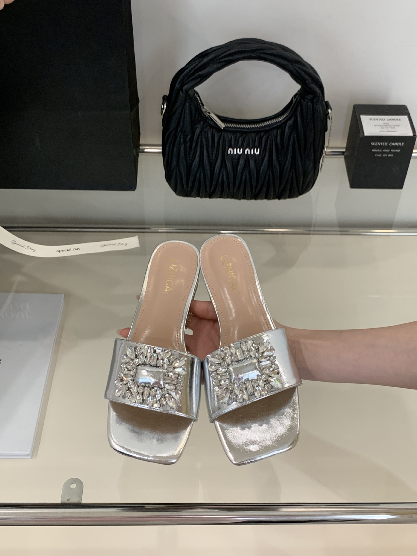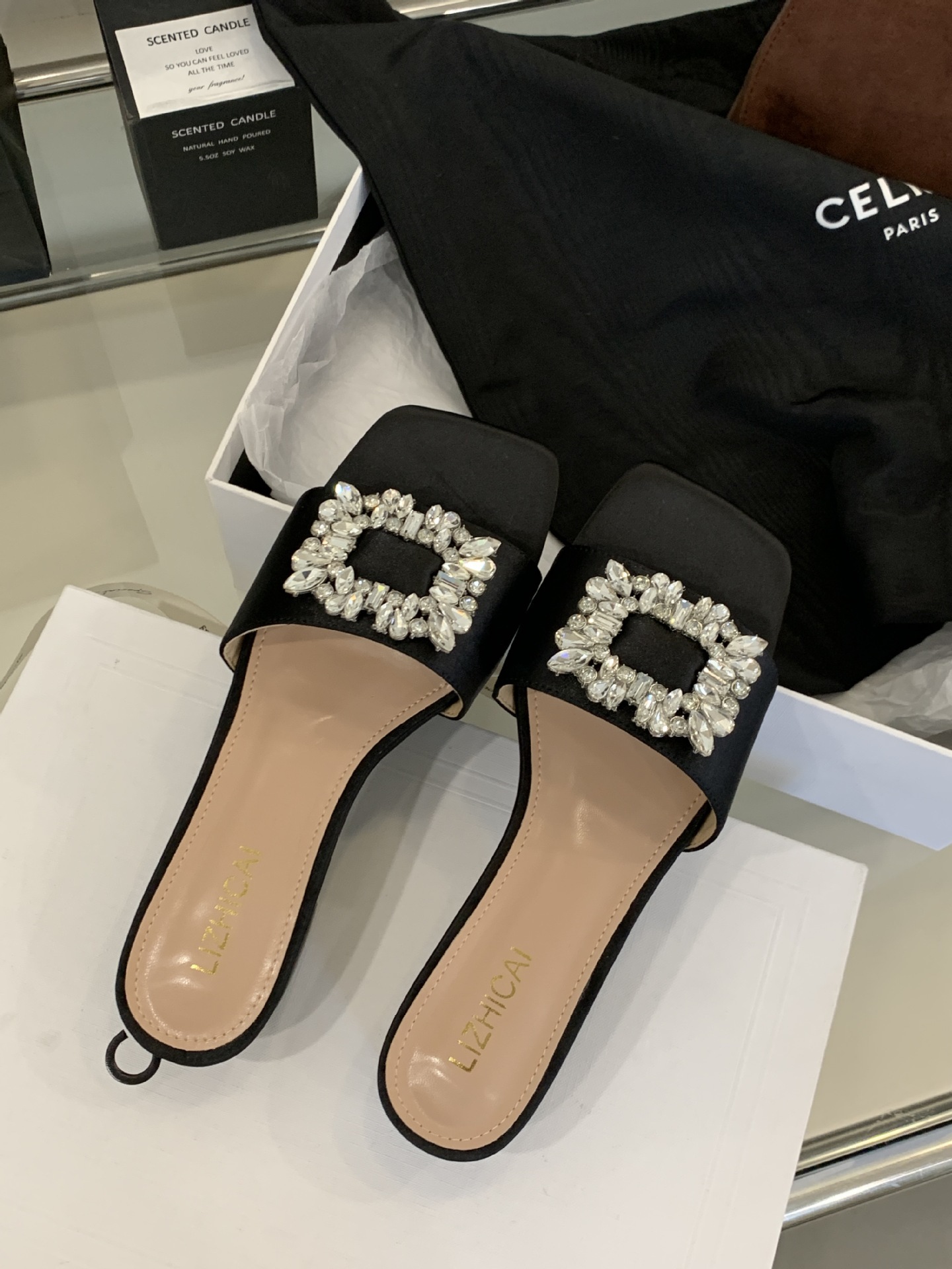 Женские босоножки на толстом каблуке 300-3~см, французский дизайн, высококачественные стразы, квадратный открытый носок, для улицы, лето 2025, новая модель