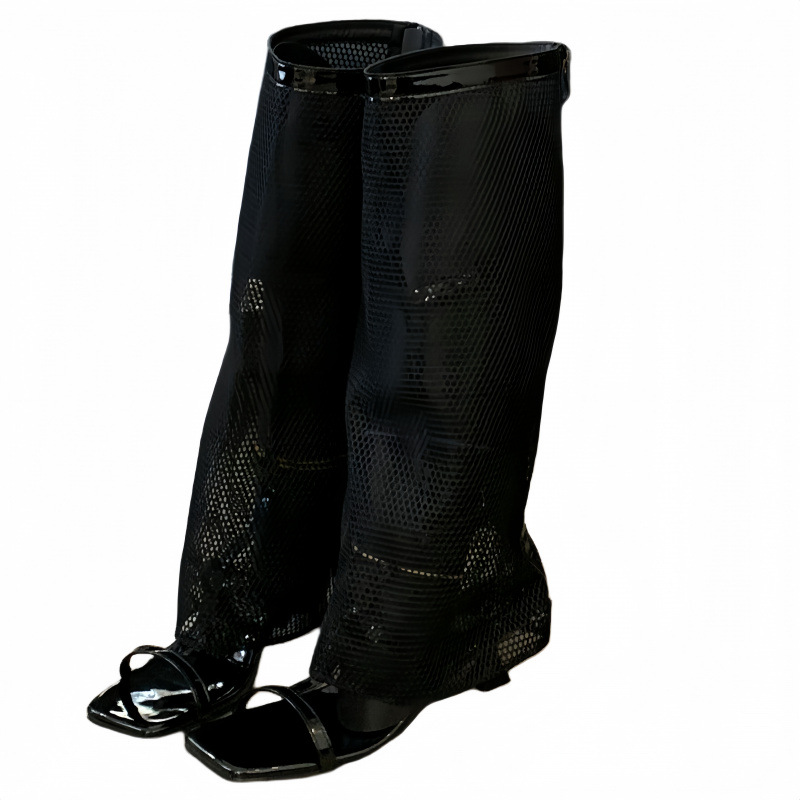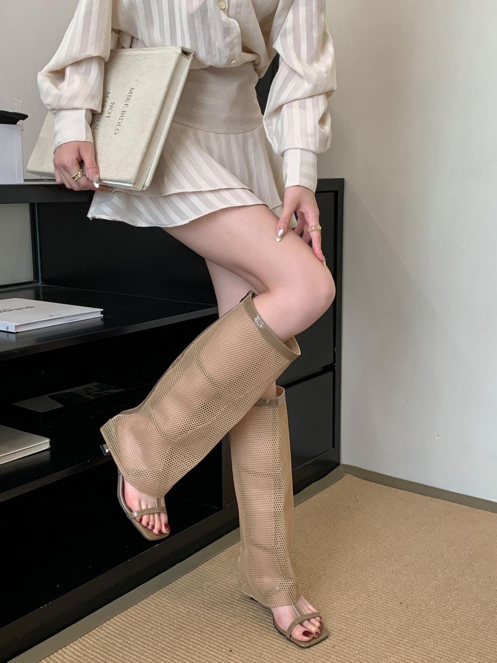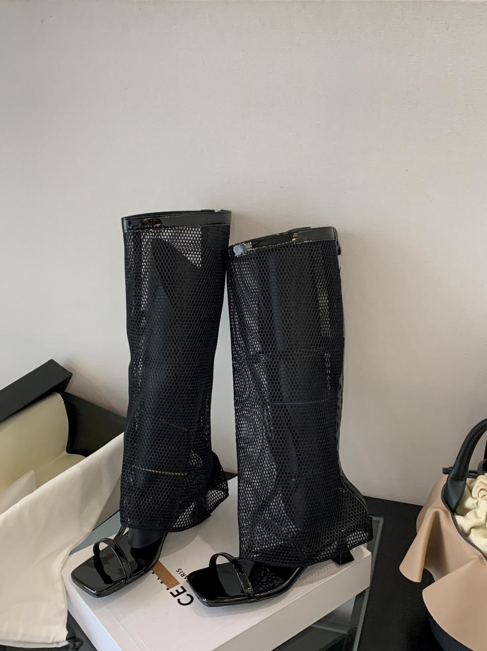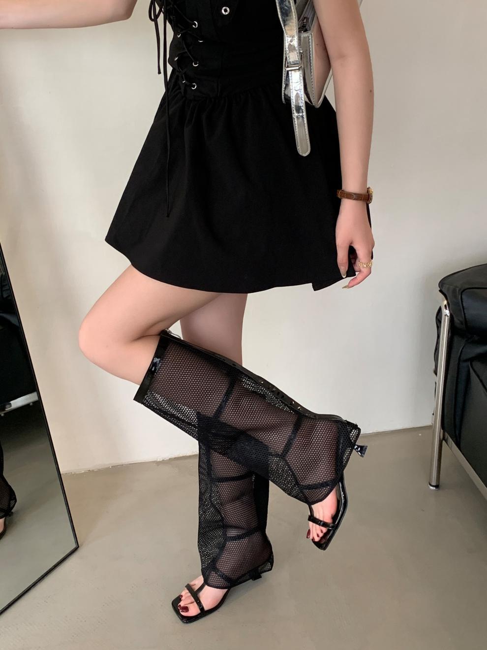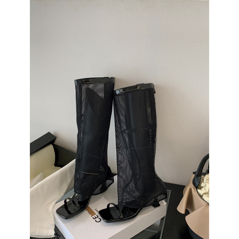 Французские нишевые сандалии 2025 лето новые открытые босоножки на шпильке сетчатые корейский стиль высокие сапоги для женщин