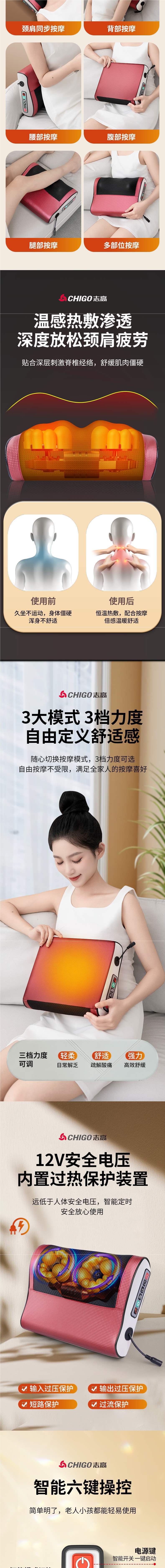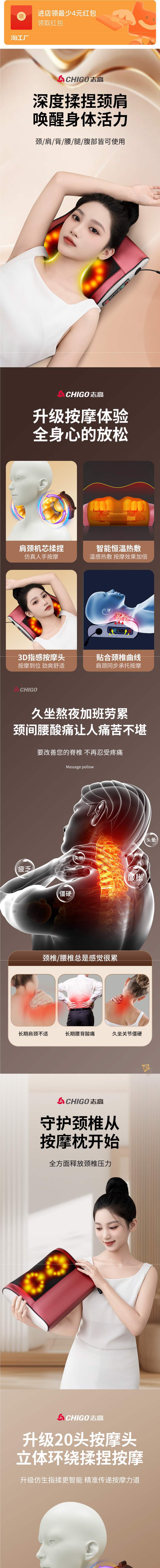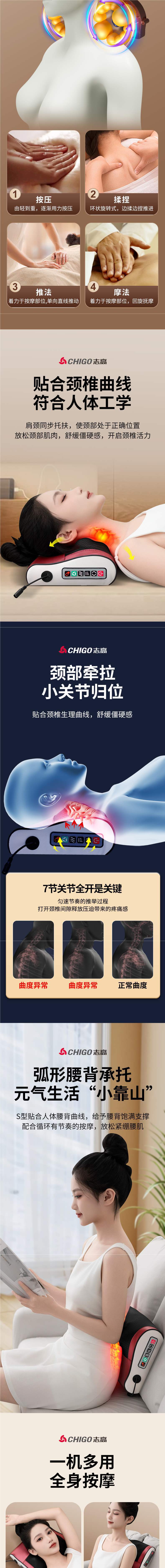 Массажер для шейного отдела позвоночника Chigo, массажер для талии, спины, ног, умная подушка для шеи, плеч и шеи, домашняя массажная подушка